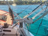 Windlass replacement in 2022 including creation of a new raised and offset base with aluminium sheets so that the chain enters the chain compartment without manual intervention. Creation of two windlass control stations with MZ electronic remote control with wiring and chain counter, one at the front near the windlass and the other in the aft portside hatch next to the helmsman.