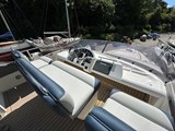 Flybridge helm position with double helm seat + two co-pilot seats.