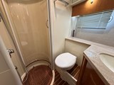 Master Cabin forward with en-suite electric freshwater flush toilet (Replaced January 2023) and shower with hoses and shower grates refurbished in January 2023