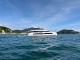 The accommodation arrangement allows for four seaward-facing double cabins, three of which can be converted to twin berths, and there are two additional cabins for crew. The accommodation occupies both the port and starboard hulls and all of the accommodation is en-suite.
