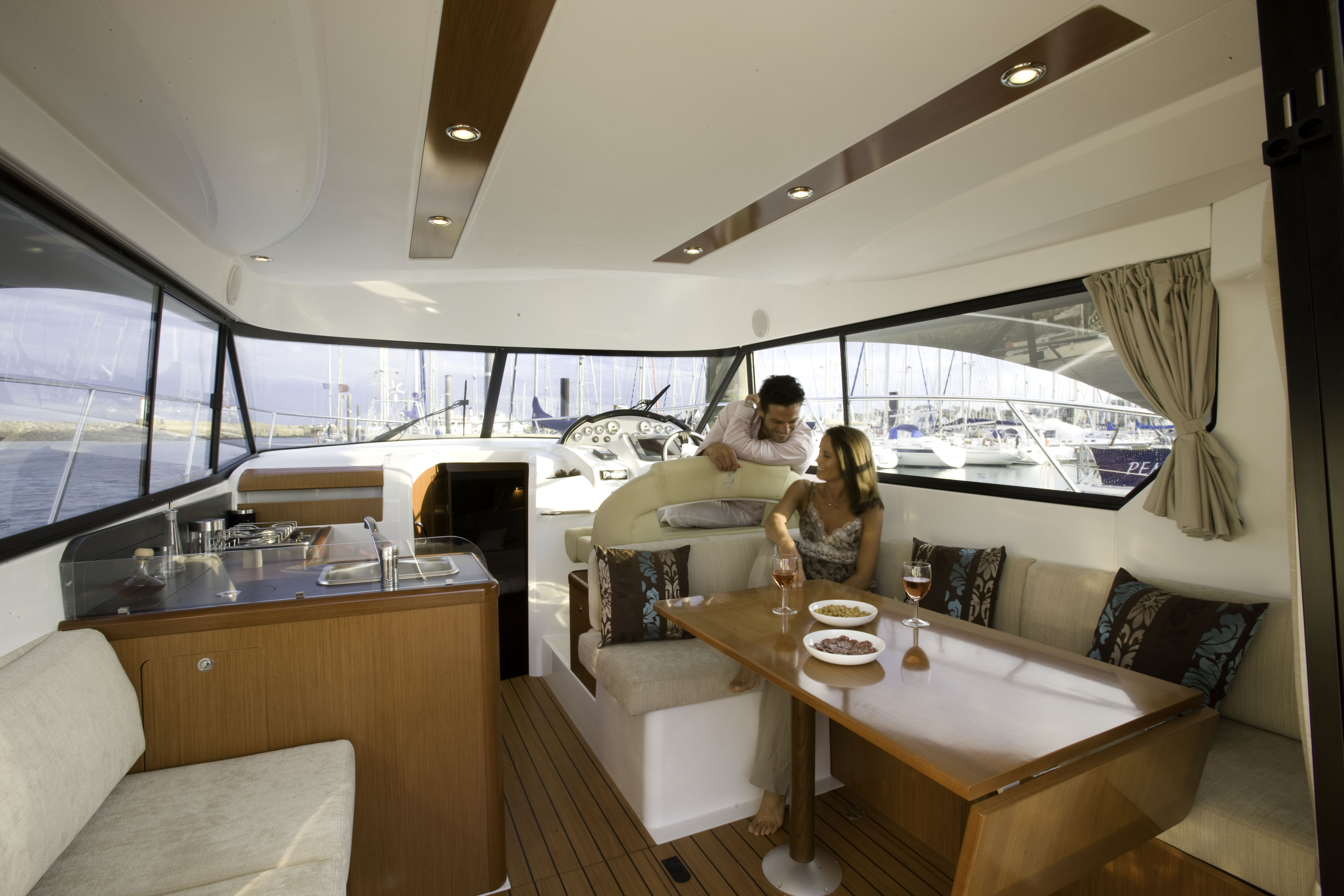 Intended for cruising, the Antares 36 offers very spacious living quarters, including her flybridge which boasts a huge terrace from which to enjoy spectacular sea views. The tulip-shaped hull of the ’36 comfortably slices through all types of sea with remarkable stability and she inaugurates the new generation of large Antares which include more space and unrivalled comfort. The first of the power boat range to offer two double berth cabins, she offers the ultimate cruising experience.