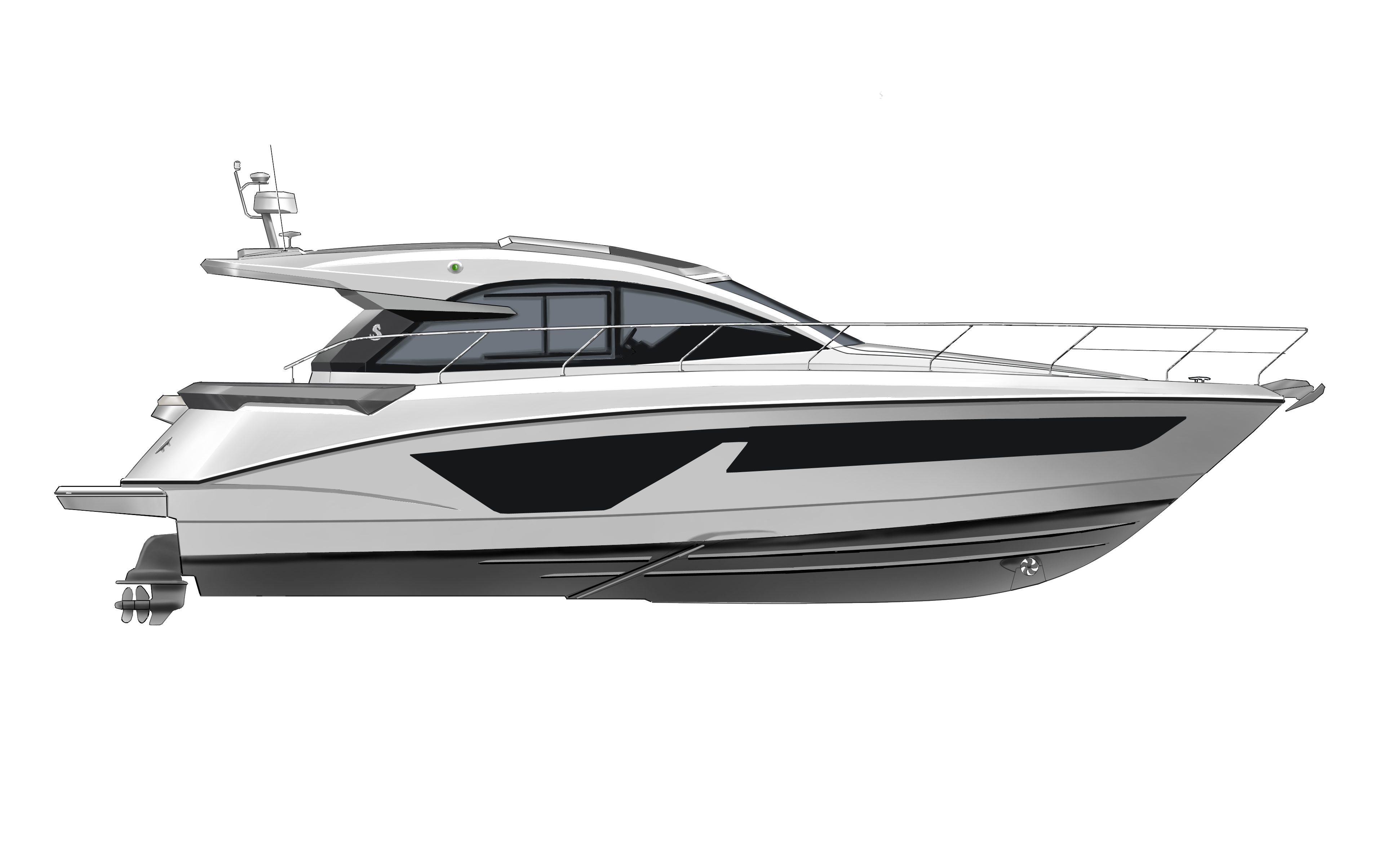 With its sporty look and excellent handling on the water, the Gran Turismo 45 guarantees that everyone will have a good time together on the boat. The vast sunbathing area to aft and the wide U-shaped cockpit seating offers passengers an ideal space in which to relax and chat.