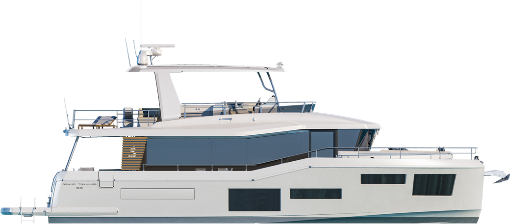 The BENETEAU Grand Trawler 63 is not just an evolution—it's the new vision in long-distance luxury cruising. Designed for those who seek serenity, precision, and performance, this yacht sets a new standard in elegant passage-making. Born from the legacy of the acclaimed Grand Trawler 62, the Grand Trawler 63 goes further—literally and figuratively—reimagining every detail for a more intuitive, quieter, and luxurious cruising experience. The Grand Trawler 63 invites you to redefine your idea of luxury.