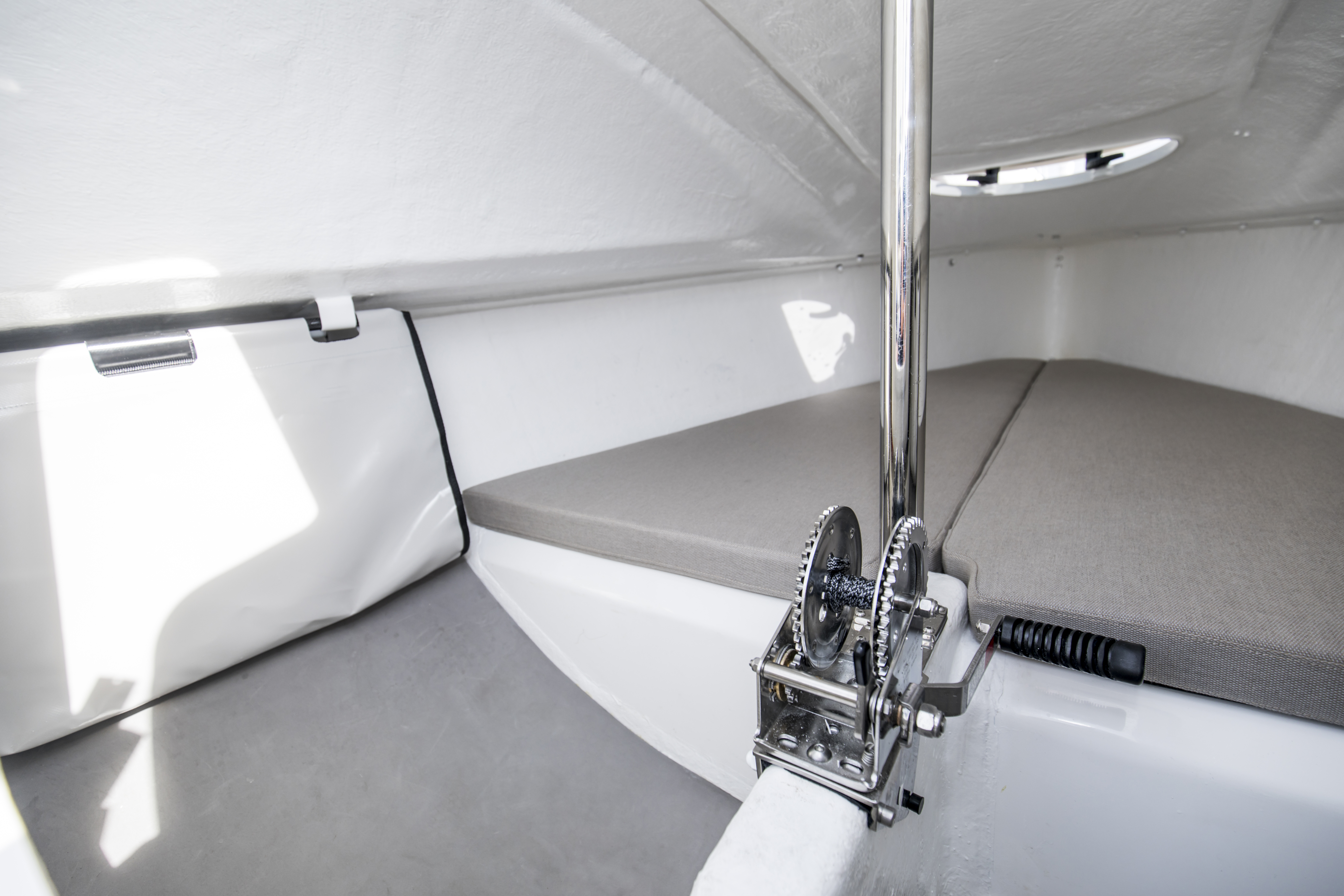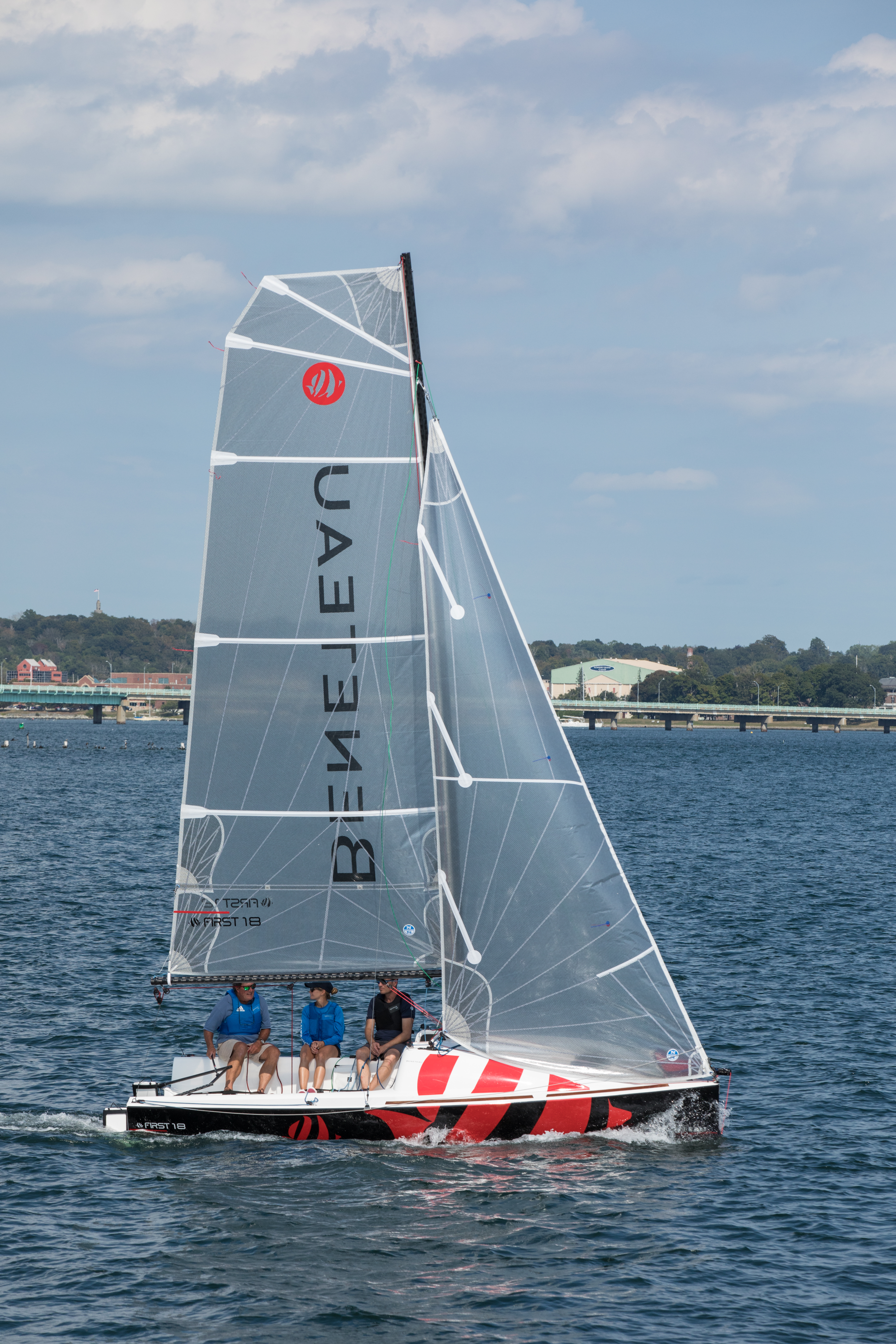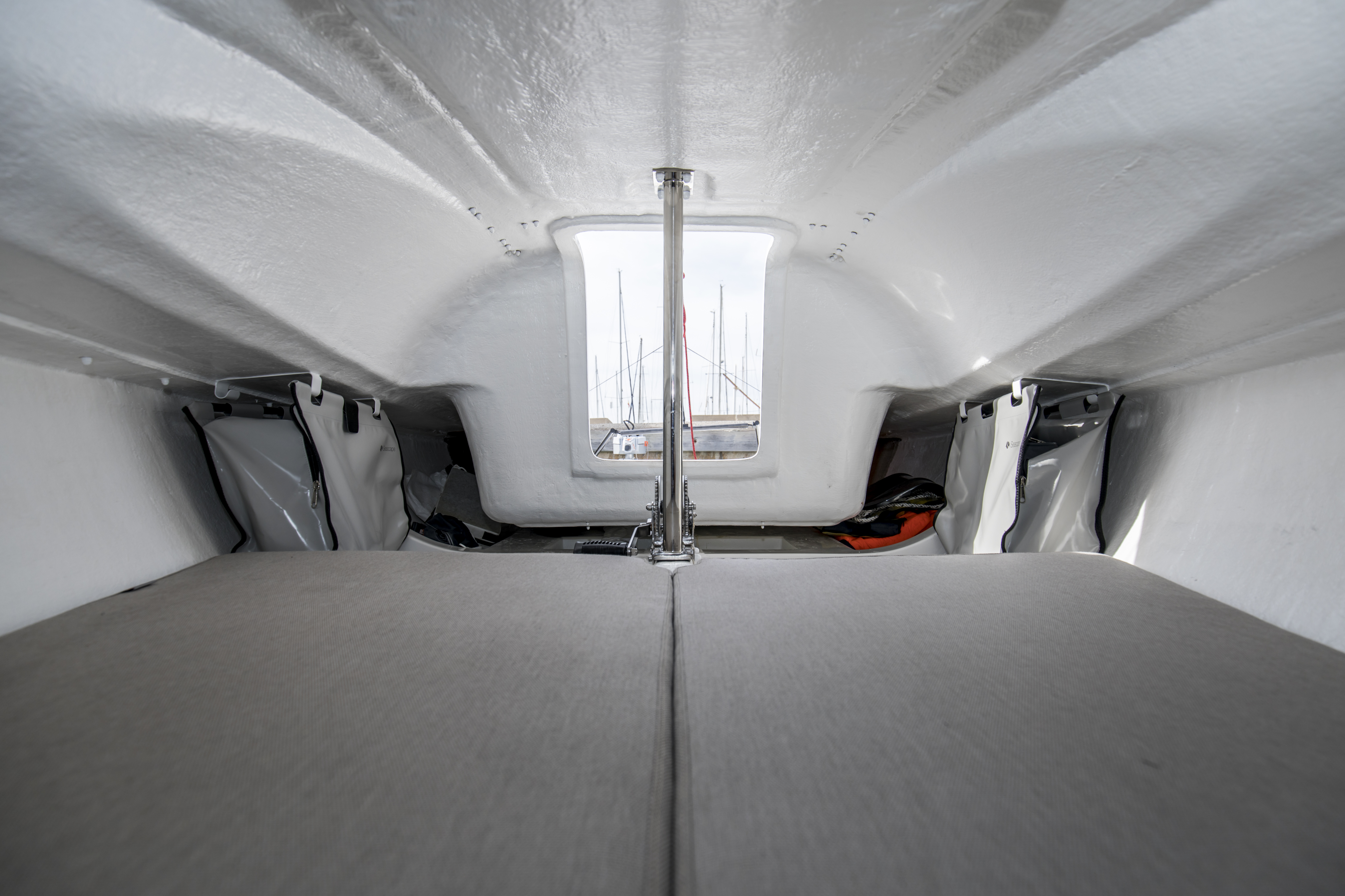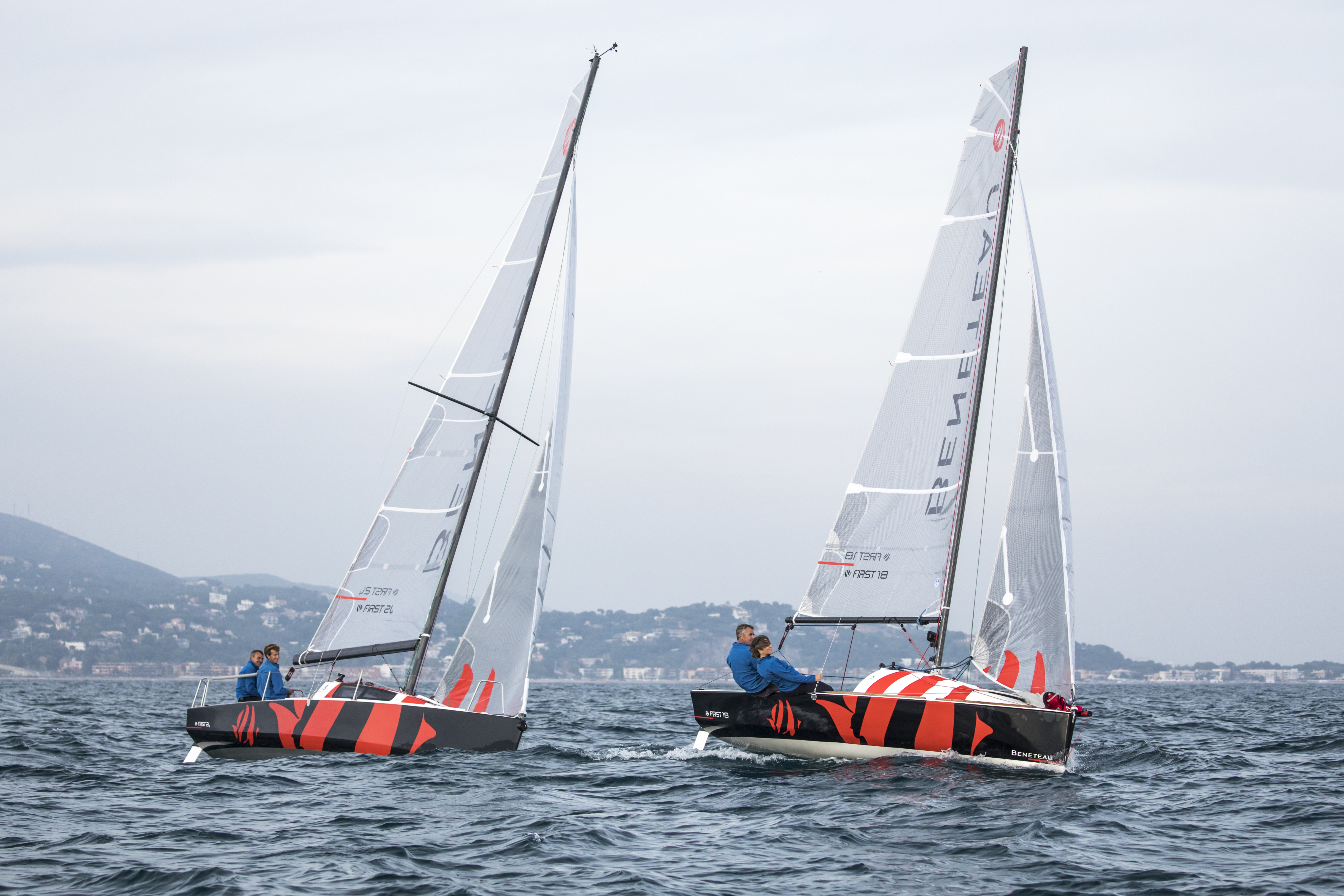 A large progressively chined hull gives you a taste of what is to come. The First 18 offers speed and sensations, whatever your programme. Stable and lightweight, with a planning hull and high-performance rigging, the First 18 makes the most of the slightest puff of wind to reach speeds that can equal it! Stiff in a breeze, she is also perfectly at ease when the wind picks up. Certified for four people aboard, the First 18 handles easily with a crew of two or solo, even under spinnaker. Thanks to her lifting keel, you can beach wherever you want..