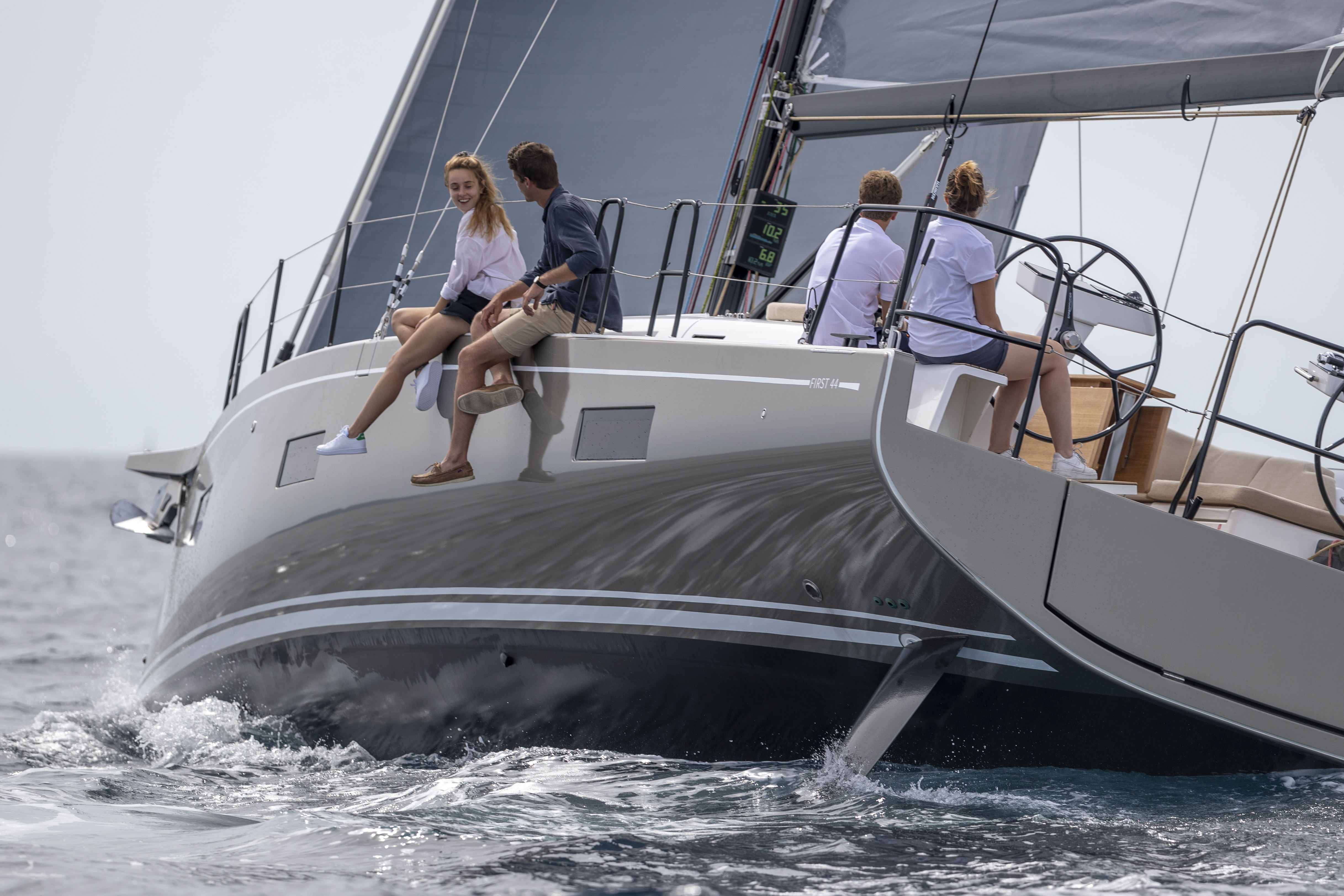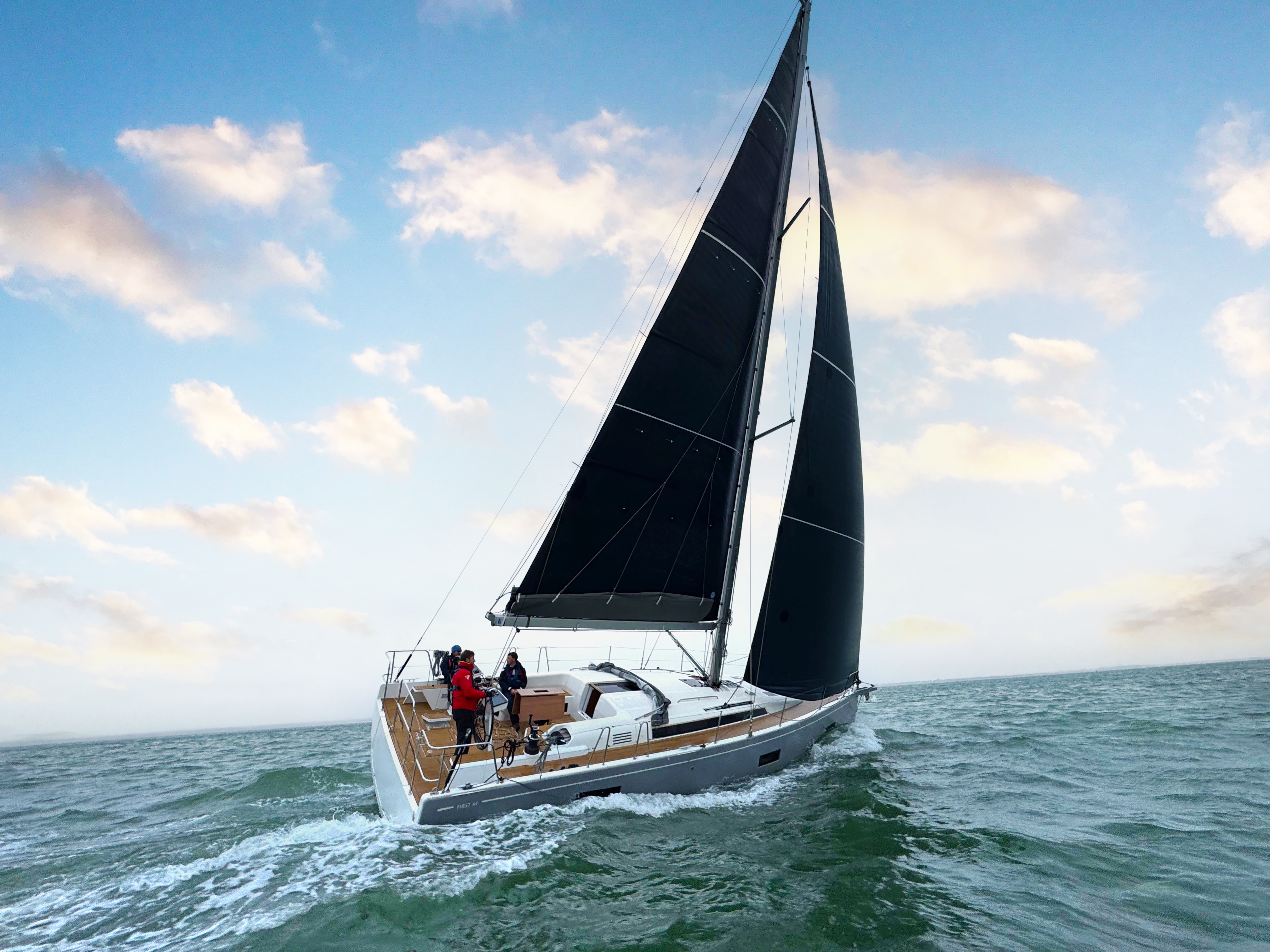 With the new FIRST 44, BENETEAU draws to the noblest expression of the term “racer/cruiser”: an elegant and comfortable yacht that provides unequaled pleasure under sail. The generous sail plan allows the First 44 to be lively and efficient in all conditions.