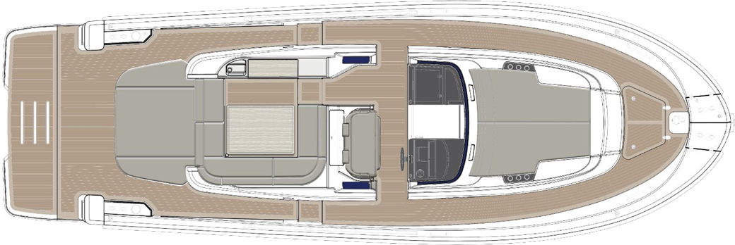 Designed for both adventure and relaxation, the BG42 features a spacious cockpit and high-sided walkaround decks, ensuring comfort and safety in all conditions. The centrally positioned helm station, complete with a reverse windshield, enhances visibility and manoeuvrability, making handling precise and effortless.