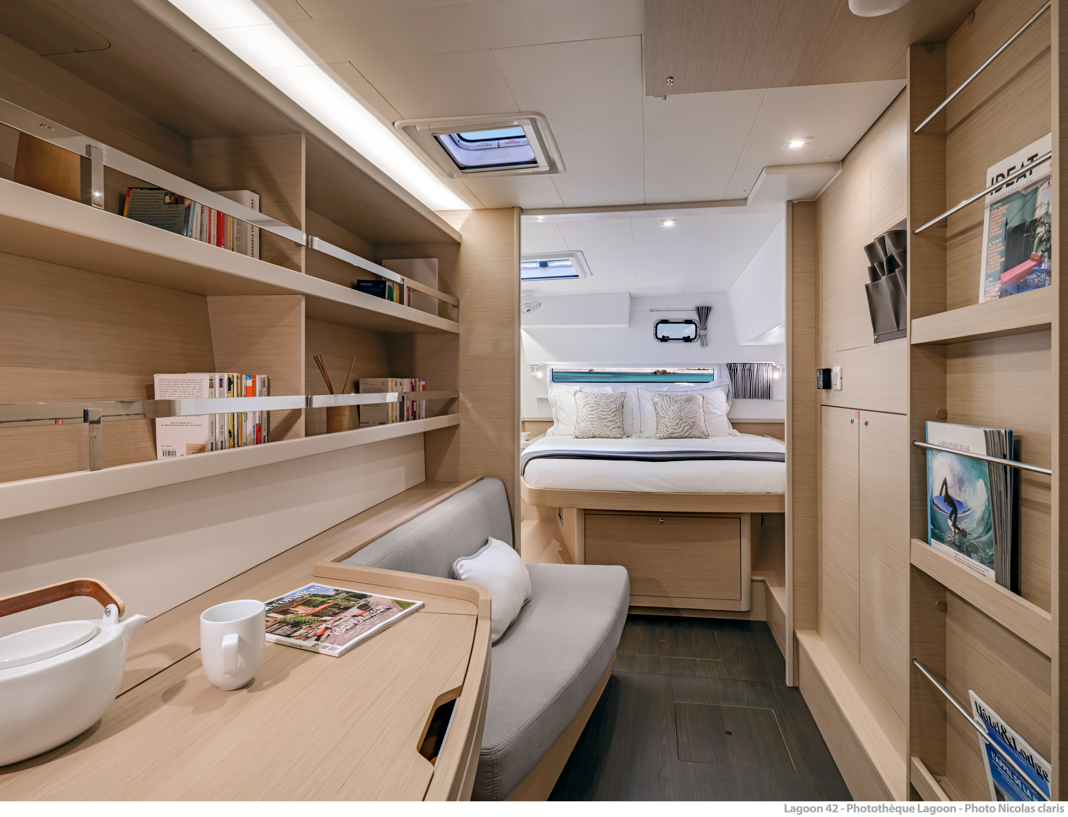 The Lagoon 42 is simple to sail and offers plenty of comfortable living accommodation both above and below deck, making it perfect for couples or families who want to relax and cruise in comfort, but equally as exciting for those who want more of a thrill. The VPLP design boasts an elegant silhouette with flowing curves and noticeable acceleration of the lines in the bows. This coachroof design, shows she is as powerful as she is dynamic for excellent performance under sail. With over 1100 Lagoon 42's built you can order a new boat in the Millennium edition, this includes a high specification as standard which represents great value for money..