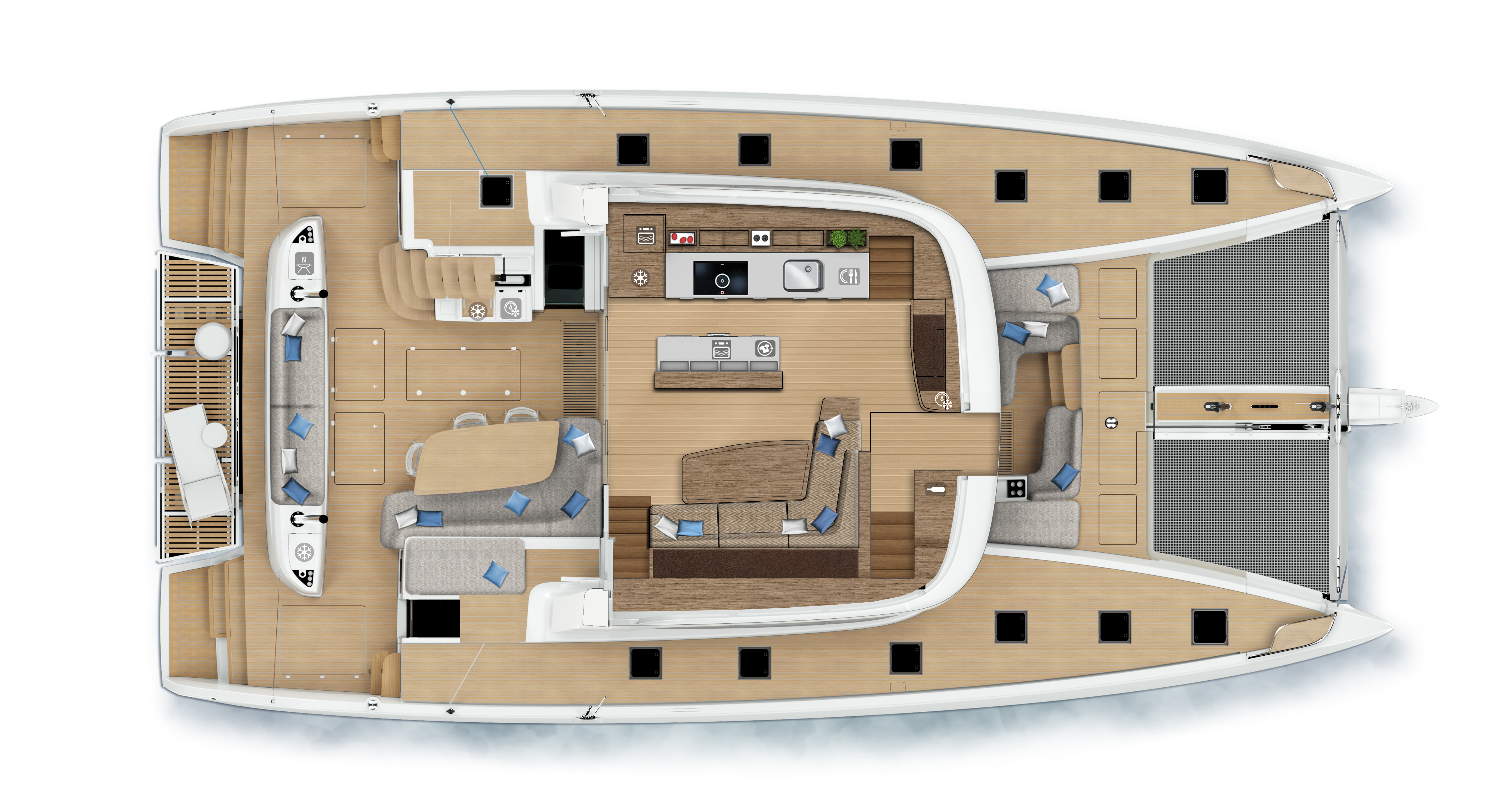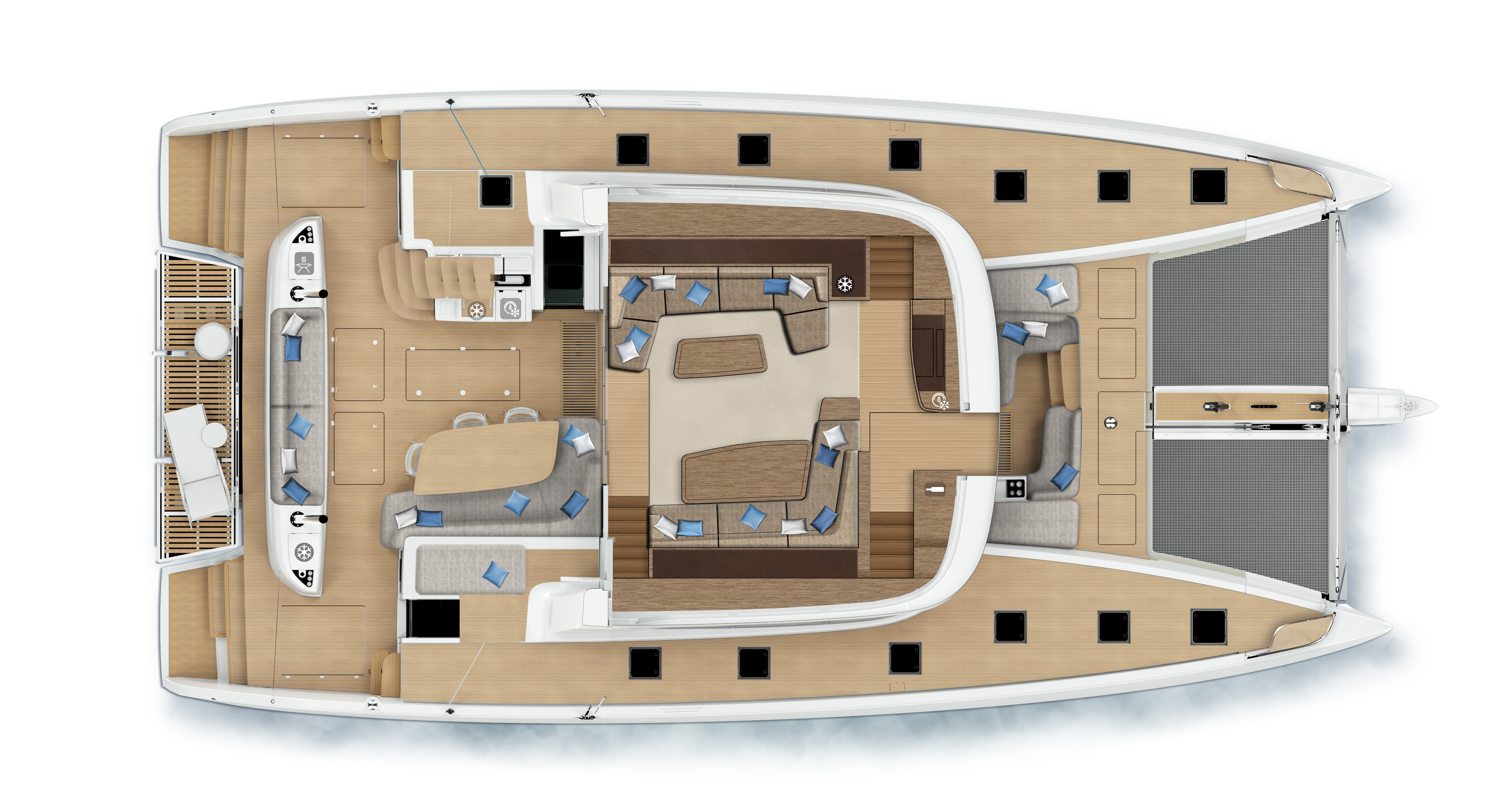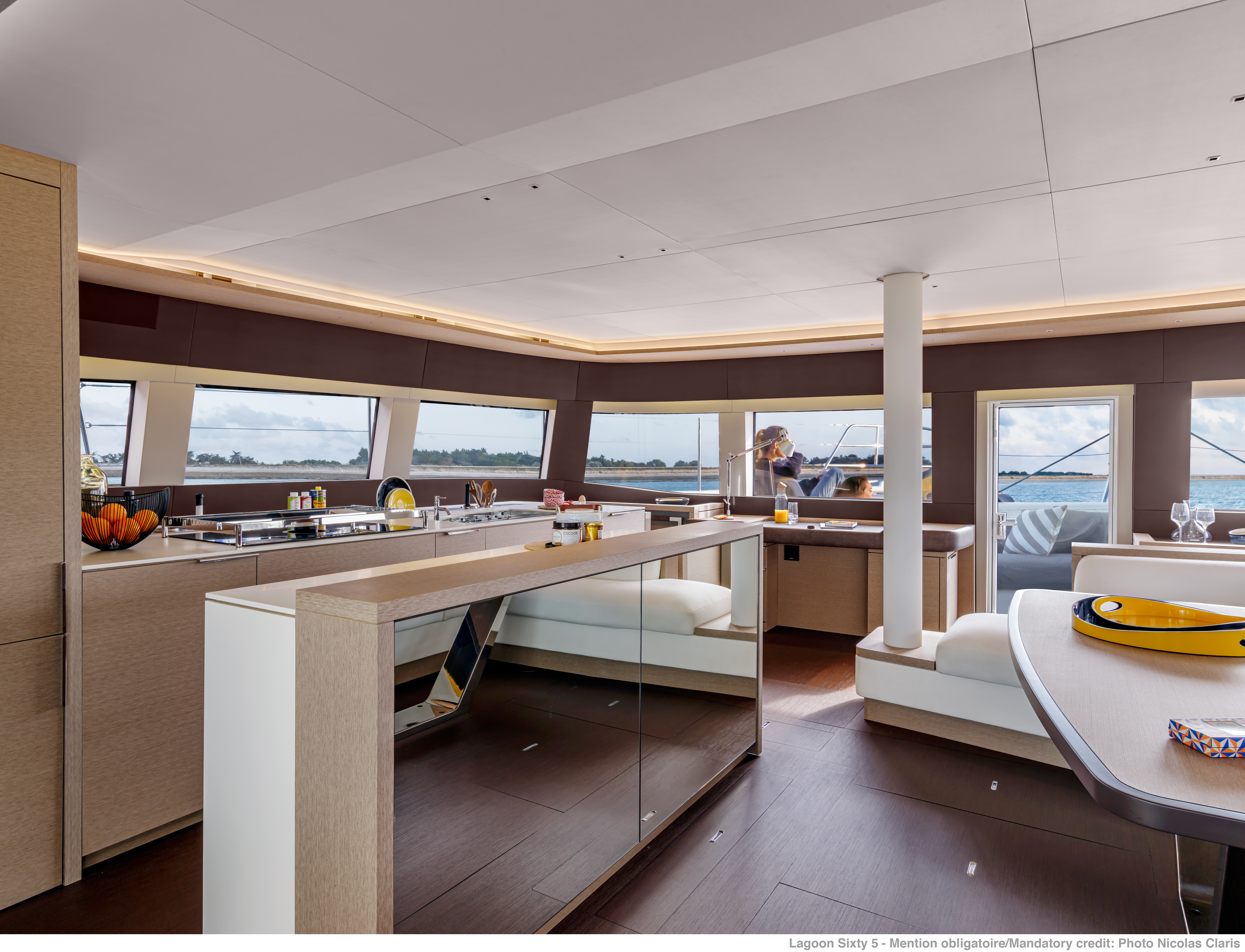 Exterior design by VPLP Design, styling by Patrick Le Quément, and interiors by Nauta Design ensure that the Sixty 5 combines aesthetic sophistication with practical yacht architectural intelligence.