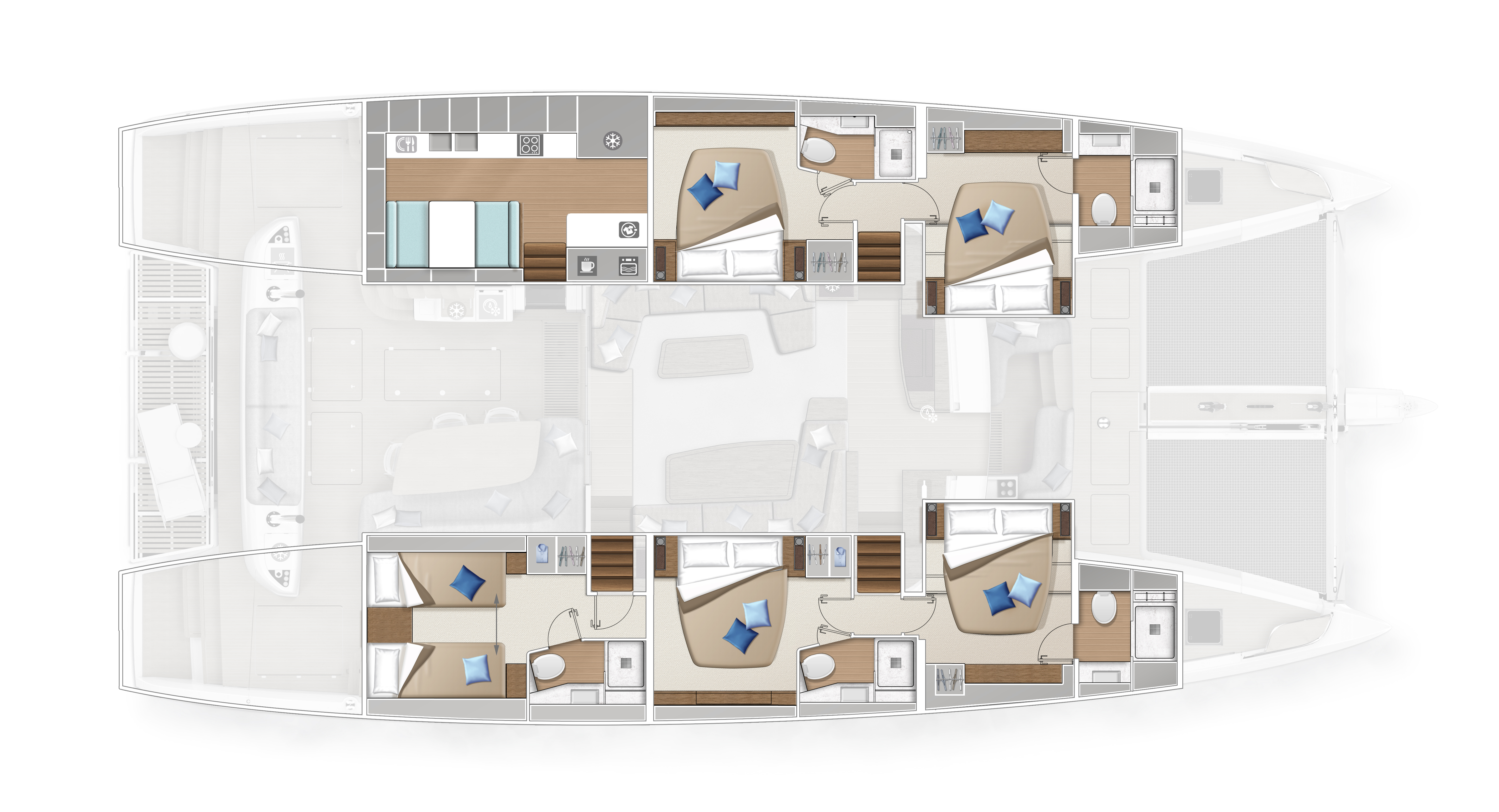 Choose from 4 to 6 luxurious cabins, with layouts crafted to suit private ownership, family cruising or high-end charters. Premium finishes, refined woodwork and custom upholstery reflect the craftsmanship and attention to detail inside the hulls.