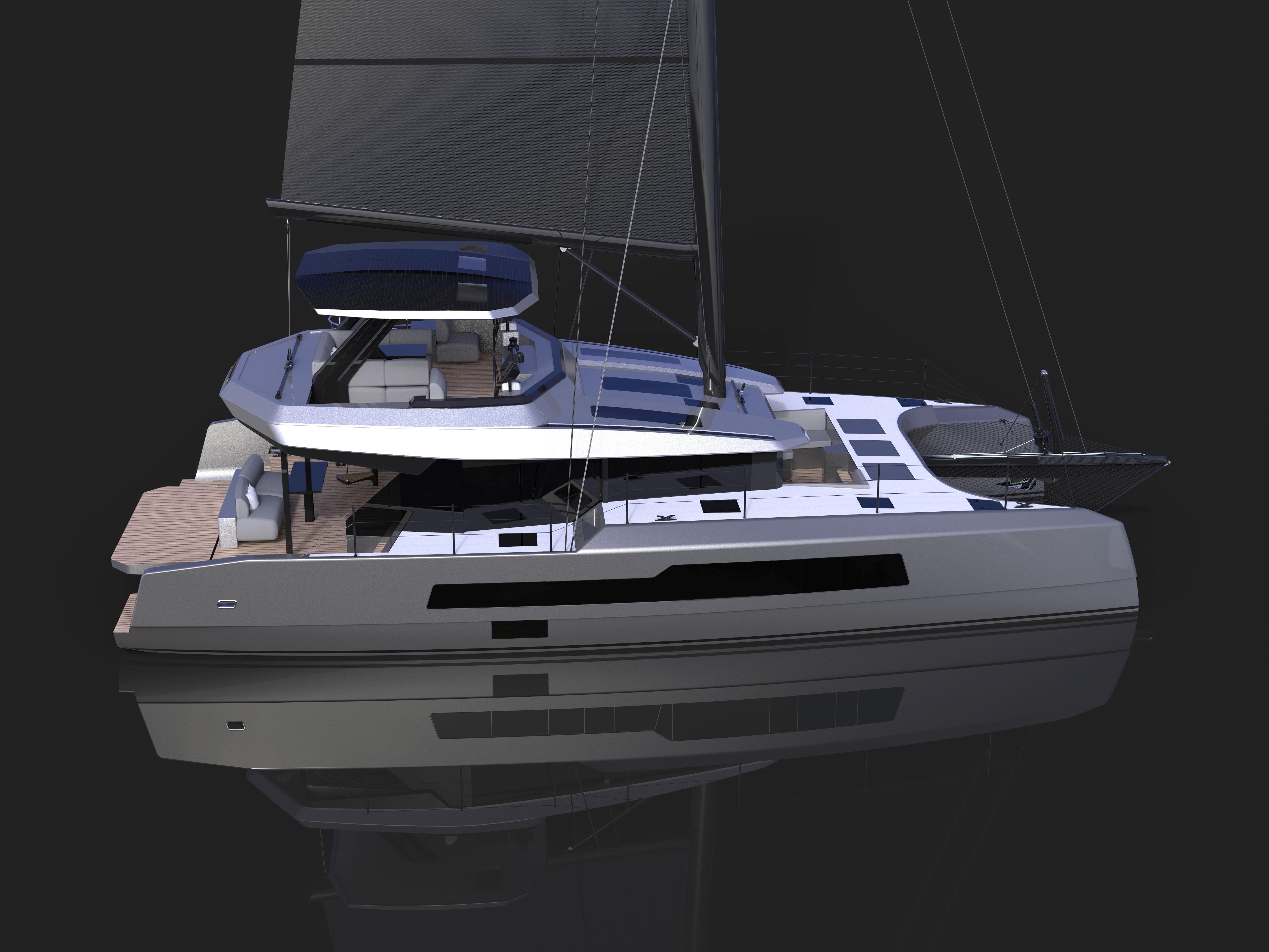 The MC55 not only benefits from McConaghy’s vast experience building performance boats, but also from the carefully considered use of carbon, that sees her precise hull forms achieve an optimum strength to weight ratio. As with all McConaghy MC Multihulls, the MC55 has dual helm positions on the flybridge, allowing for the greatest sight lines forward, as well as an elevated position that aids in-port manoeuvres – making her an ideal choice for those new to multihull cruising.