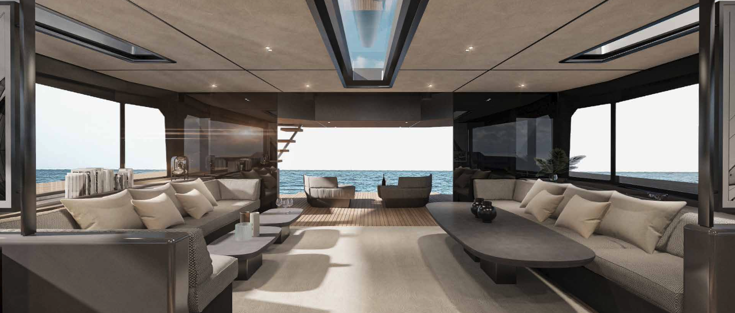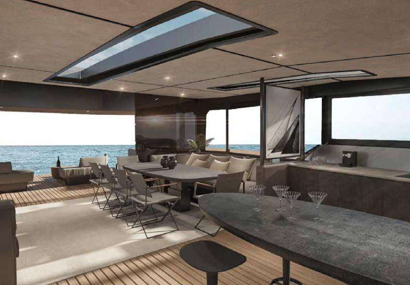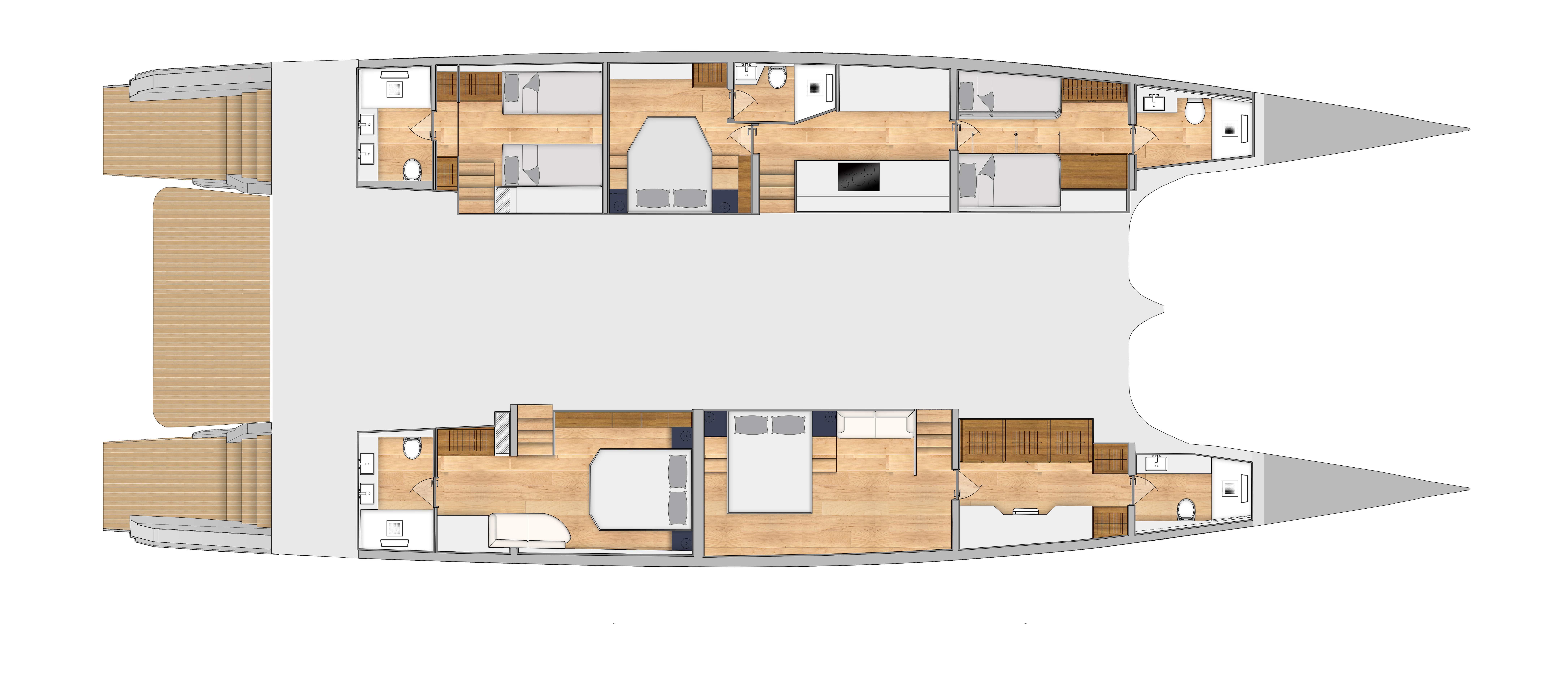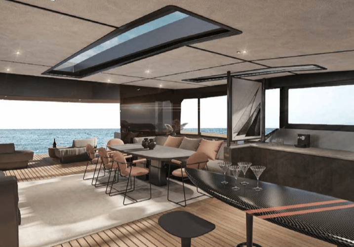 The MC86 whilst remaining true to McConaghy's identifiable exterior lines and key performance attributes, is a full-custom yacht in build philosophy. This allows owners to set out the interior’s general arrangement and equipment in a way that is unique to their own requirements, with multiple bespoke options. A true "wind speed" catamaran, the MC86 has an extensive range under power as well with up to 2,000 nm at economical revs. Her bespoke carbon centre boards allow her to point much higher than other cats, yet are safely housed below decks in their carbon watertight boxes. The MC86 benefits from many of the yards in house production, with extensive use of carbon and bespoke interiors from m2Atilier. A serious, capable offshore catamaran indeed.