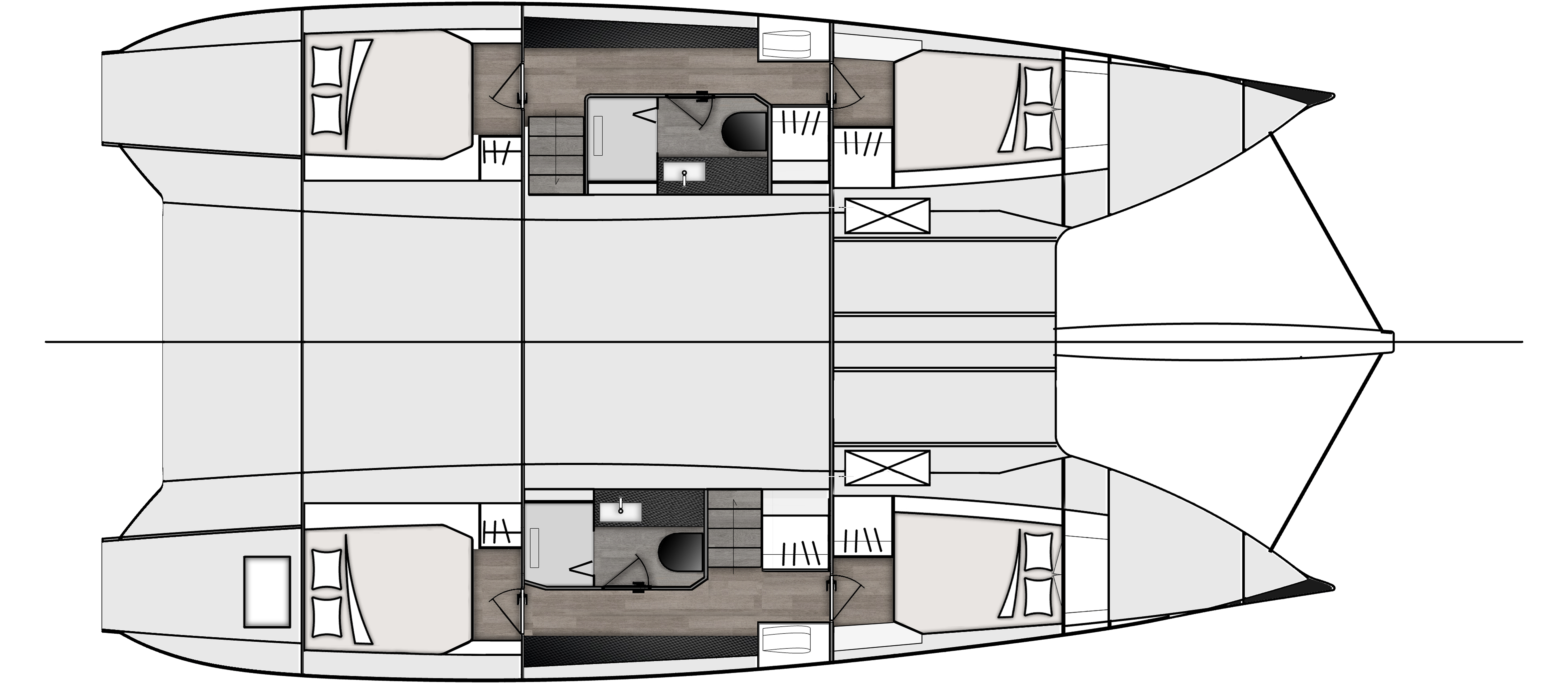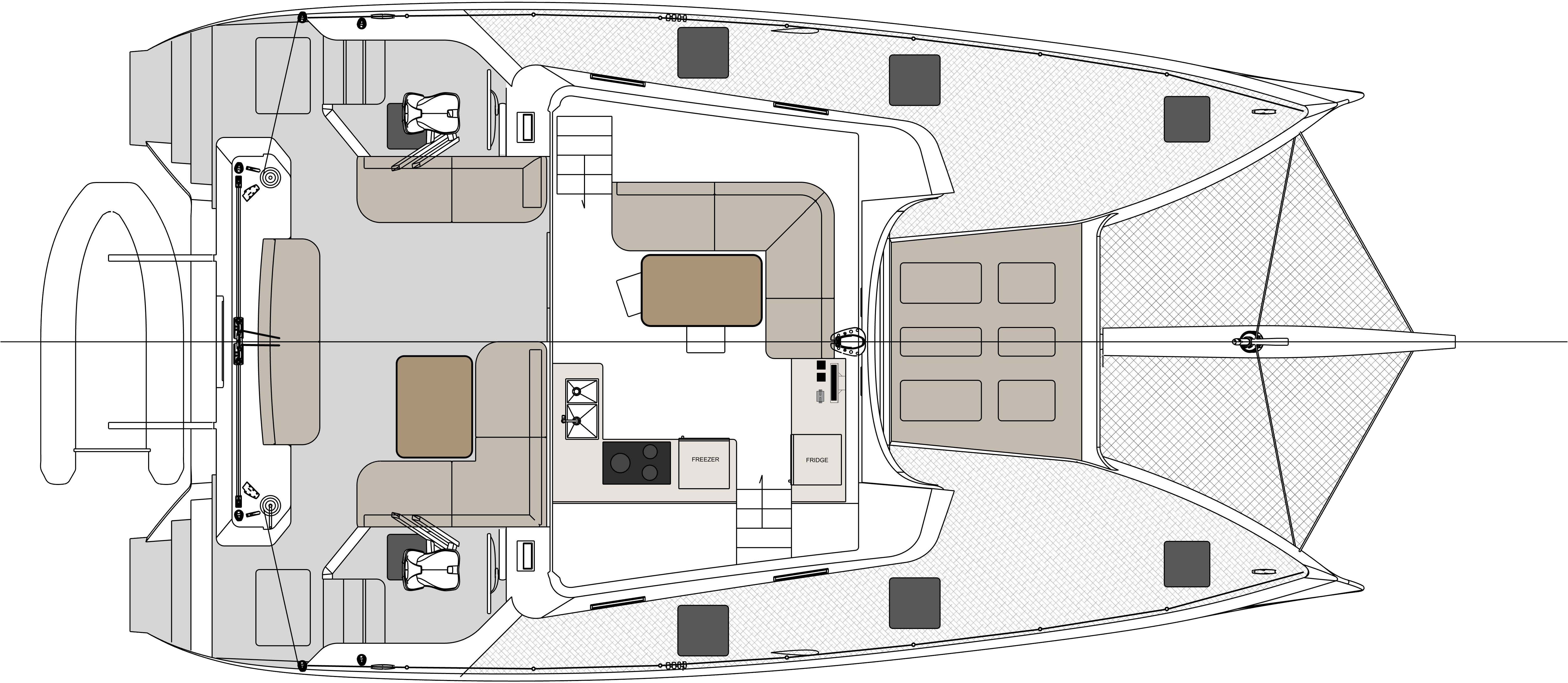 The standard equipment includes, electric engines, lithium batteries and solar panels. Everything needed for the eco-conscious sailor..