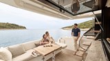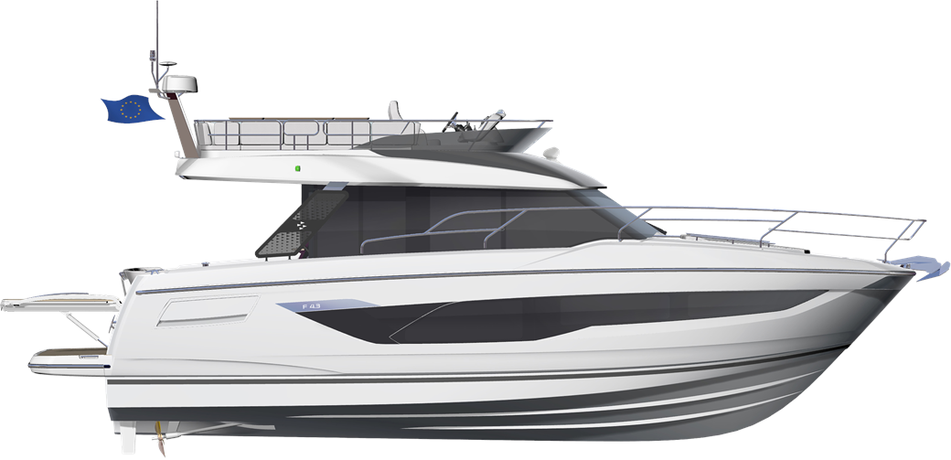 Both the interior and exterior living areas exude an atmosphere of luxury, safety, and unparalleled comfort. With bold design choices and a striking 43-foot frame, this model invites you aboard with the sophisticated elegance and refined style that define the new generation of the F-Line.
