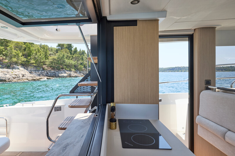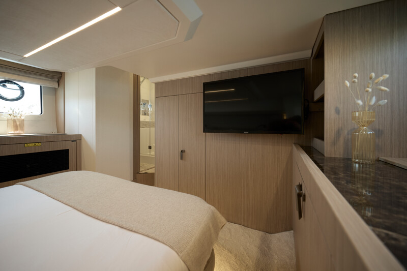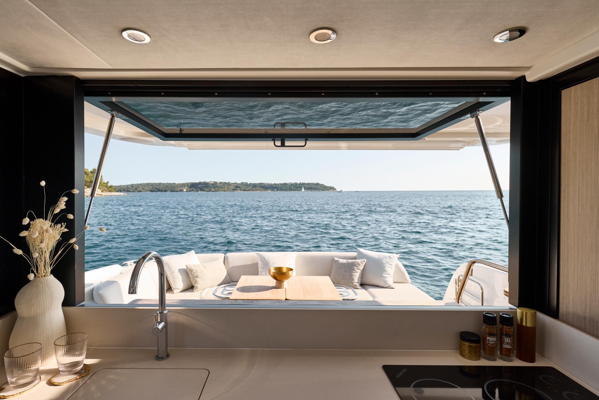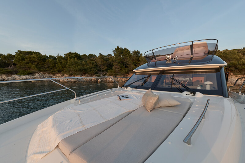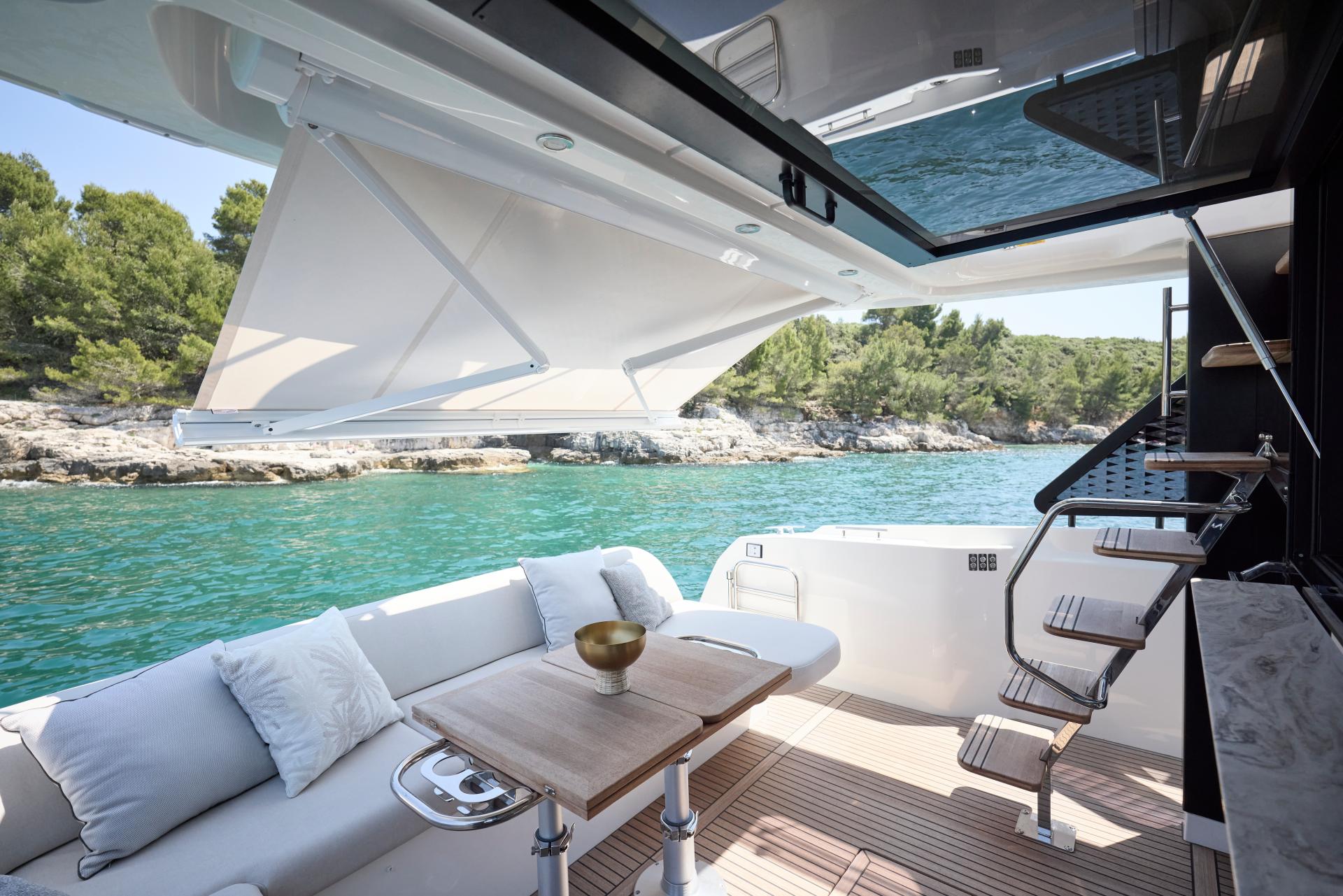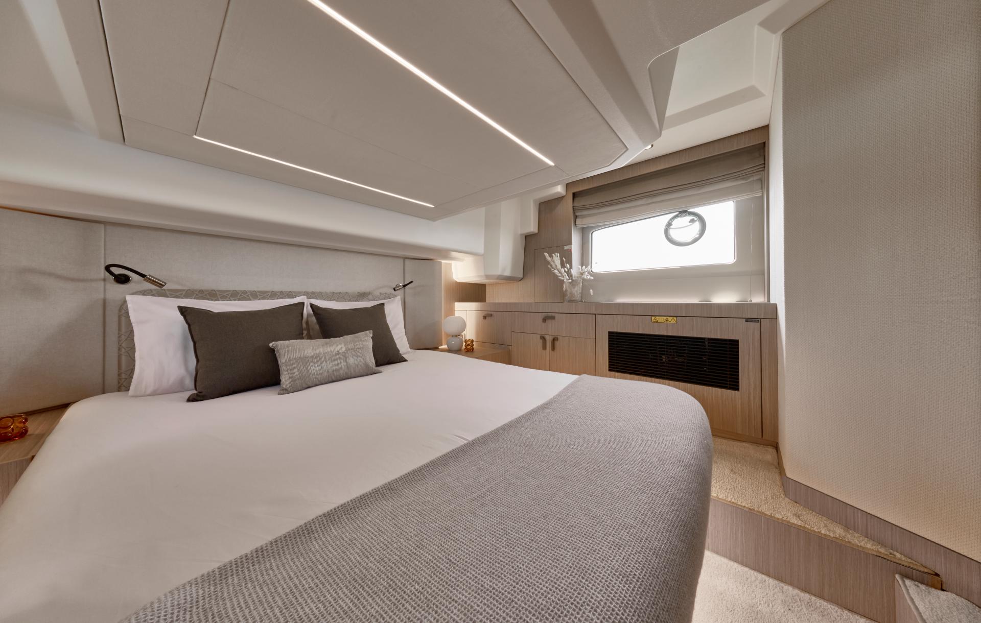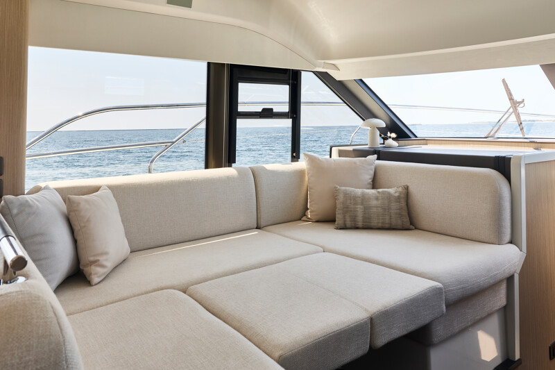Both the interior and exterior living areas exude an atmosphere of luxury, safety, and unparalleled comfort. With bold design choices and a striking 43-foot frame, this model invites you aboard with the sophisticated elegance and refined style that define the new generation of the F-Line.
