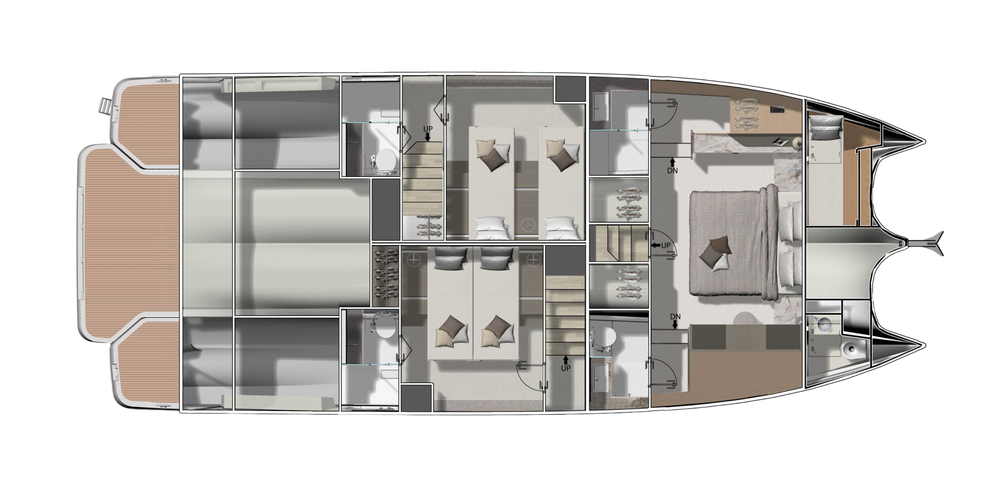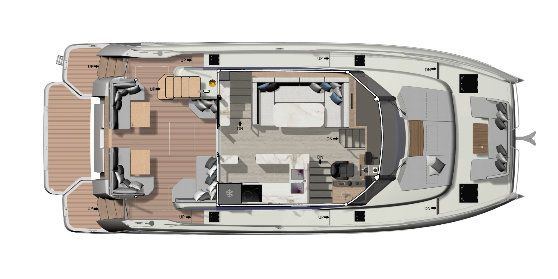With its surprising characteristics, unique in its segment, the M48 offers an unparalleled freedom of movement and stability to experience peaceful moments at sea. Winning the design innovation award in 2022 and the highly regarded Eurpoean Power Boat of the year award in 2023, this outstanding new model is turning heads. This multihull reveals generous, brightly lit and refined living spaces, affording the ultimate in comfort. It promises life in harmony with the sea and at a gentle pace. Truly reconnect with nature and with yourself.