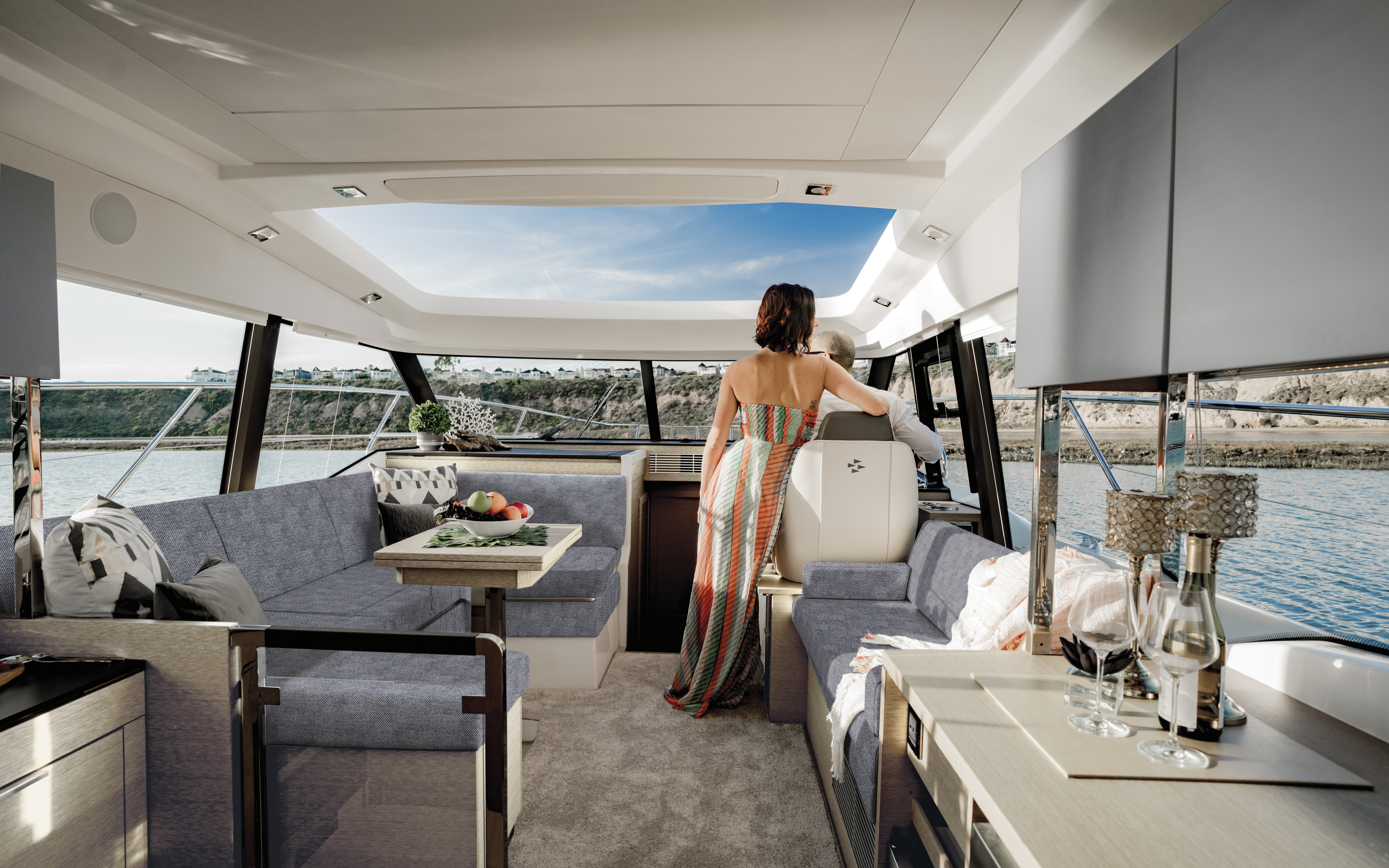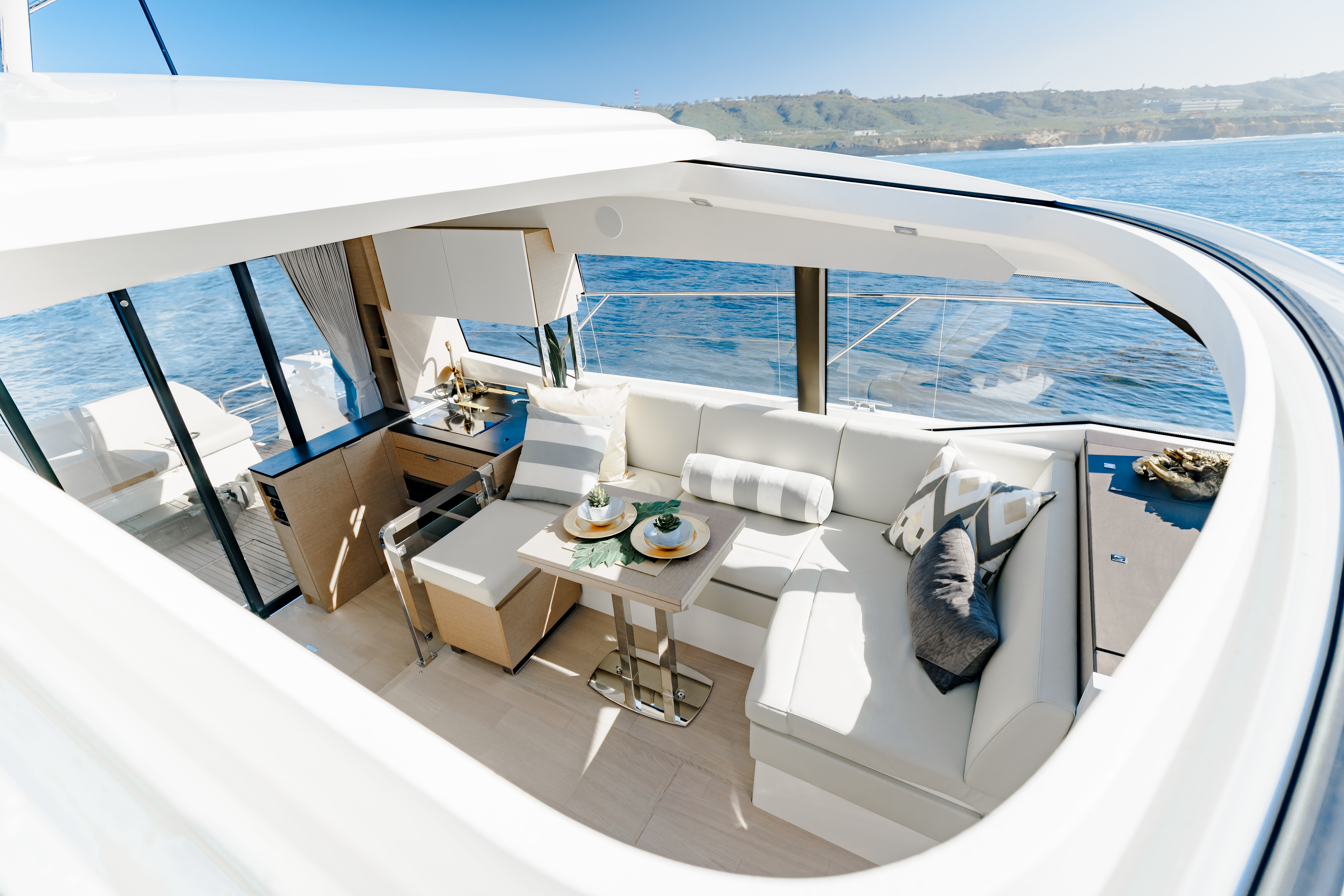 The Prestige 420S has a generous full beam master cabin, aft galley and a saloon bathed in natural light, it is no surprise the Prestige 420S is a multi award winner! This sporty coupe is powered by twin Cummins engines with a top speed of over 30 knots, when combined with joystick control the balance of power and maneuverability makes her a joy to drive.