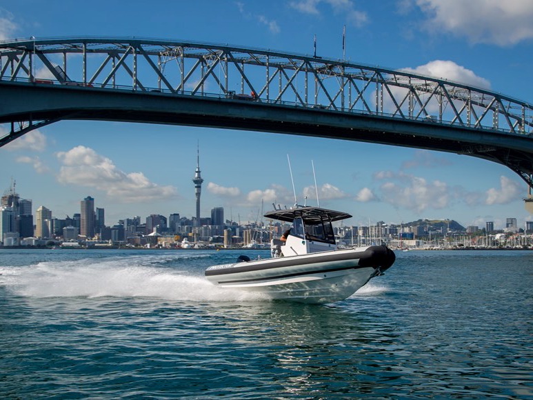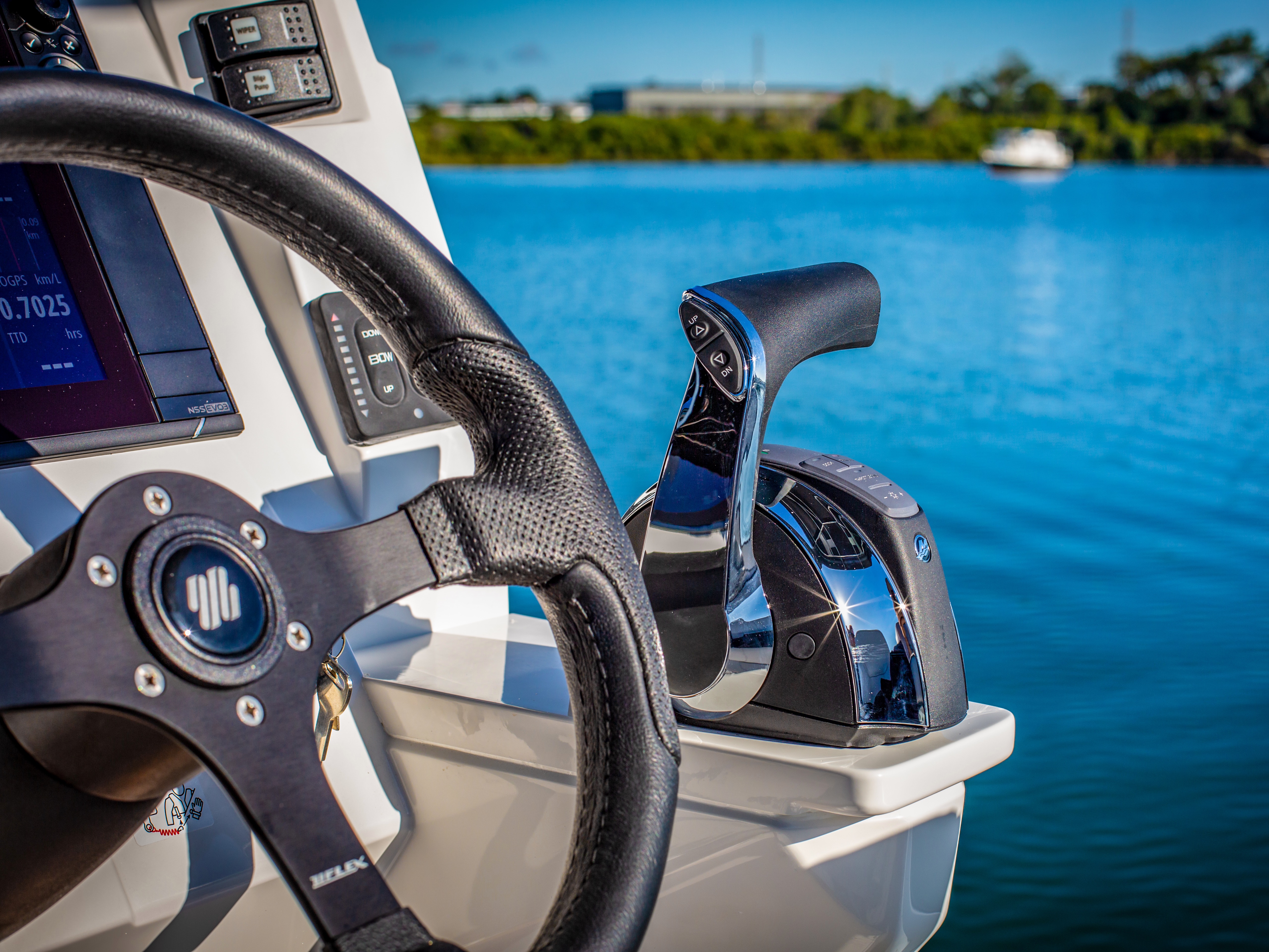 Designed with a single-engine transom, the 250 is a versatile platform that can be used both as a work boat or a family day boat.
