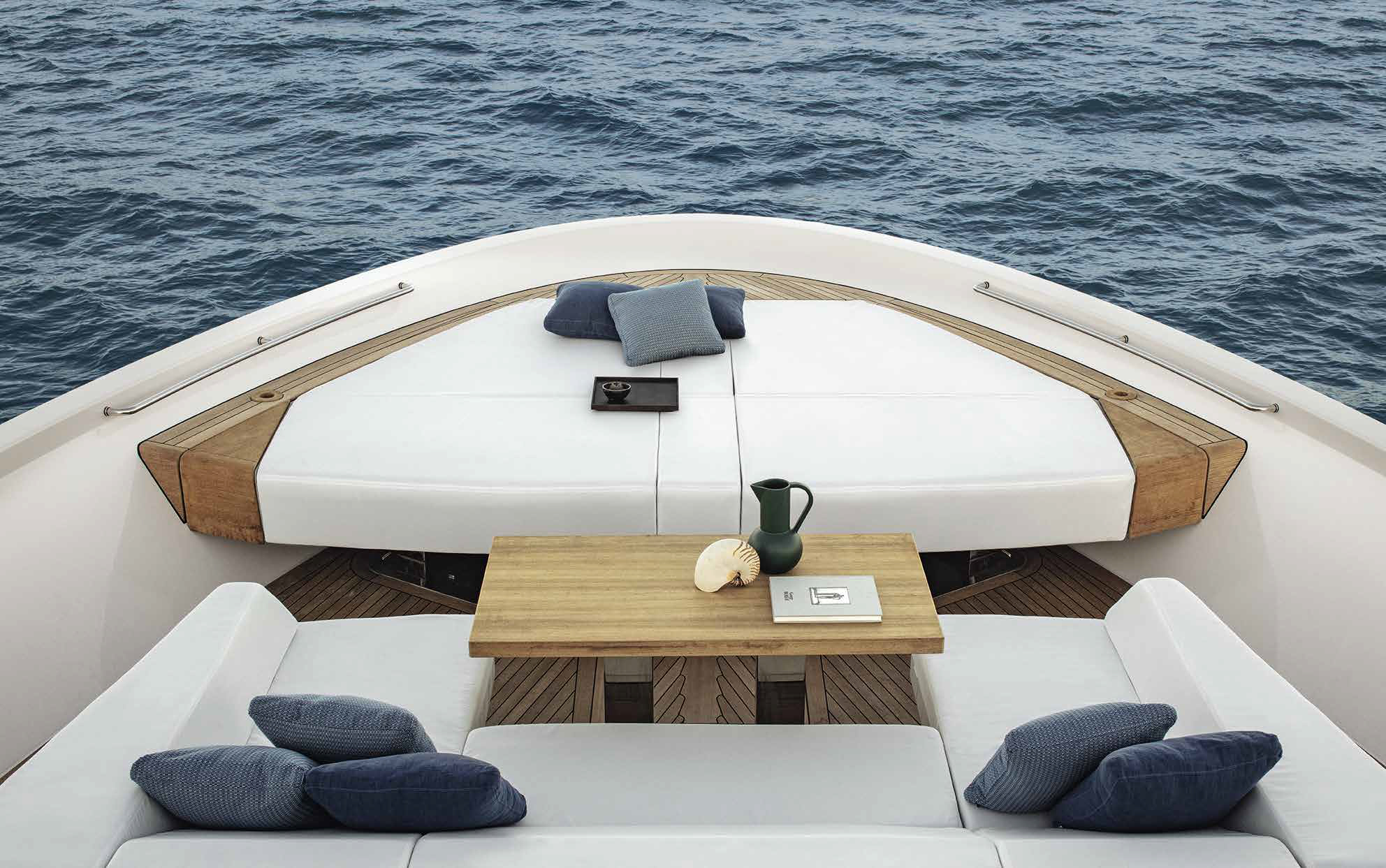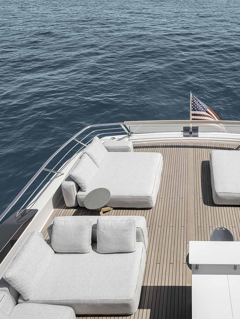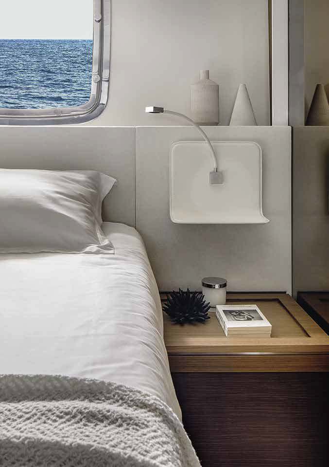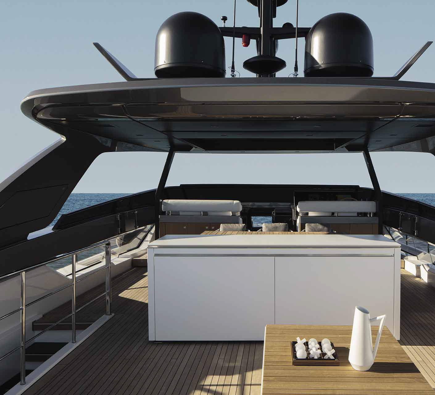 The innovative configuration increases interior volume, creating a more expansive and versatile onboard environment. This additional space allows for a redefined stern garage, offering increased capacity for tenders and water toys while maintaining an elegant profile. The enhanced sunbathing platform further strengthens the yacht’s connection to the sea, providing an inviting, immersive experience that blends style with practicality.