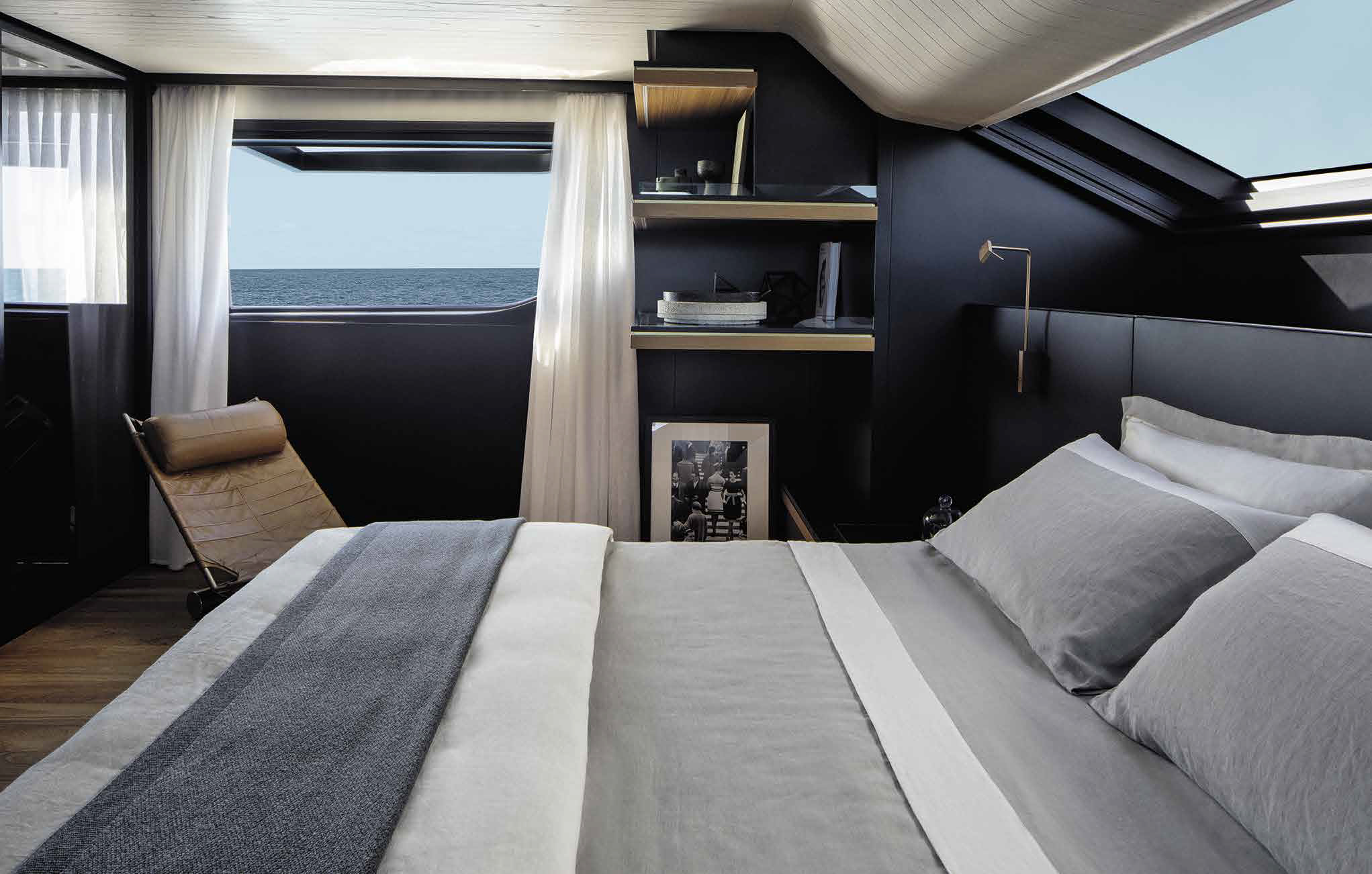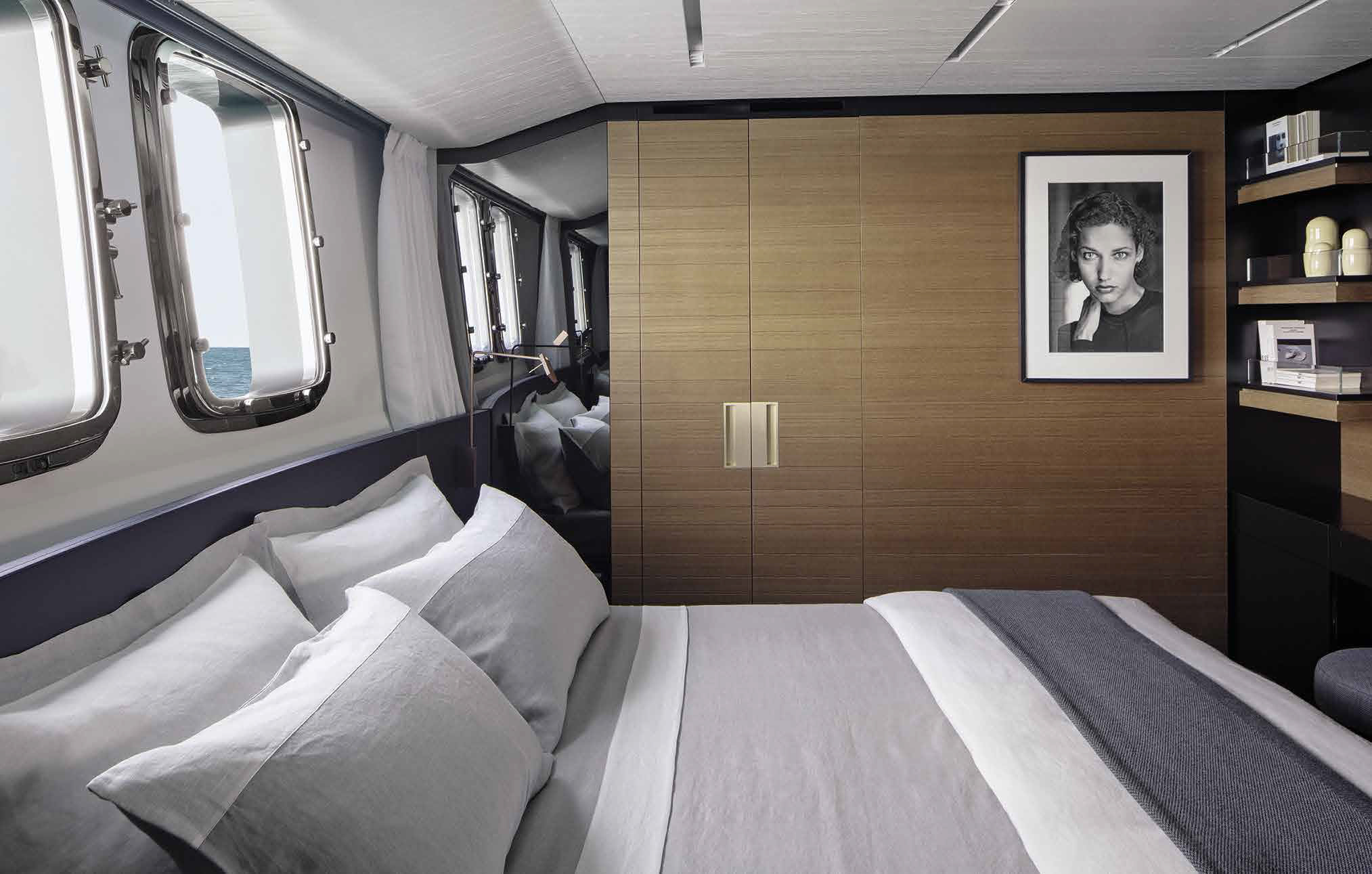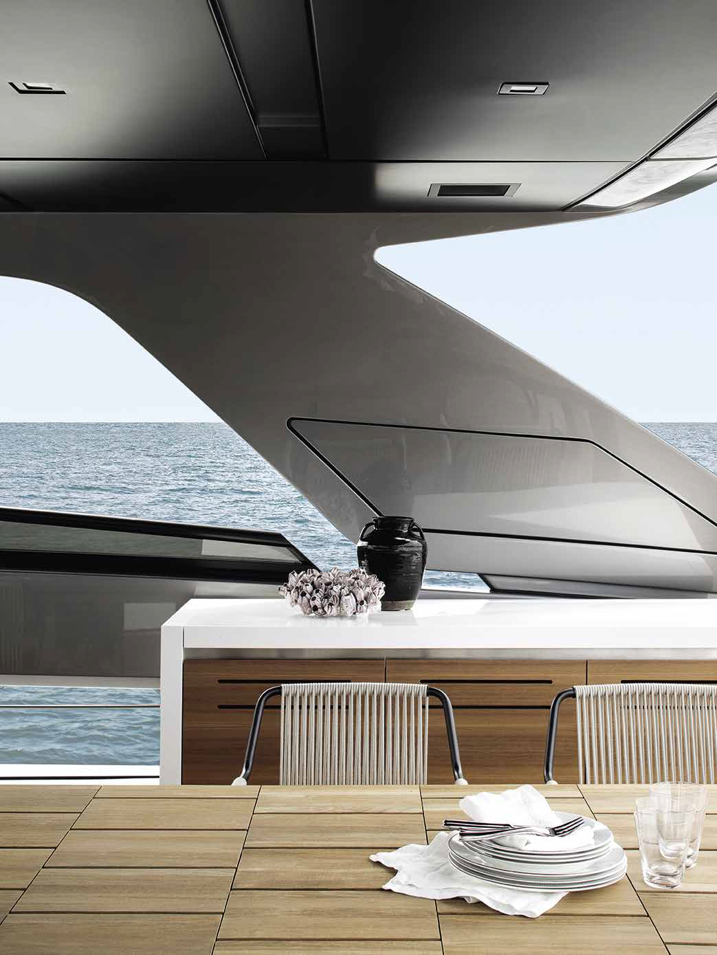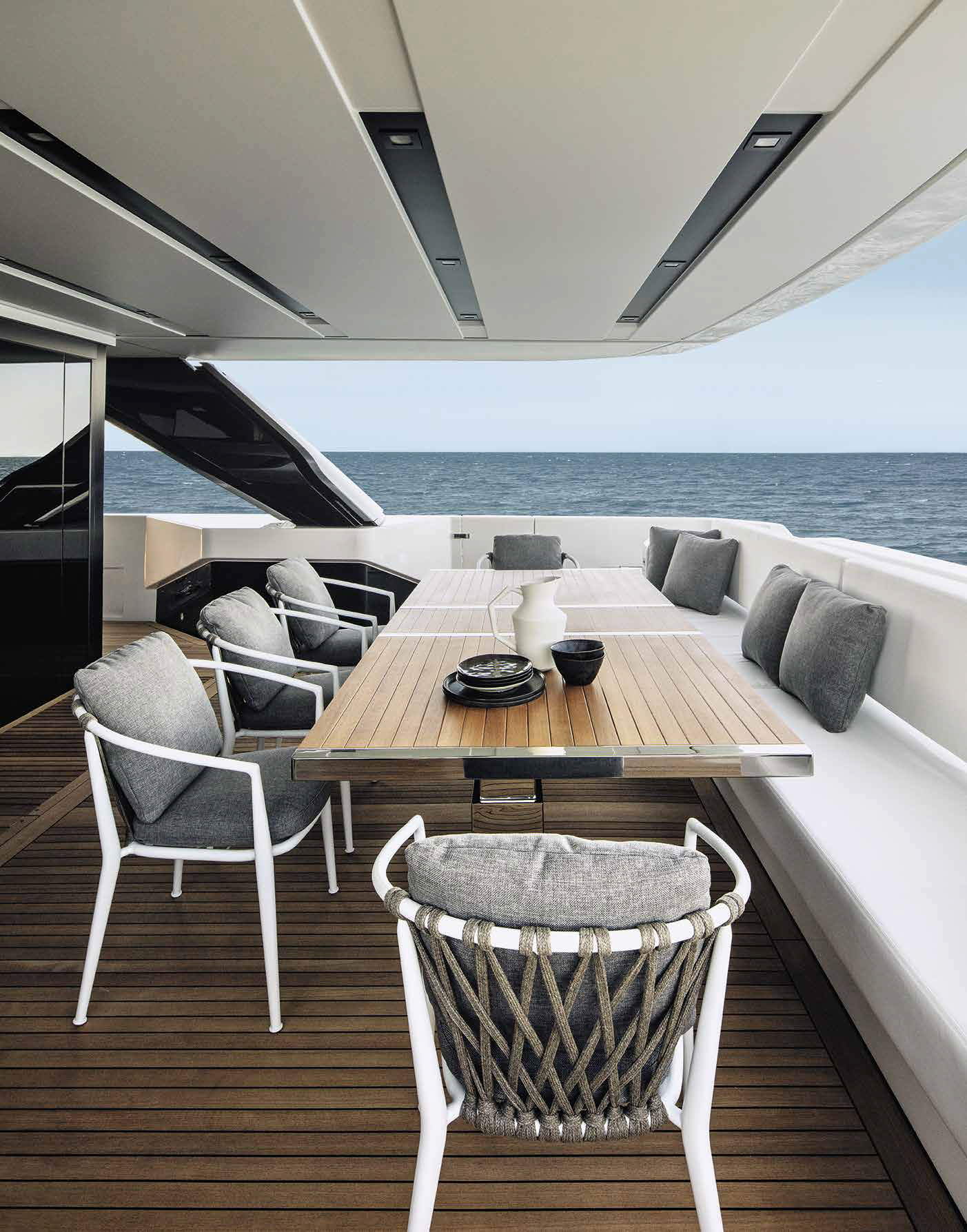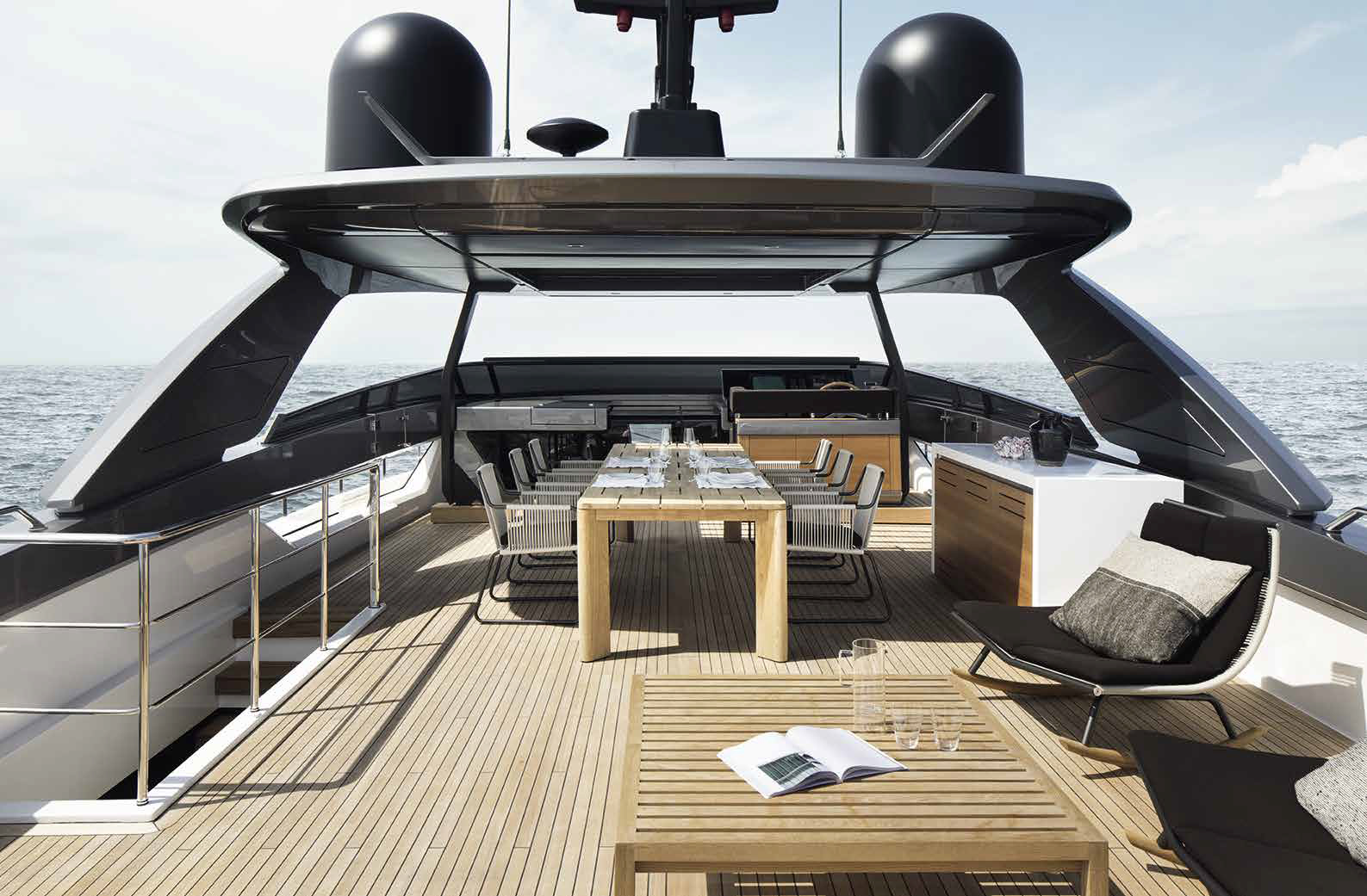 The innovative configuration increases interior volume, creating a more expansive and versatile onboard environment. This additional space allows for a redefined stern garage, offering increased capacity for tenders and water toys while maintaining an elegant profile. The enhanced sunbathing platform further strengthens the yacht’s connection to the sea, providing an inviting, immersive experience that blends style with practicality.