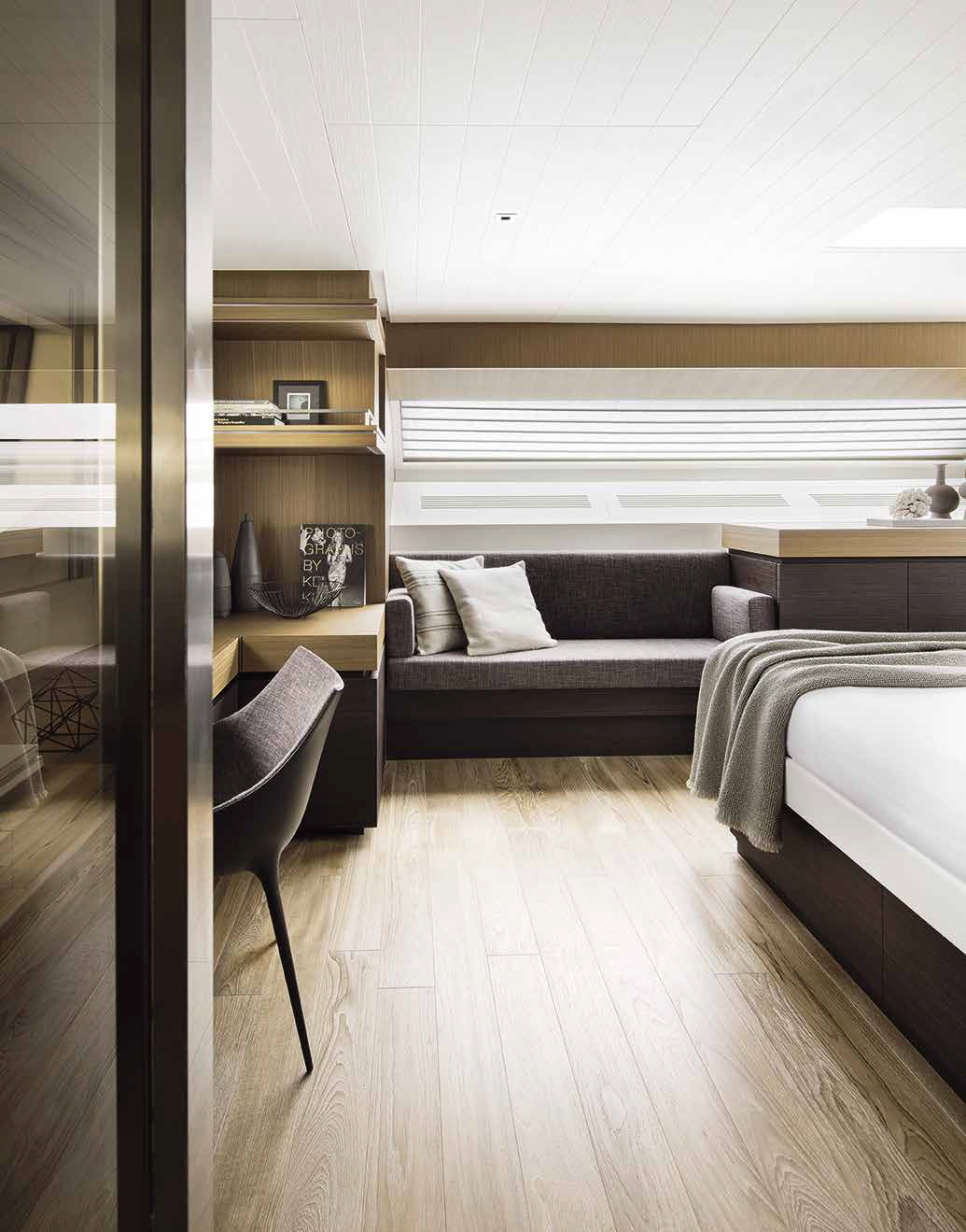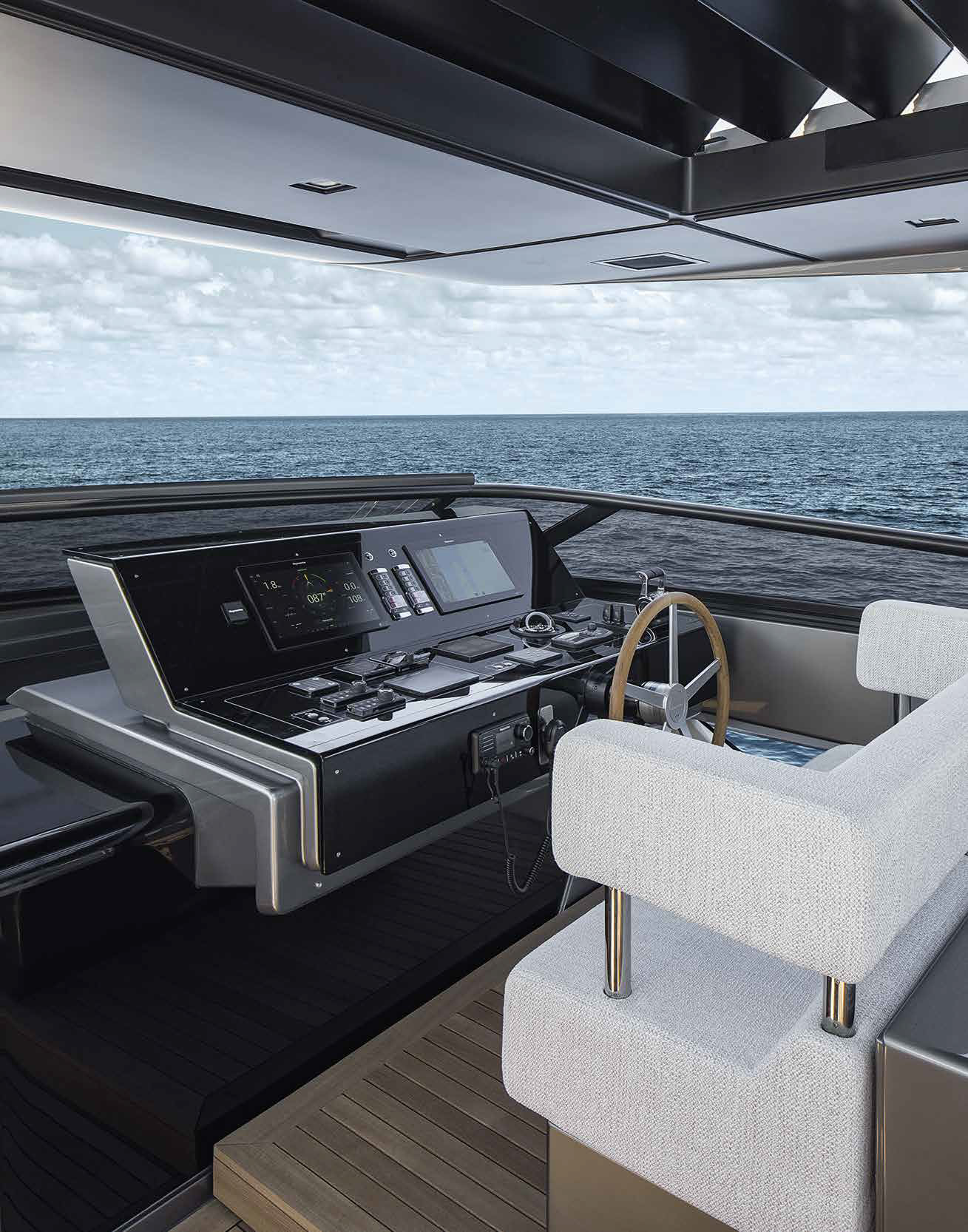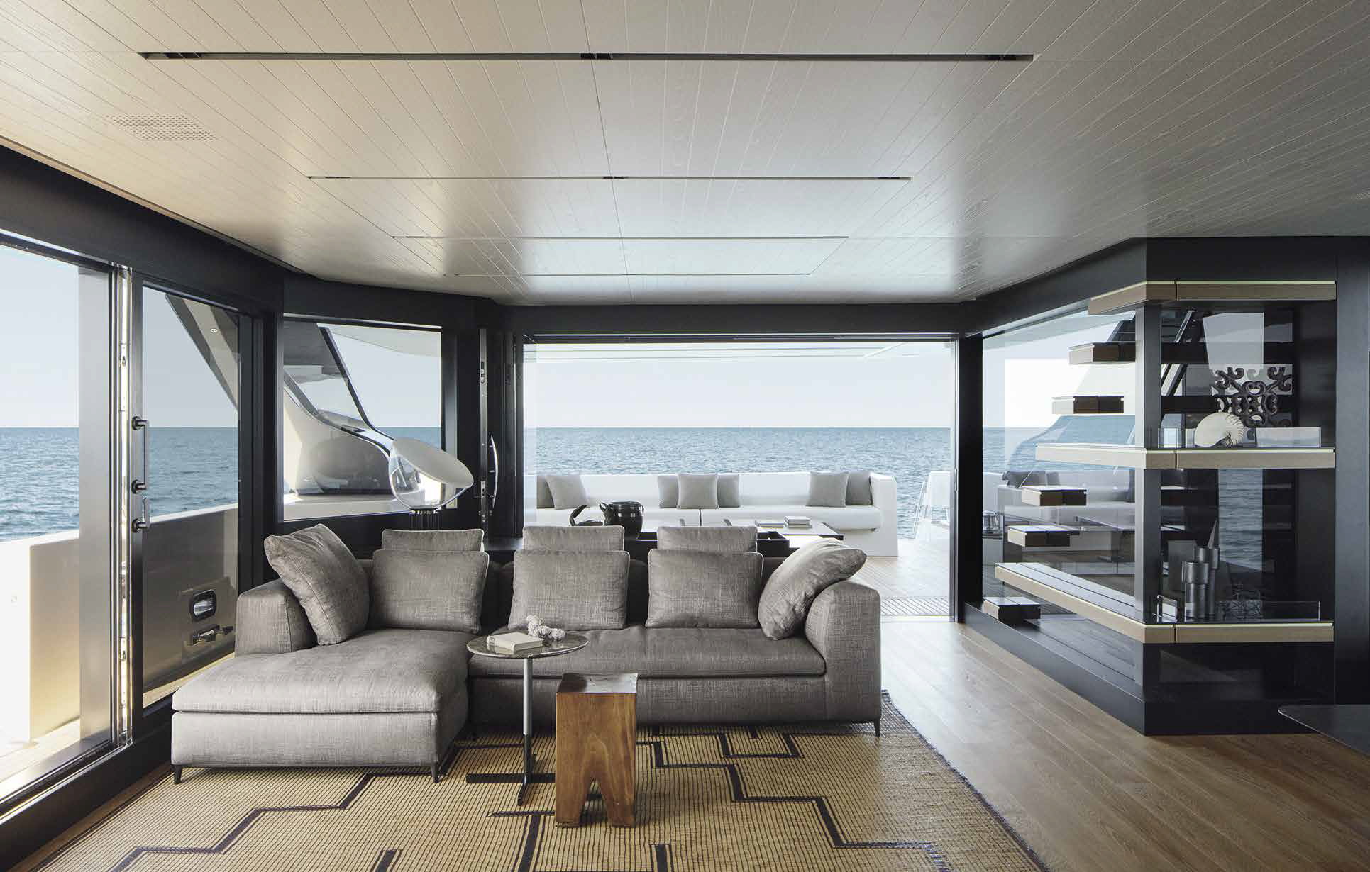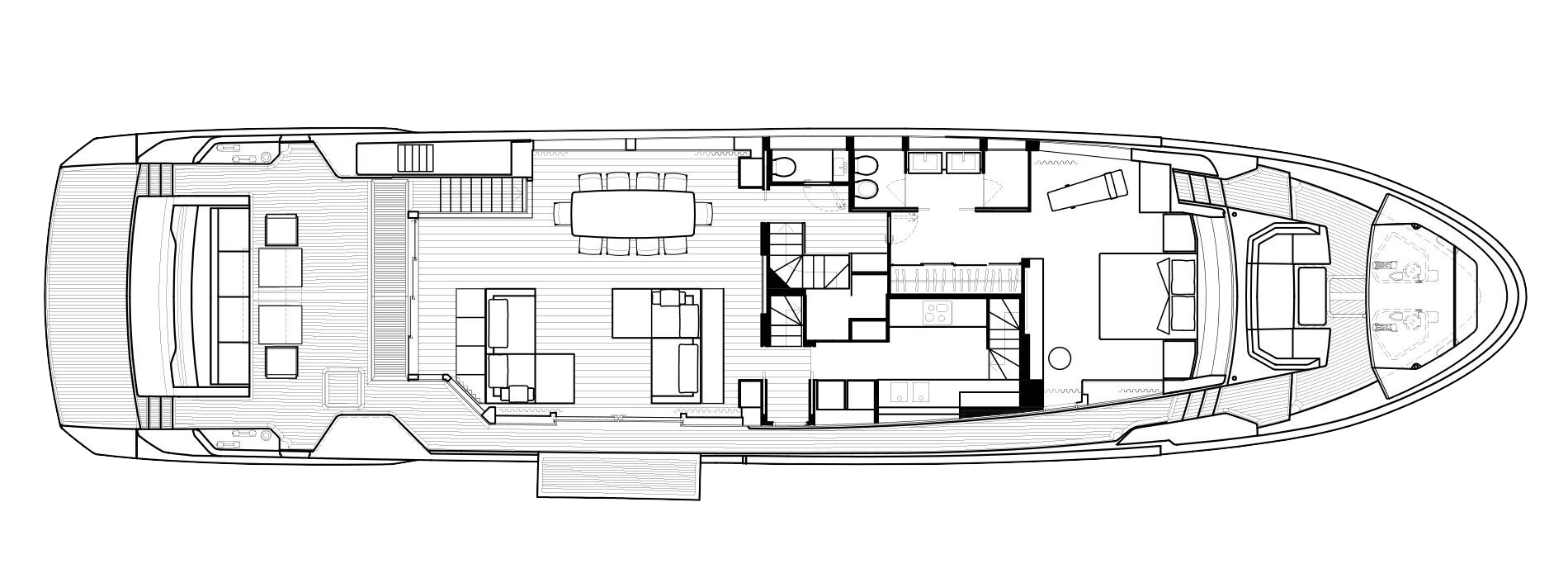The innovative configuration increases interior volume, creating a more expansive and versatile onboard environment. This additional space allows for a redefined stern garage, offering increased capacity for tenders and water toys while maintaining an elegant profile. The enhanced sunbathing platform further strengthens the yacht’s connection to the sea, providing an inviting, immersive experience that blends style with practicality.