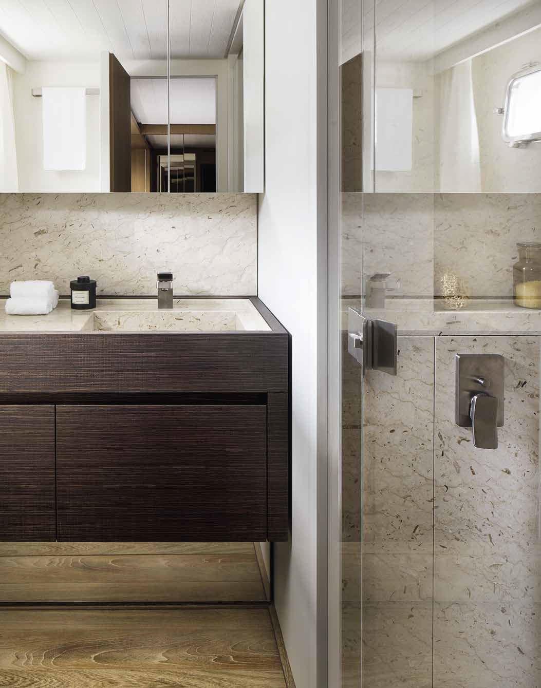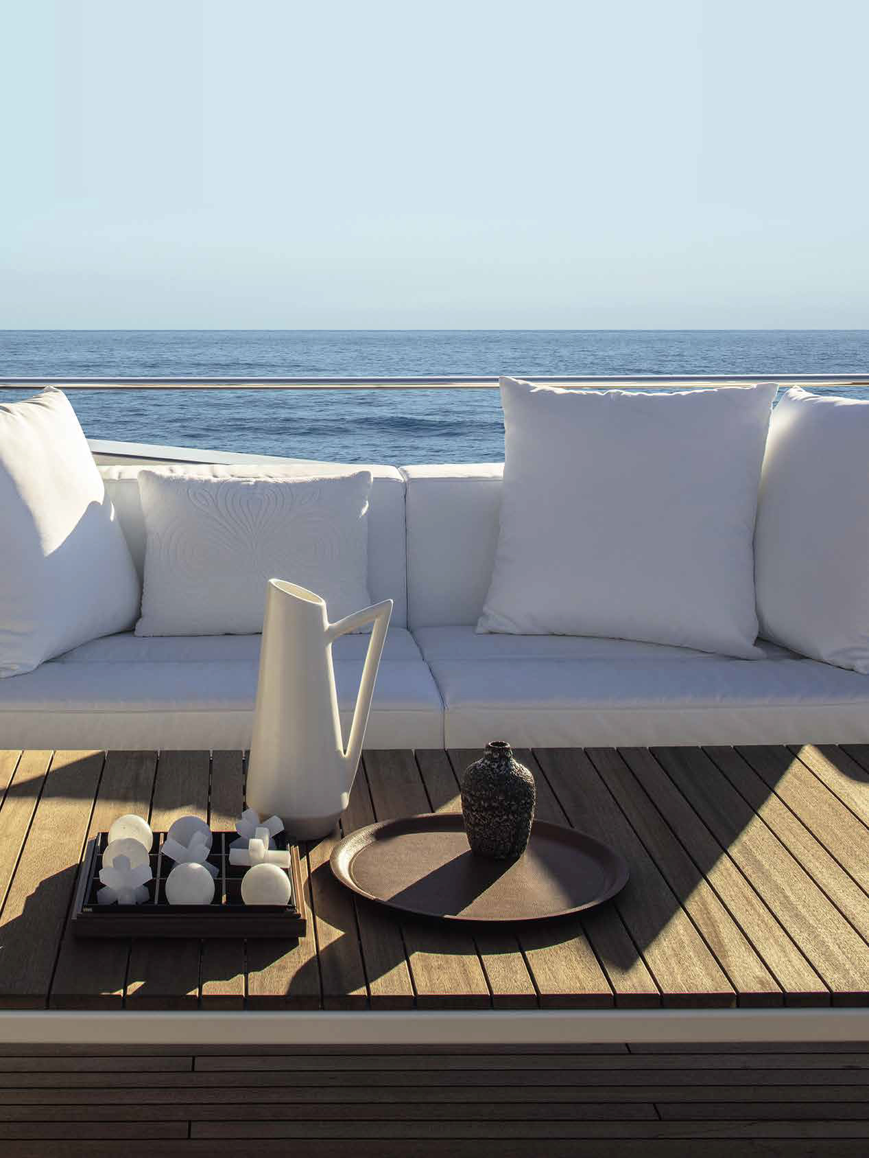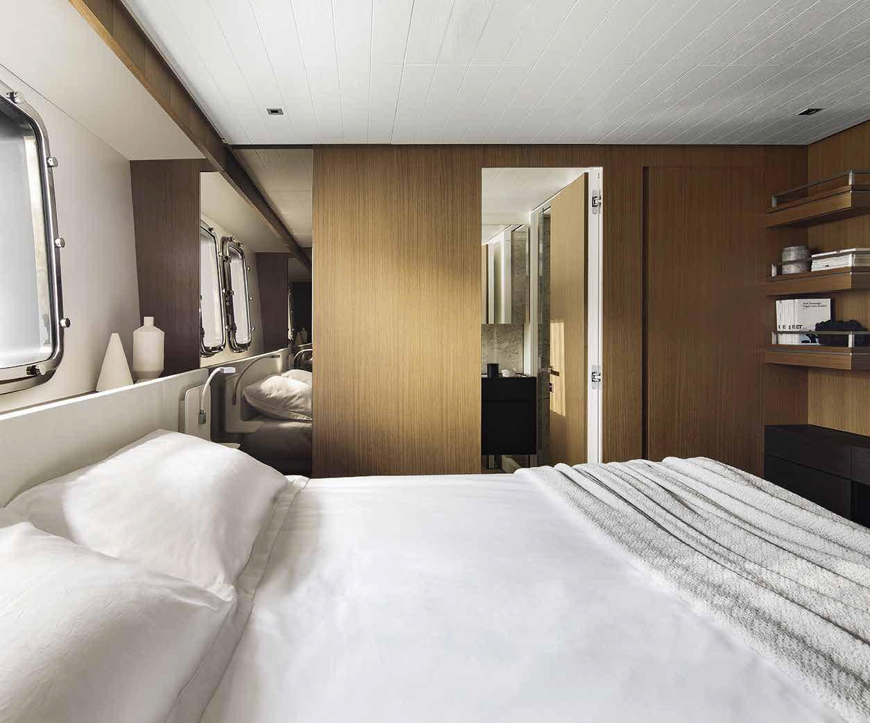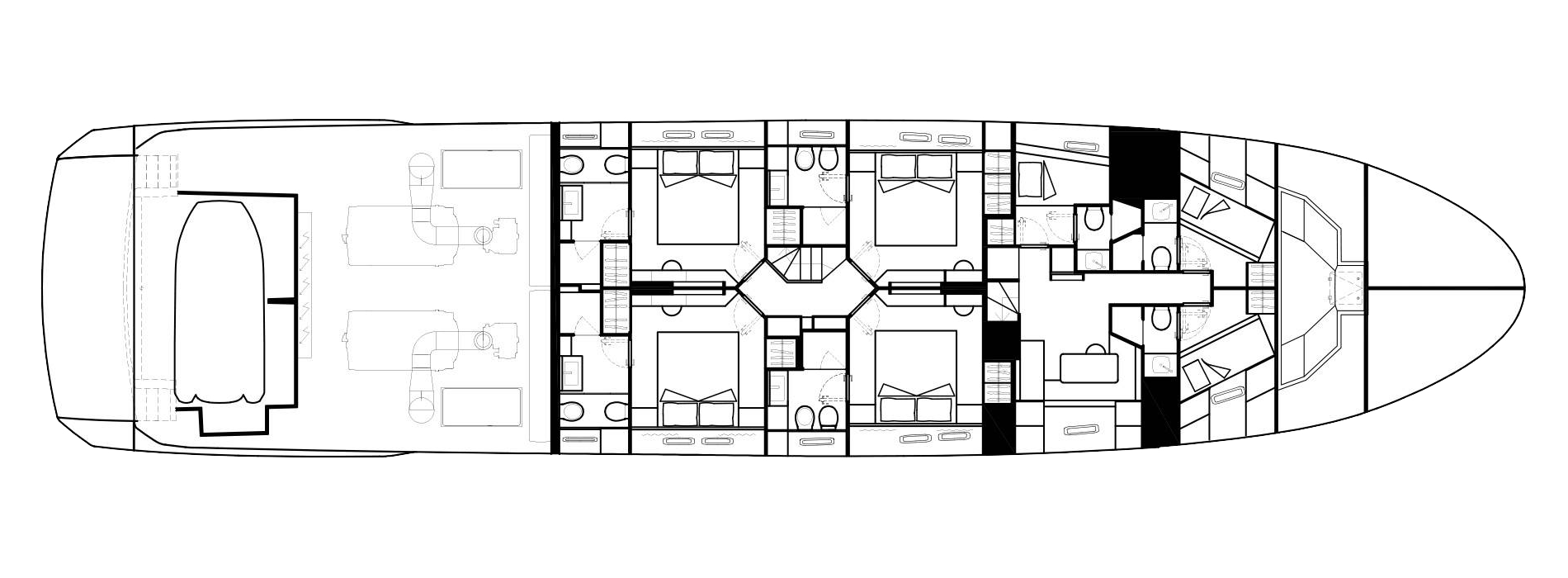 The innovative configuration increases interior volume, creating a more expansive and versatile onboard environment. This additional space allows for a redefined stern garage, offering increased capacity for tenders and water toys while maintaining an elegant profile. The enhanced sunbathing platform further strengthens the yacht’s connection to the sea, providing an inviting, immersive experience that blends style with practicality.
