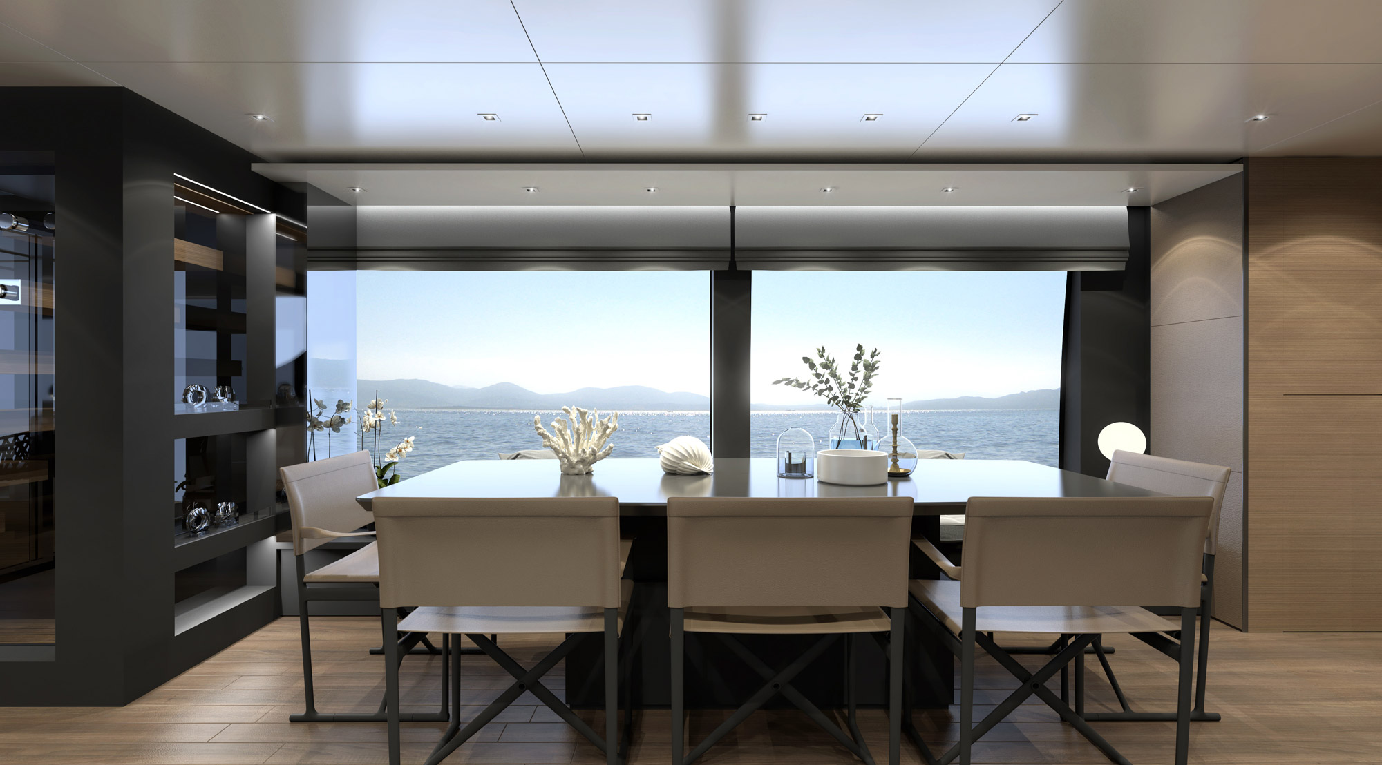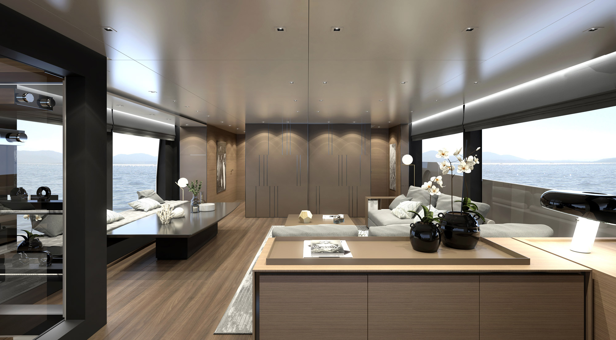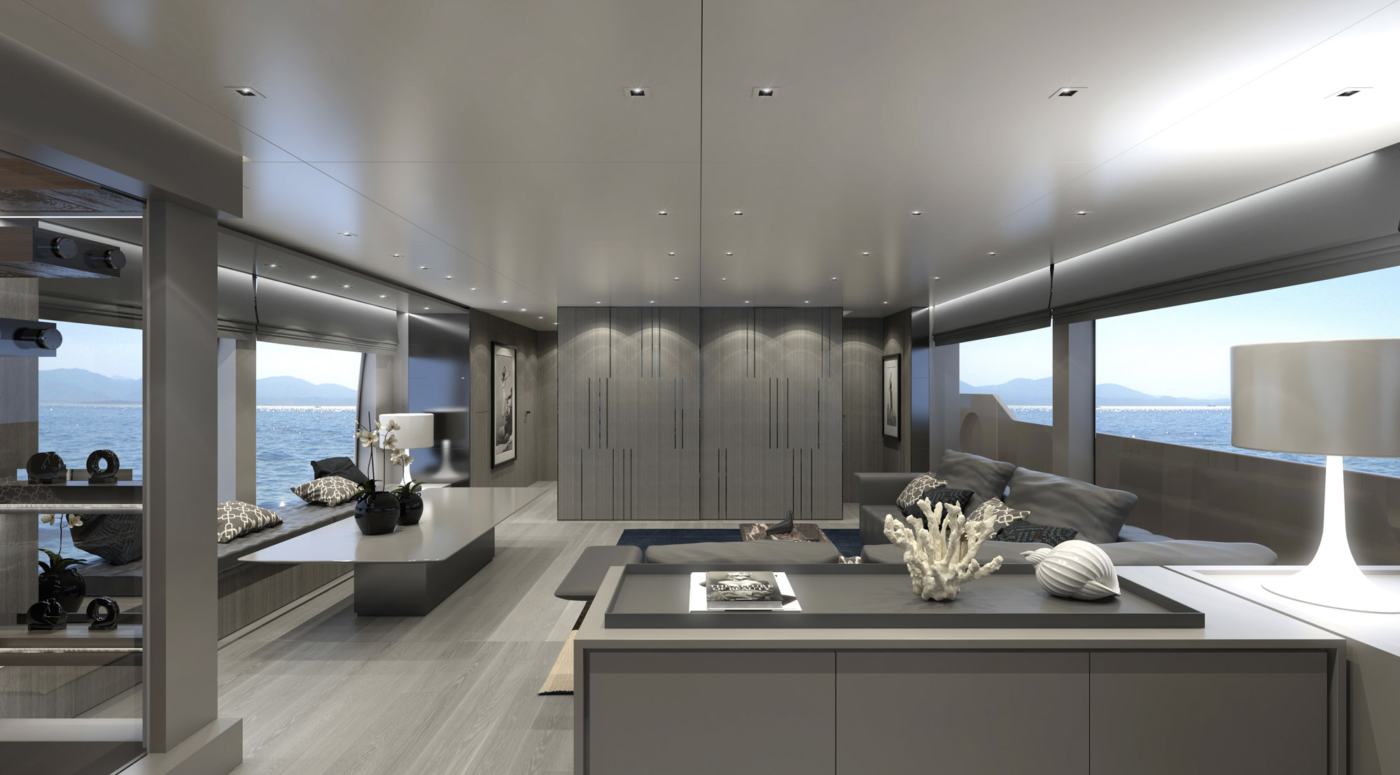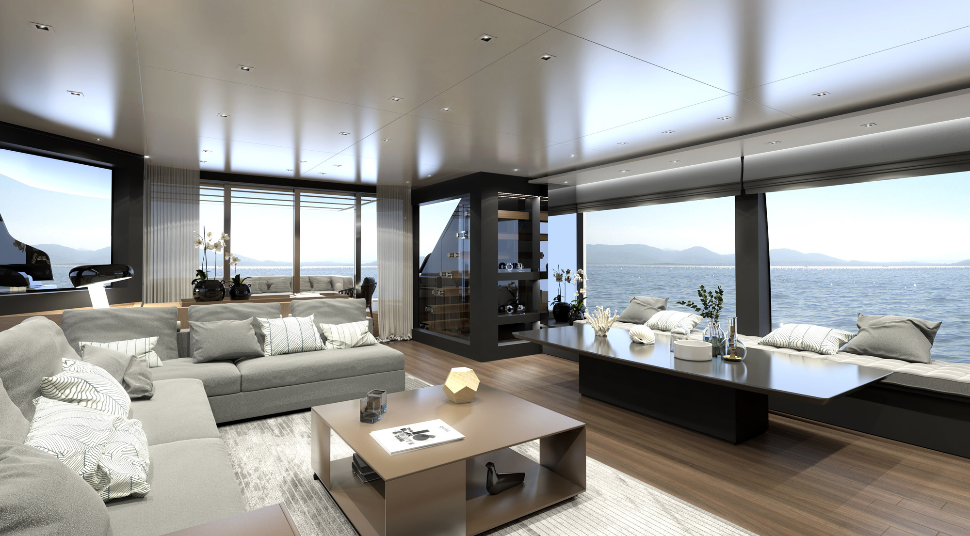 By elevating the port-side deck, the SL96A achieves a more expansive and versatile interior, where natural light floods the living spaces through perfectly positioned floor-to-ceiling windows.