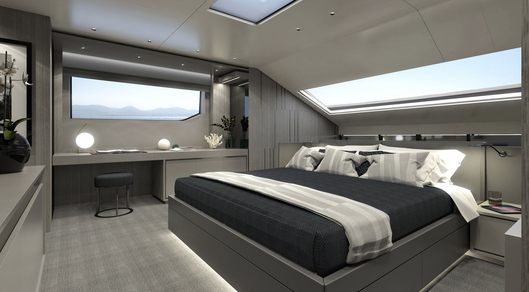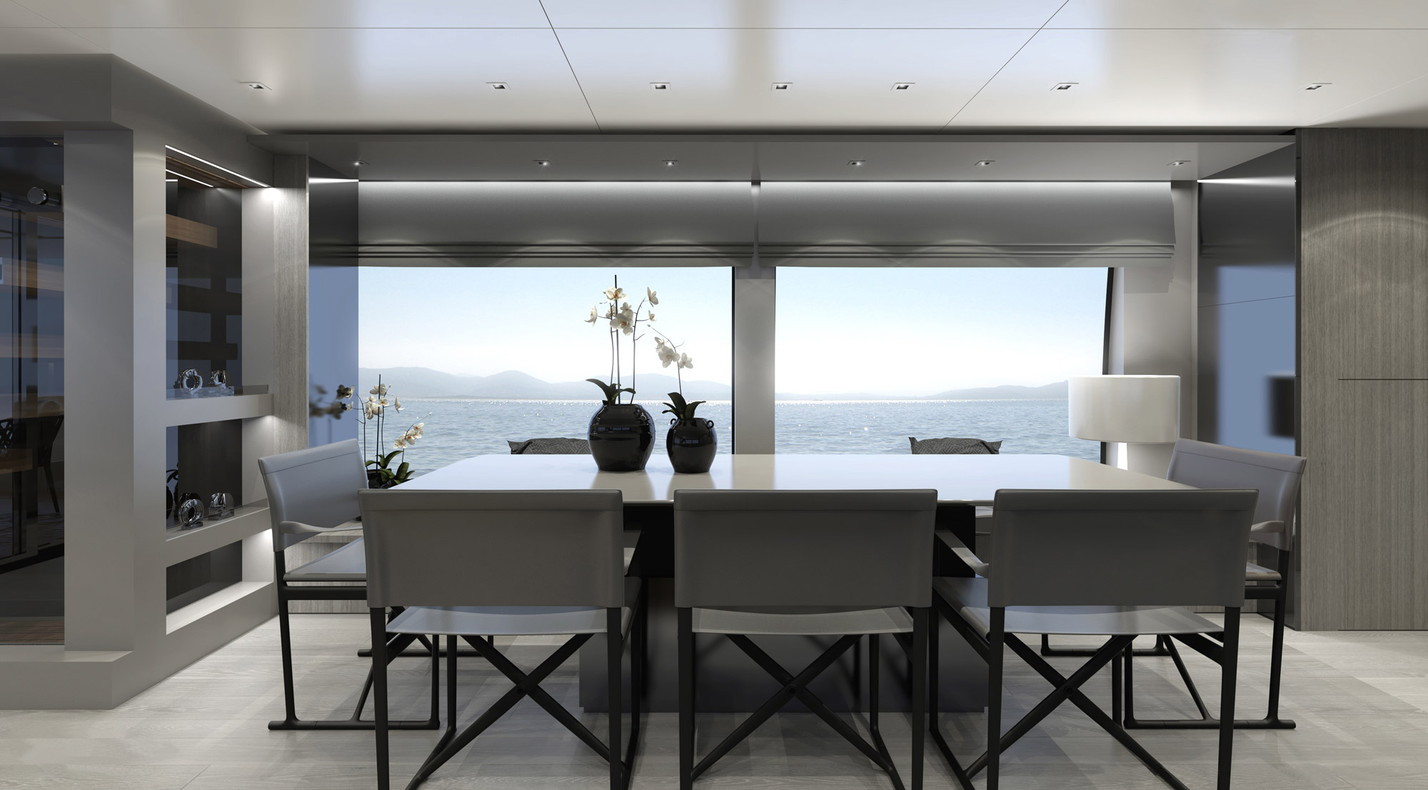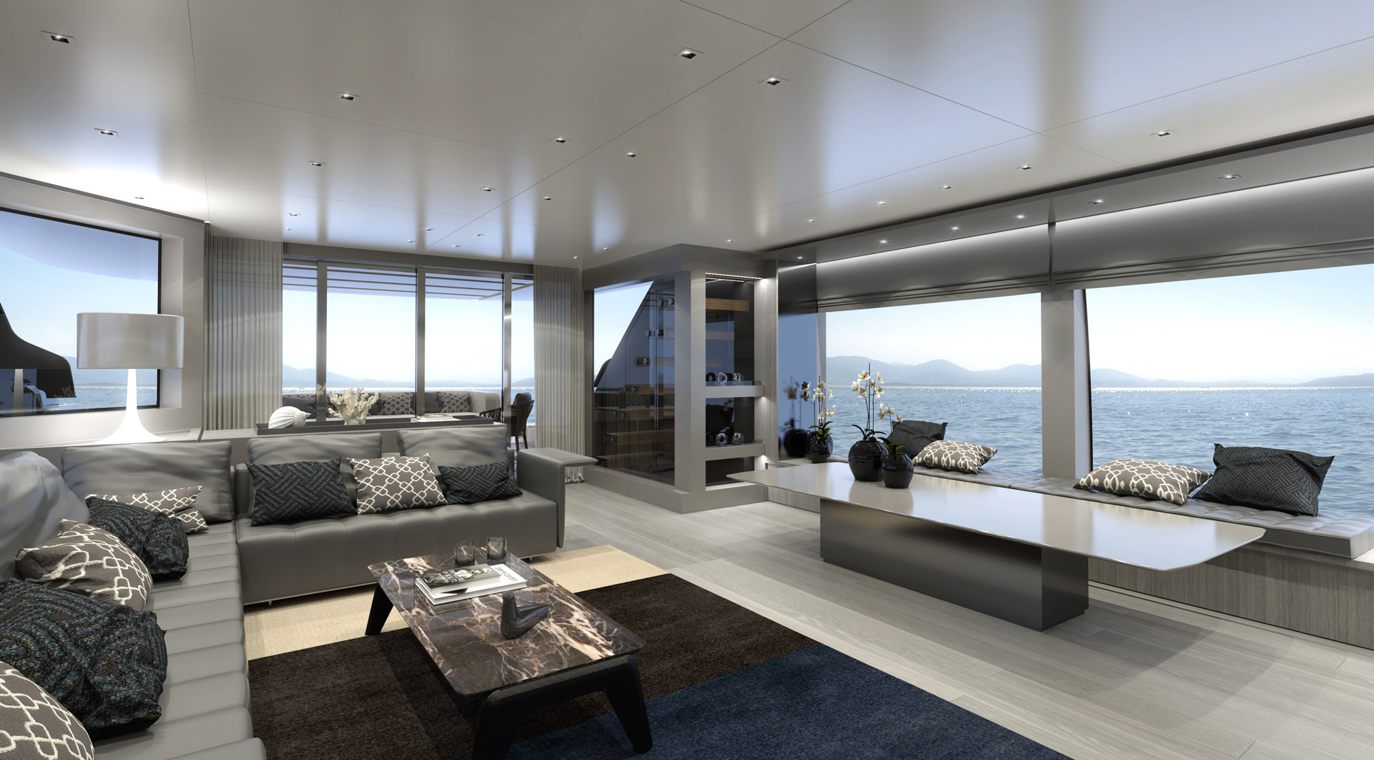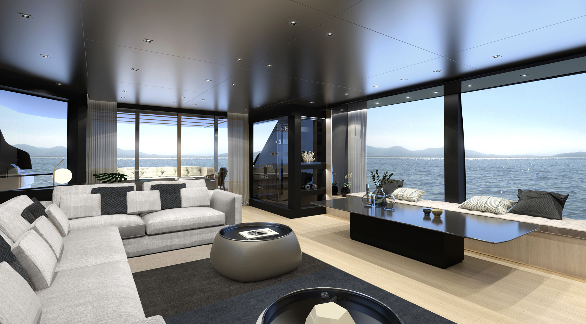 By elevating the port-side deck, the SL96A achieves a more expansive and versatile interior, where natural light floods the living spaces through perfectly positioned floor-to-ceiling windows.
