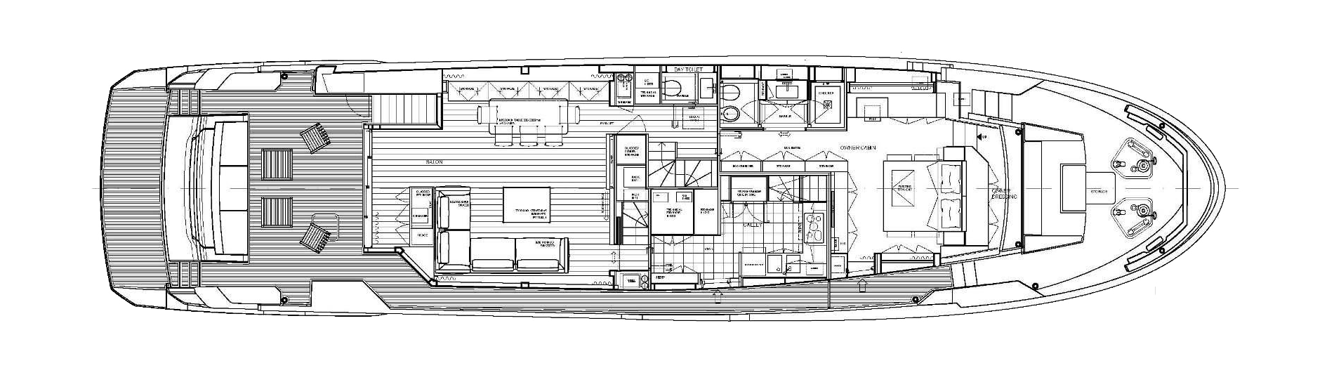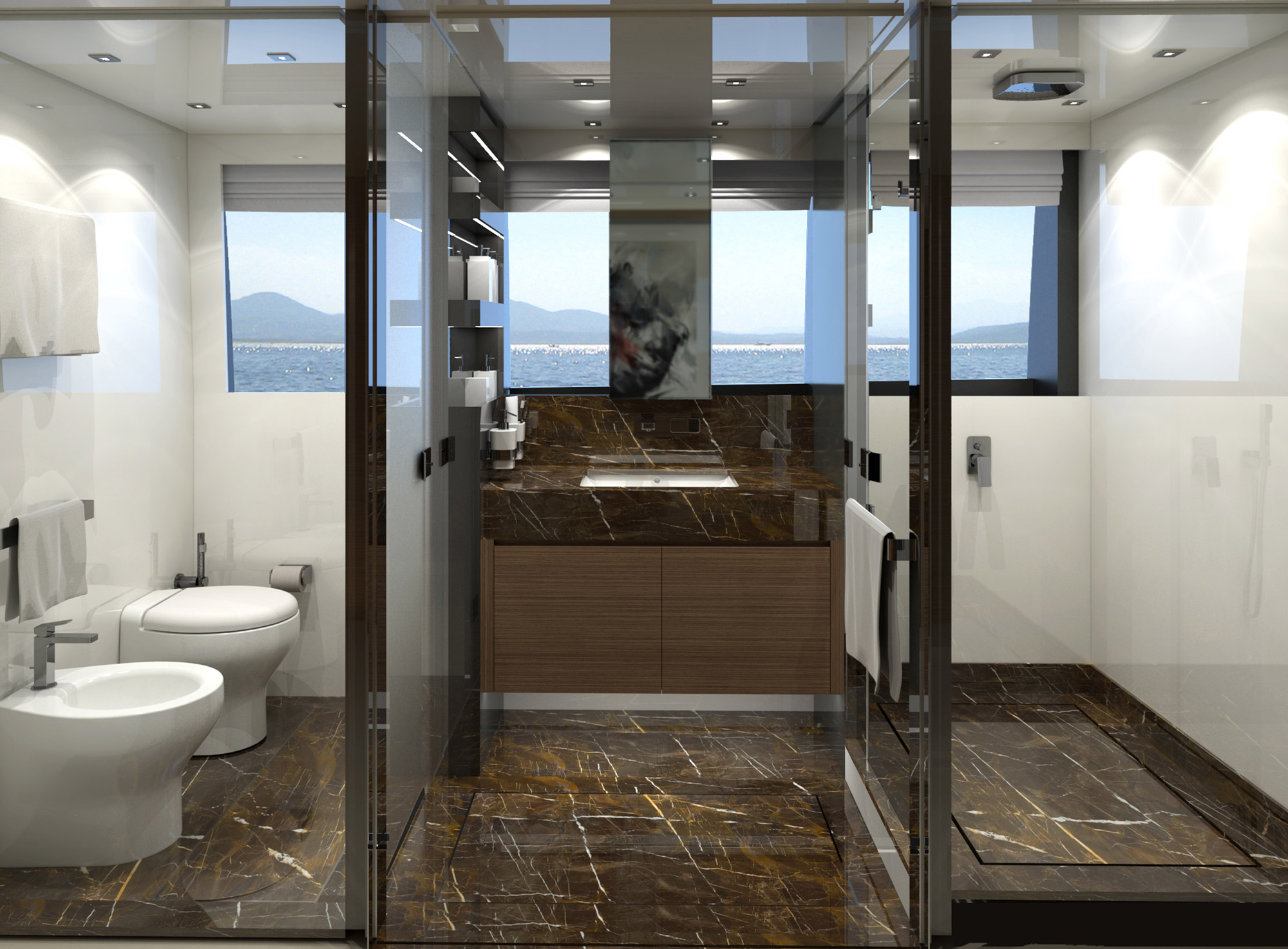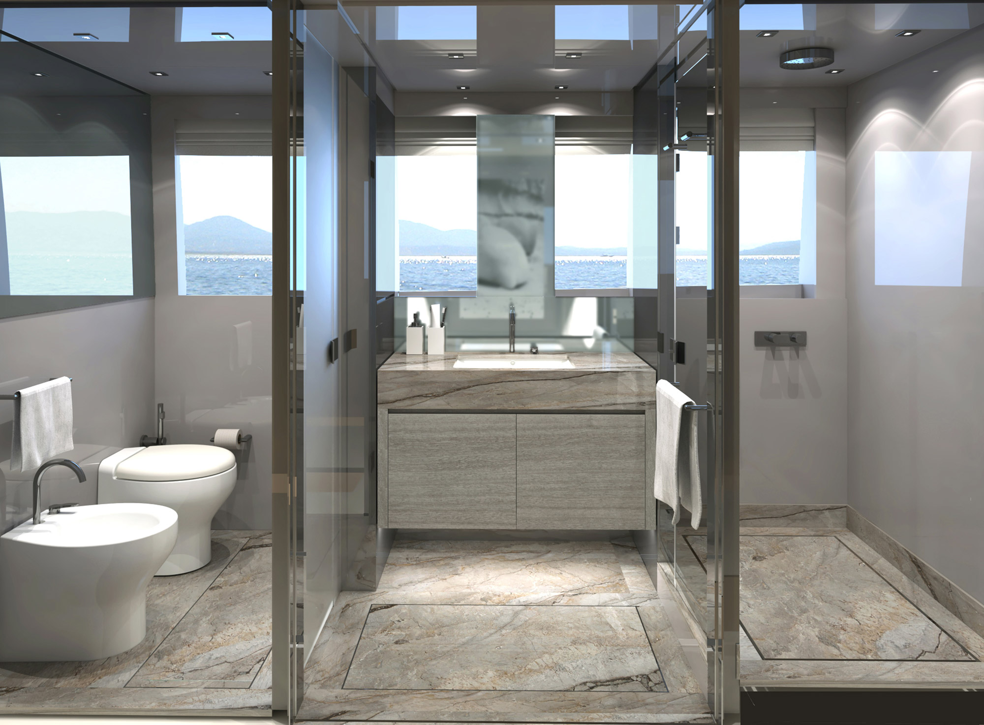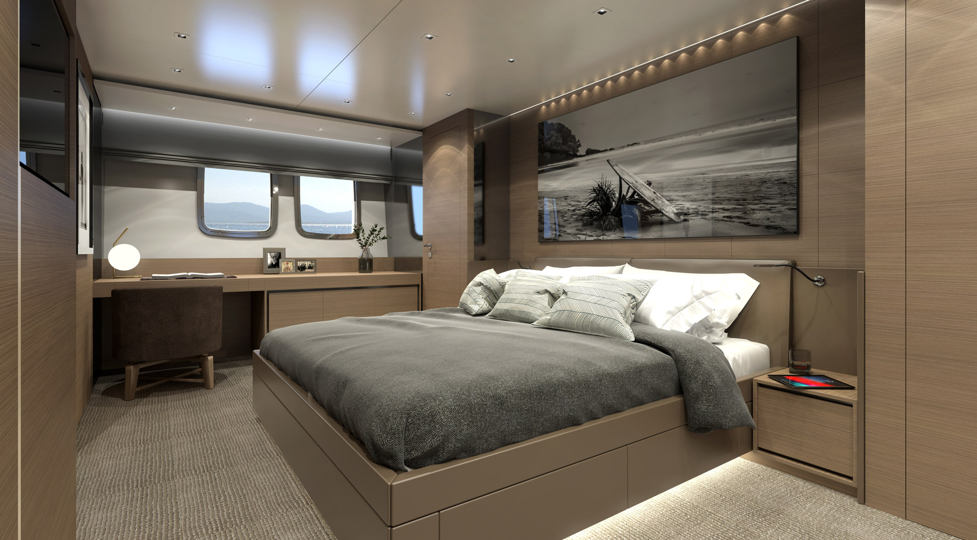 By elevating the port-side deck, the SL96A achieves a more expansive and versatile interior, where natural light floods the living spaces through perfectly positioned floor-to-ceiling windows.