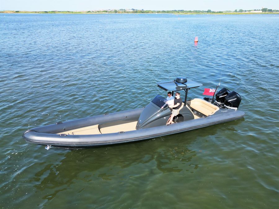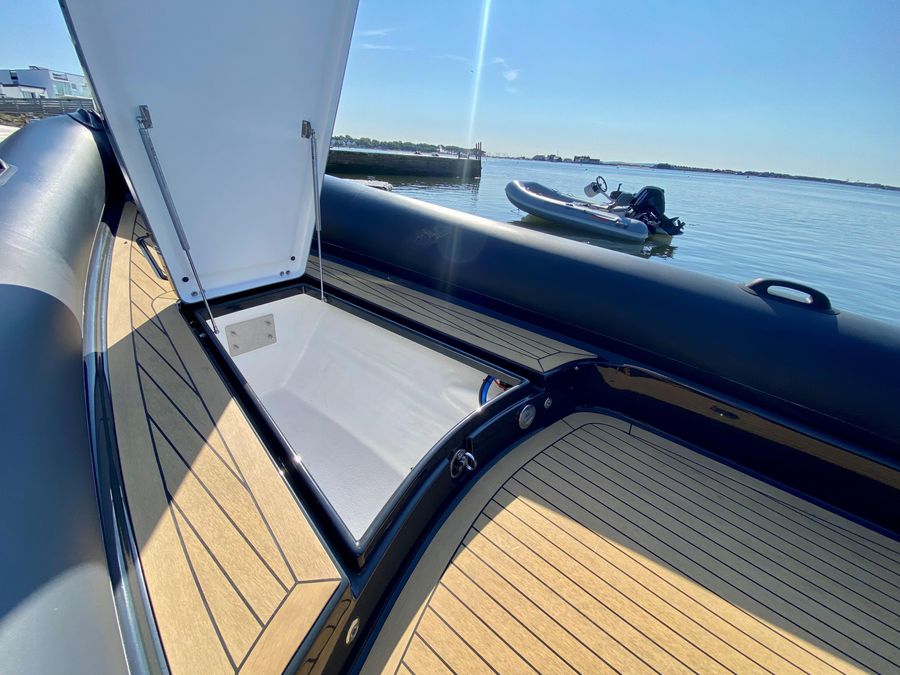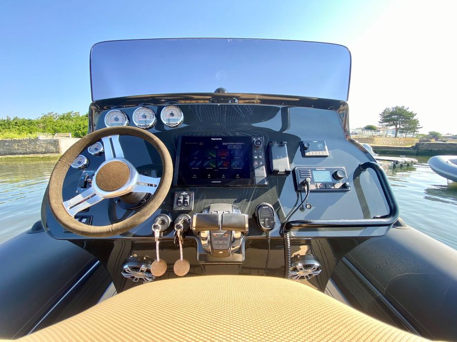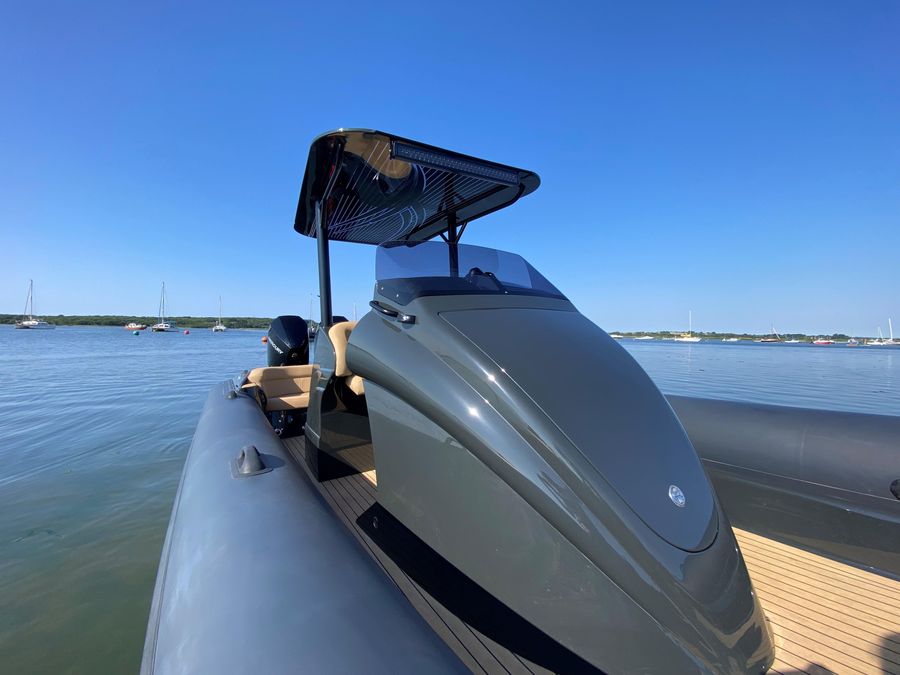 Scorpion Serket console including: Coloured stripe, large facing locker with stainless Steel locking catch. Grab handles both sides Helm to Port as standard and L shaped handle for co-pilot. Acrylic windscreen ( clear or tinted )