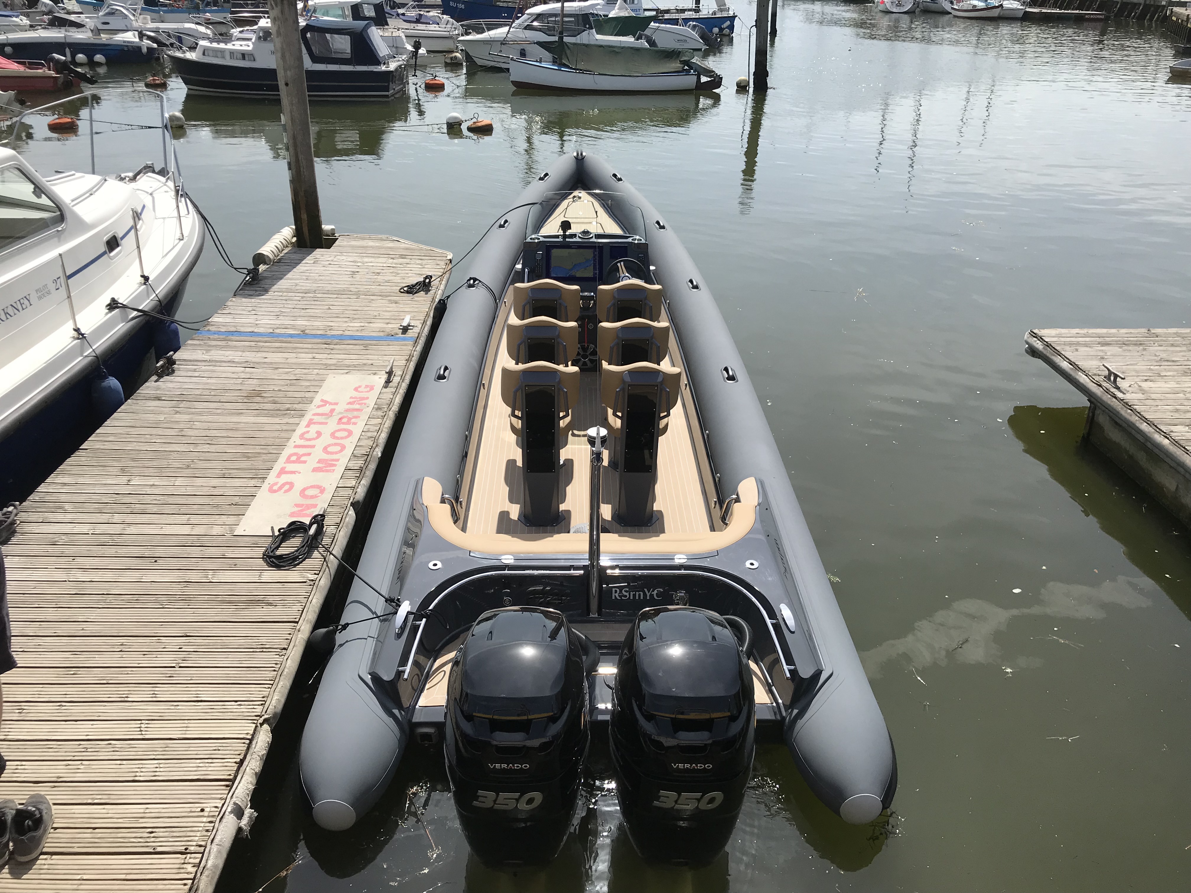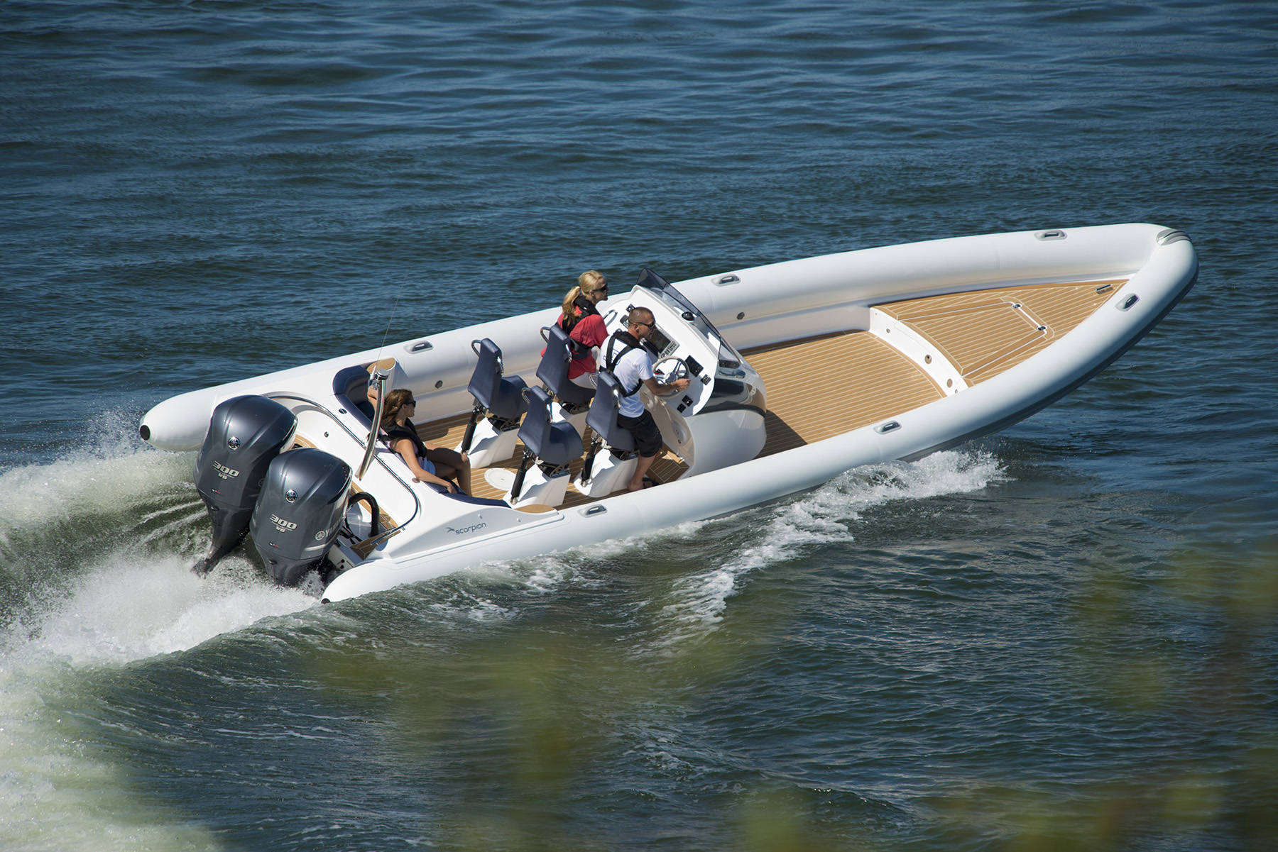 UV & petroleum resistant Hypalon Tubes with 7 separate chambers, teardrop rubbing strake, grab ropes & sculptured bow fairlead