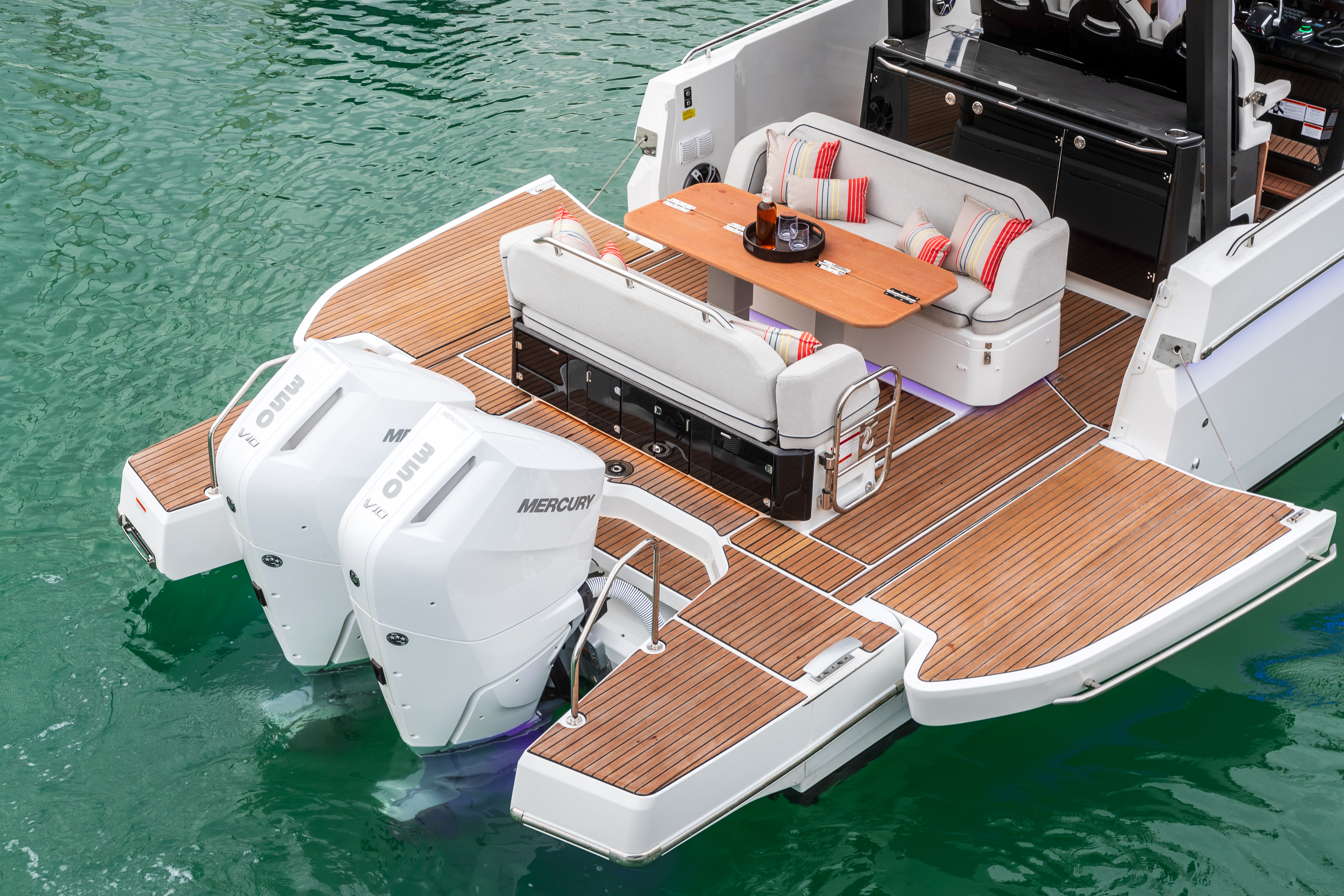 Why I love this boat!…. The Gran Turismo 35 is all about enjoying a perfect day on the water. Head quickly to your favourite spot, drop anchor, step out onto the expansive side decks, and fire up the BBQ — then sit back and enjoy the day. We have made the decision to go with the head turning Alpine edition, and of course, the 400 HP engines. She’s just arrived in the UK and we are unwrapping it. Why not make an appointment with me to be one of the first to see her?