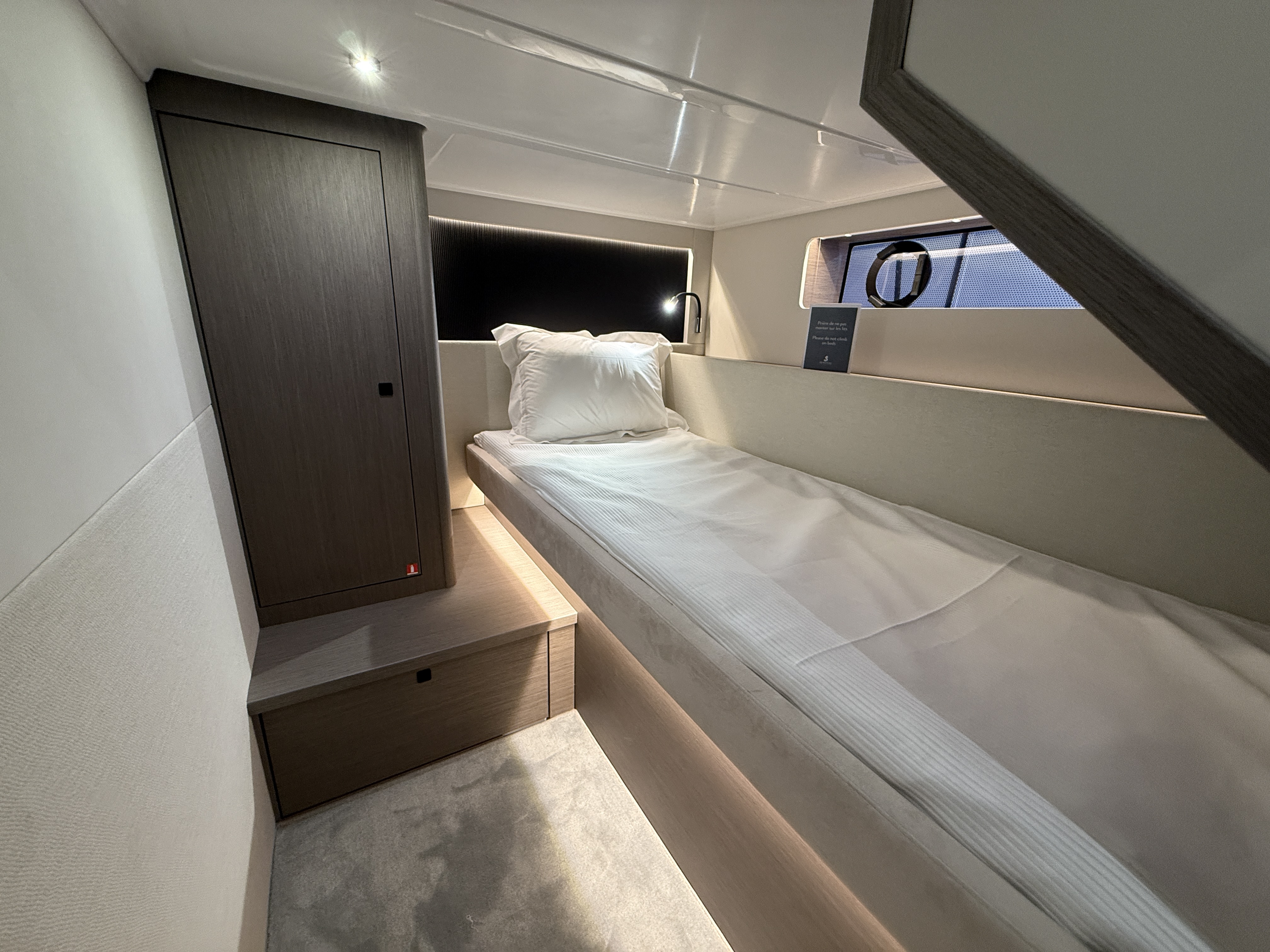 Below deck, the full-beam owner’s suite feels like a peaceful retreat. Sunlight fills the space, storage is generous, and the ensuite features a refined design with a separate shower. The VIP and third cabins offer comfortable, flexible accommodation for family or guests, finished with thoughtful details that make everyone feel at home.