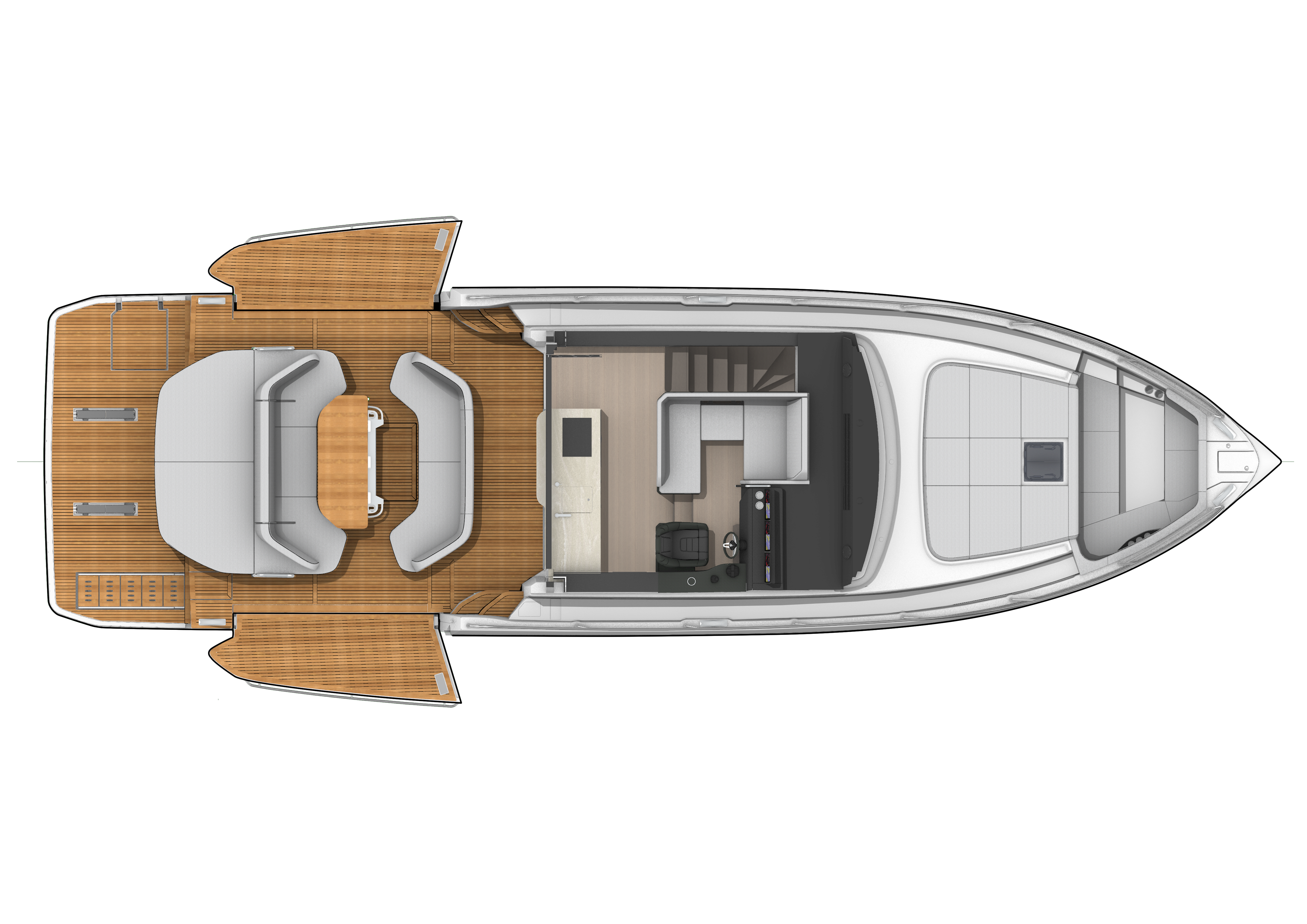 For anyone who loves spending time outdoors, the GT50 is a dream. The spacious cockpit saloon invites you to settle in and relax, while the wide terraces open directly to the sea, bringing the water closer than ever. The bathing platform transforms effortlessly into a swim deck, sun lounge, or tender launch, and a pull-out barbecue at the water’s edge makes entertaining feel natural and easy. Whether it’s a relaxed lunch with friends or cocktails as the sun begins to set, the GT50 sets the perfect scene.