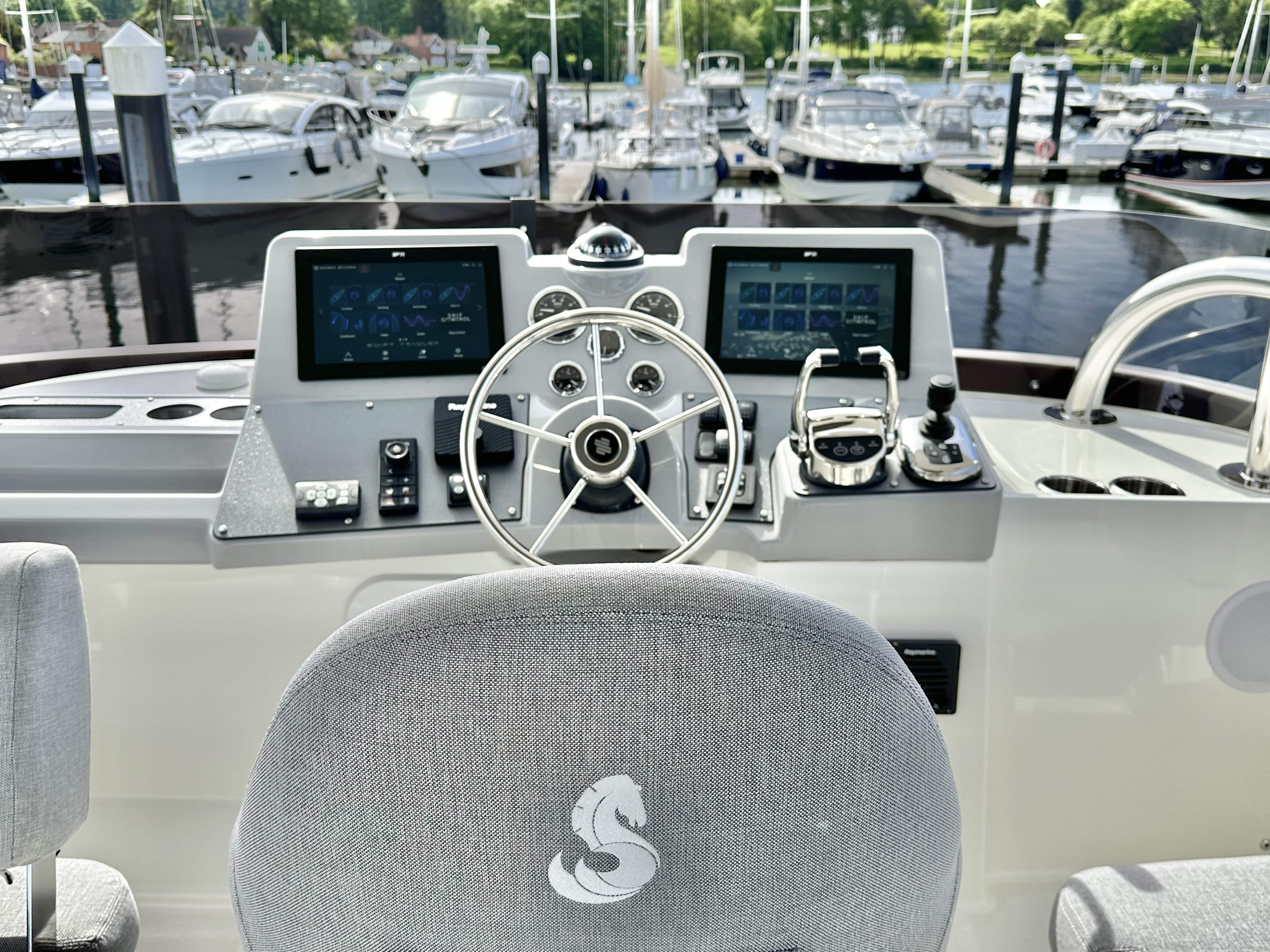 This particular example is very highly spec'd including hi-lo bathing platform, hard top, air-conditioning, generator and comprehensive electronics suite. Full new boat warranties applicable. Competitive part-exchange and finance options are available. Be ready for your next adventures in 2026!