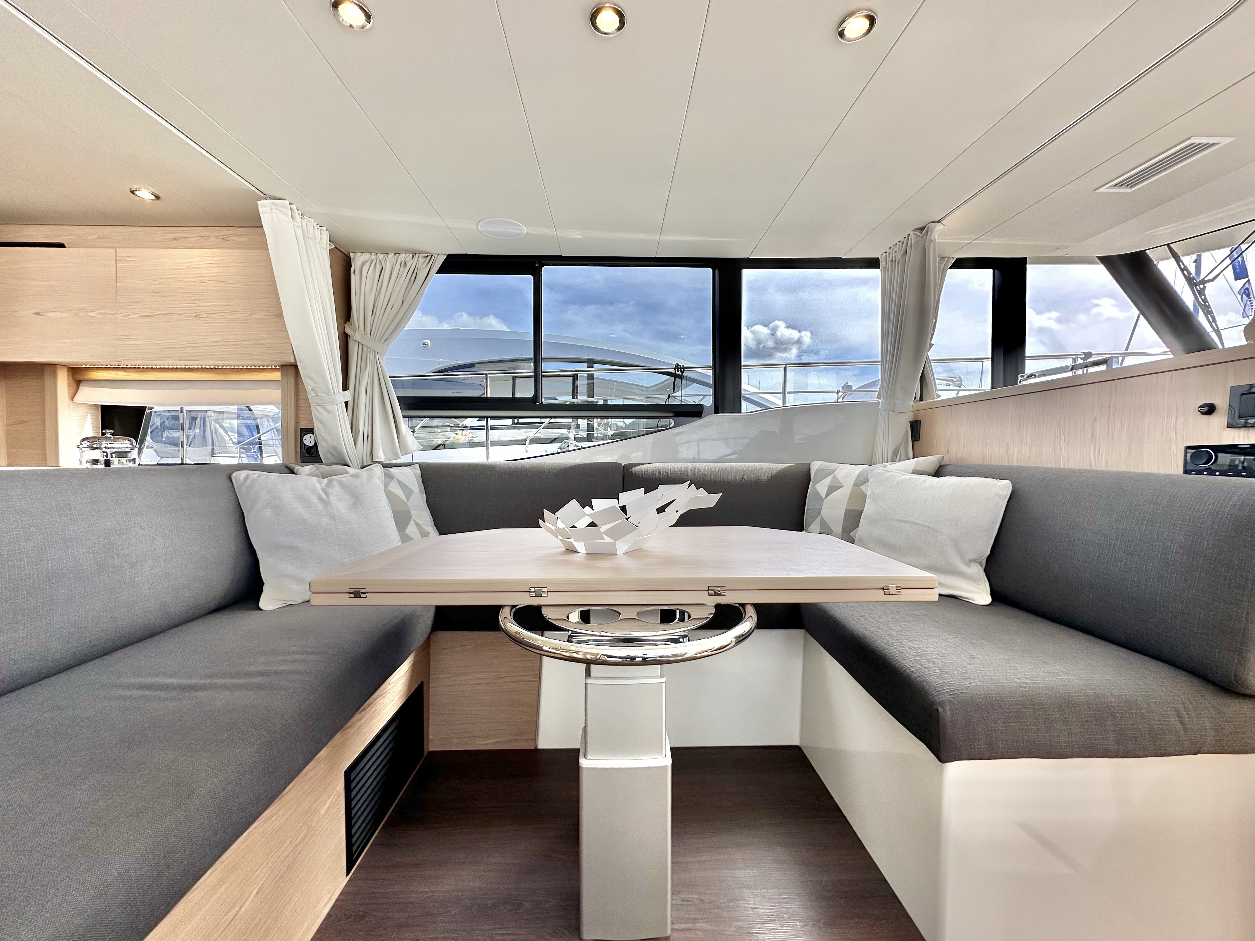 Raised U-shaped dinette settee convertible to double berth (2,4 x 1,32m / 7’10’’ x 4’4’’)