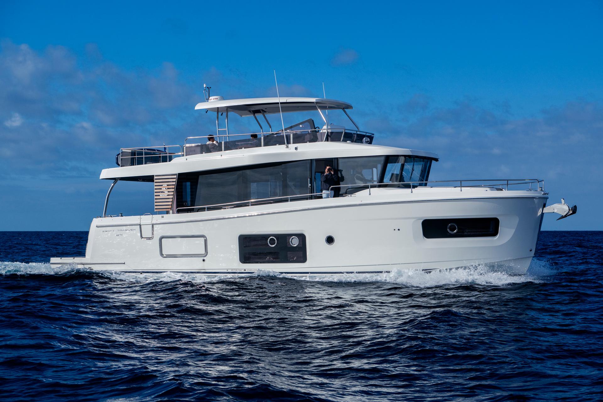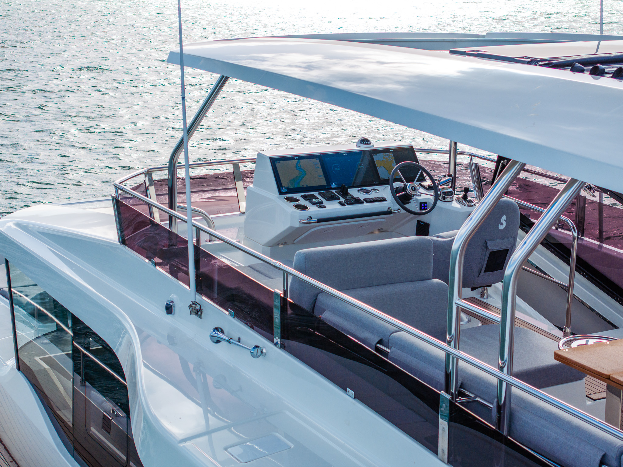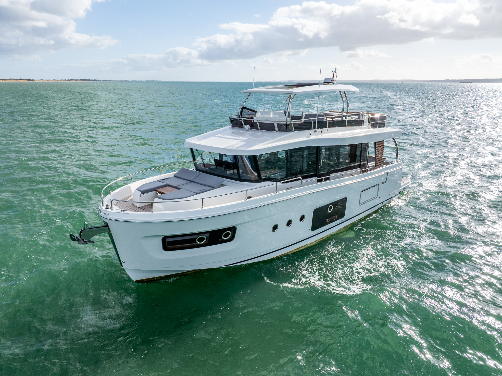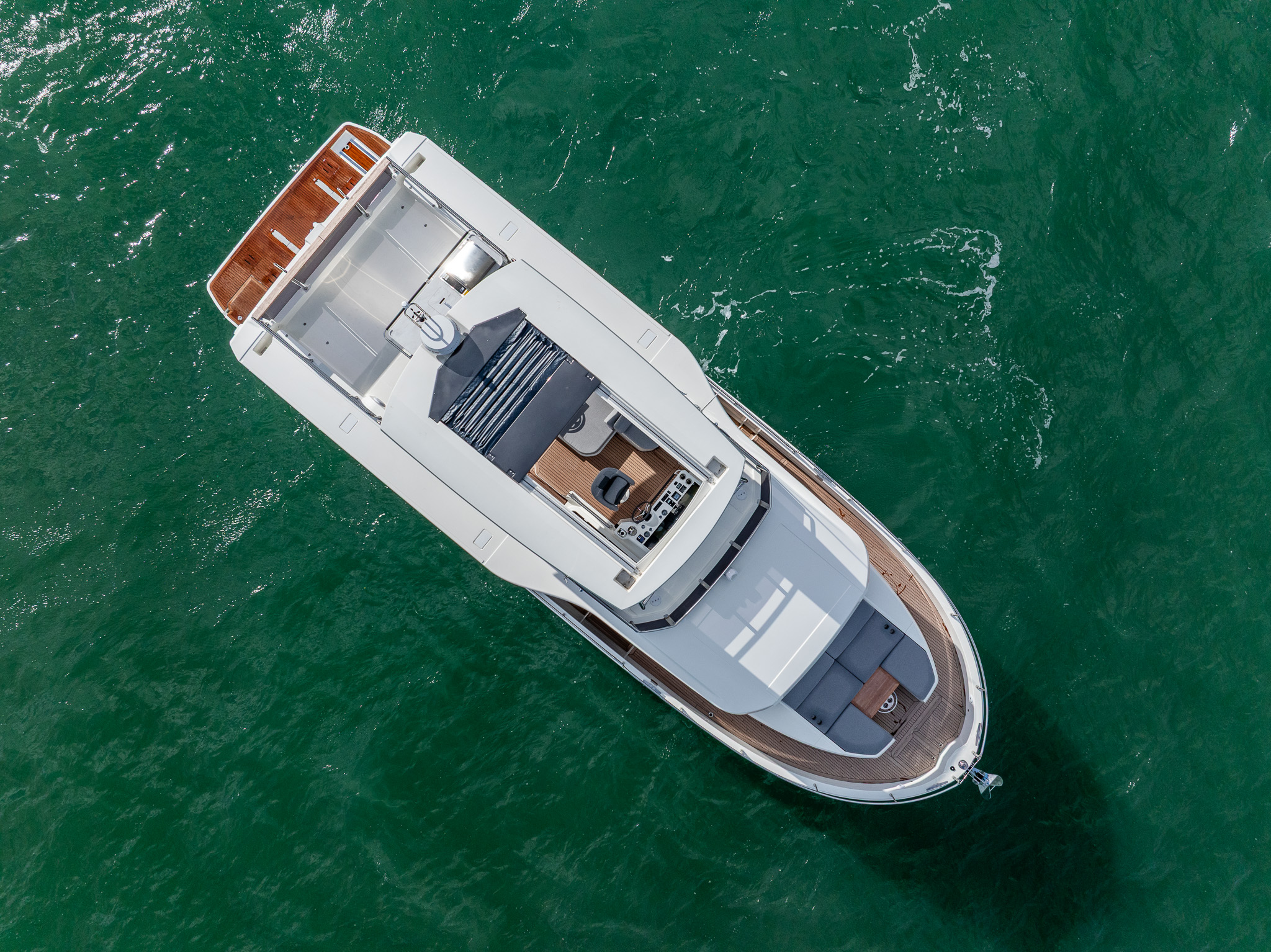 A stylish profile that catches the eye matched with clever design features. Designed to provide a boat that is both comfortable and efficient, a wider beam hull provides a softer ride, reduces fuel consumption and is quieter when at anchor. Achieving over 800 nautical miles of range at 9 knots.