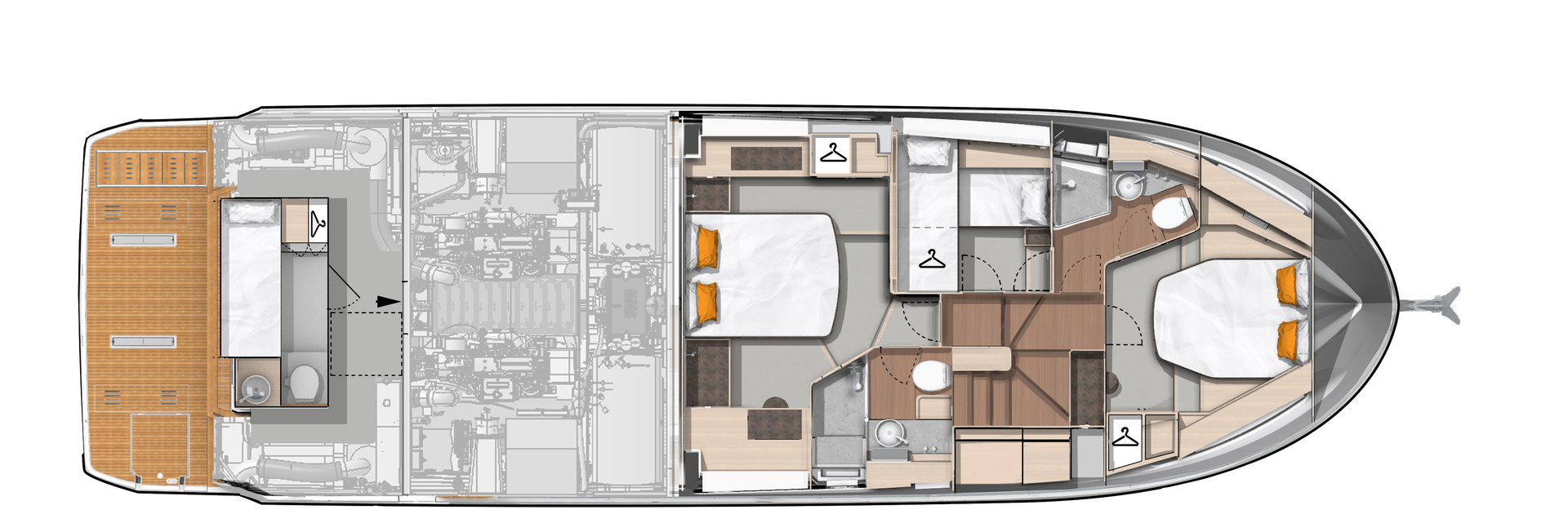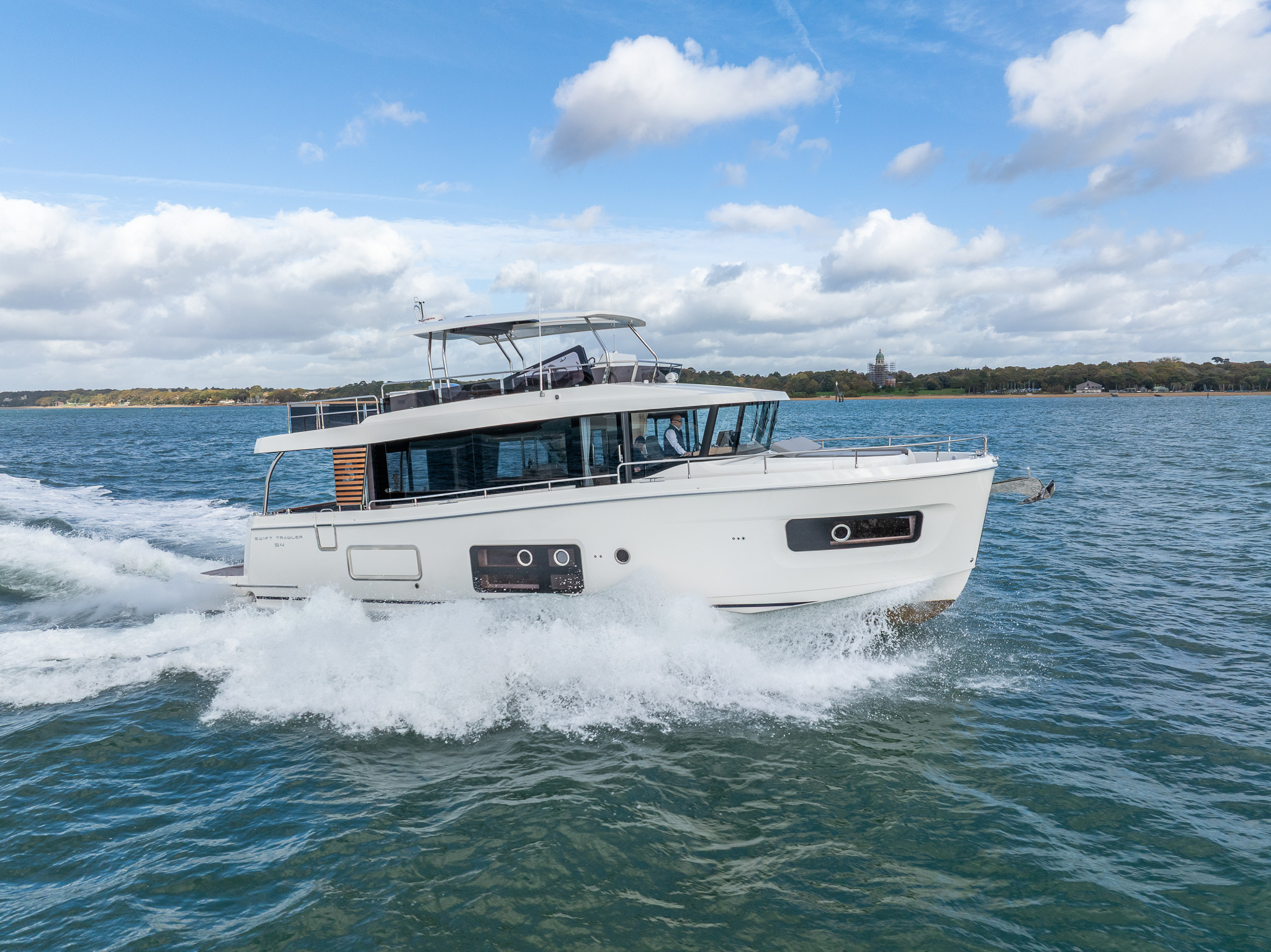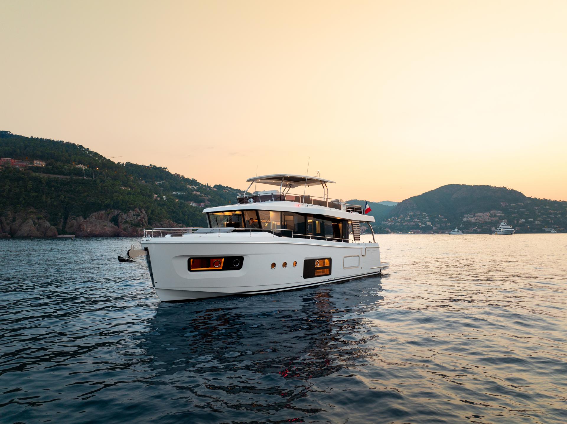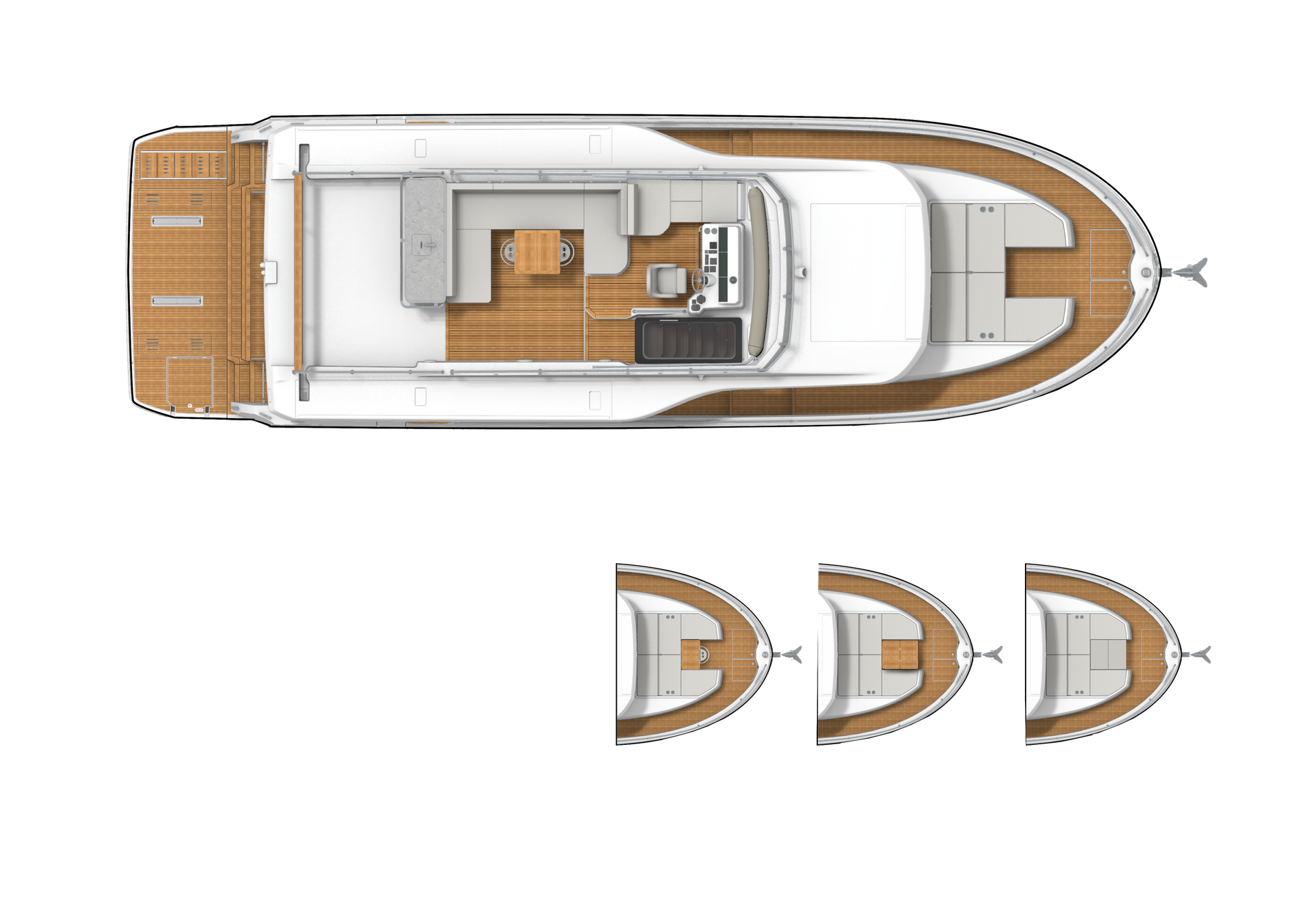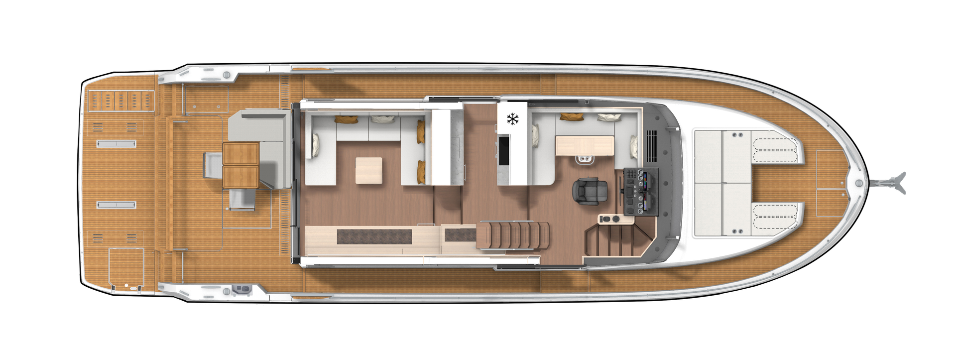 A stylish profile that catches the eye matched with clever design features. Designed to provide a boat that is both comfortable and efficient, a wider beam hull provides a softer ride, reduces fuel consumption and is quieter when at anchor. Achieving over 800 nautical miles of range at 9 knots.