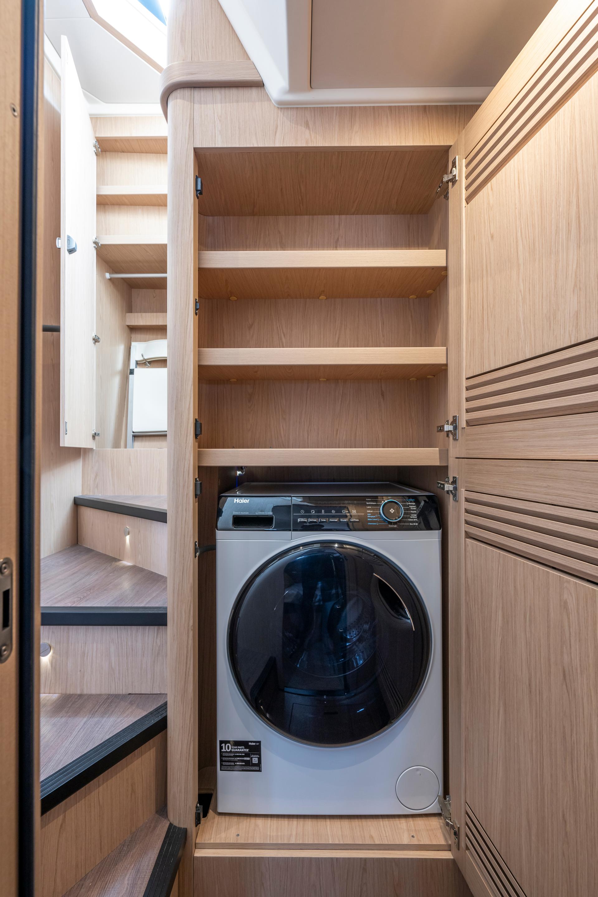 Wet bar with sink & hot/cold tap, handrail, storage and 130 litre fridge