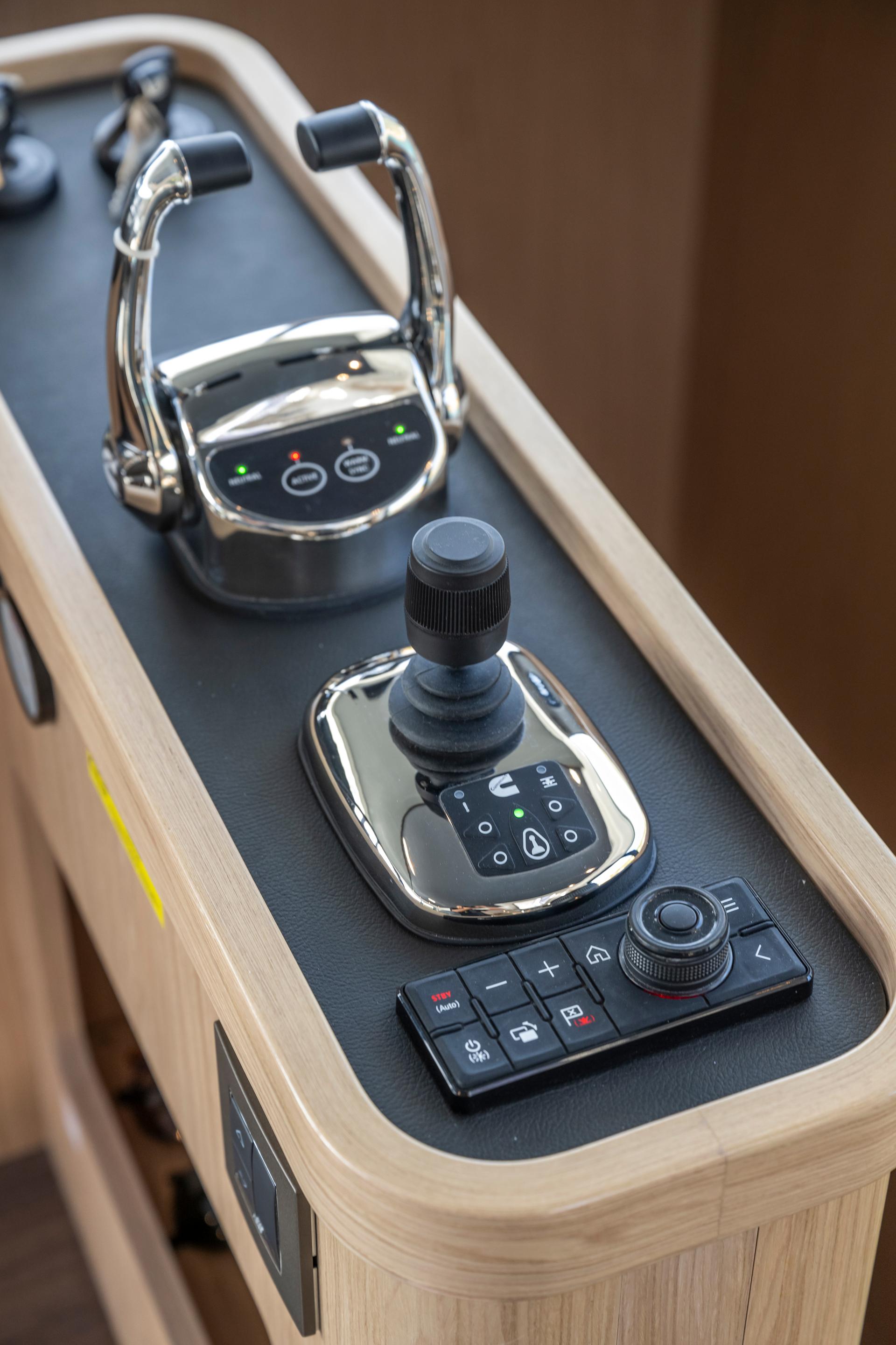 Control panel including: Electrical engine controls, Fusion control, electric windlass control, thruster and trim tabs