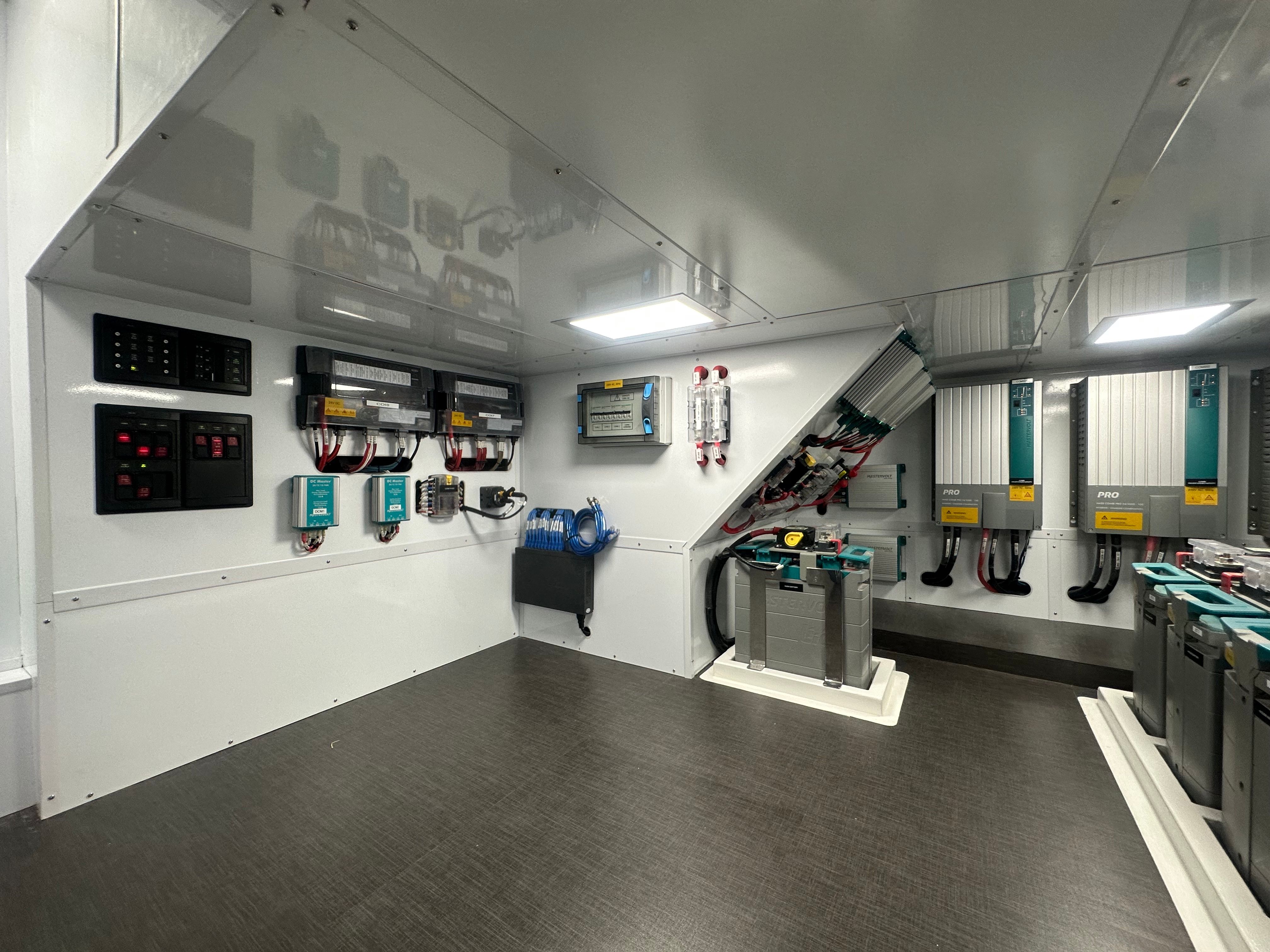 Constructed using a controlled vacuum infusion process and pressed panels of E-glass, carbon composite and Corecell for lightweight strength and rigidity.