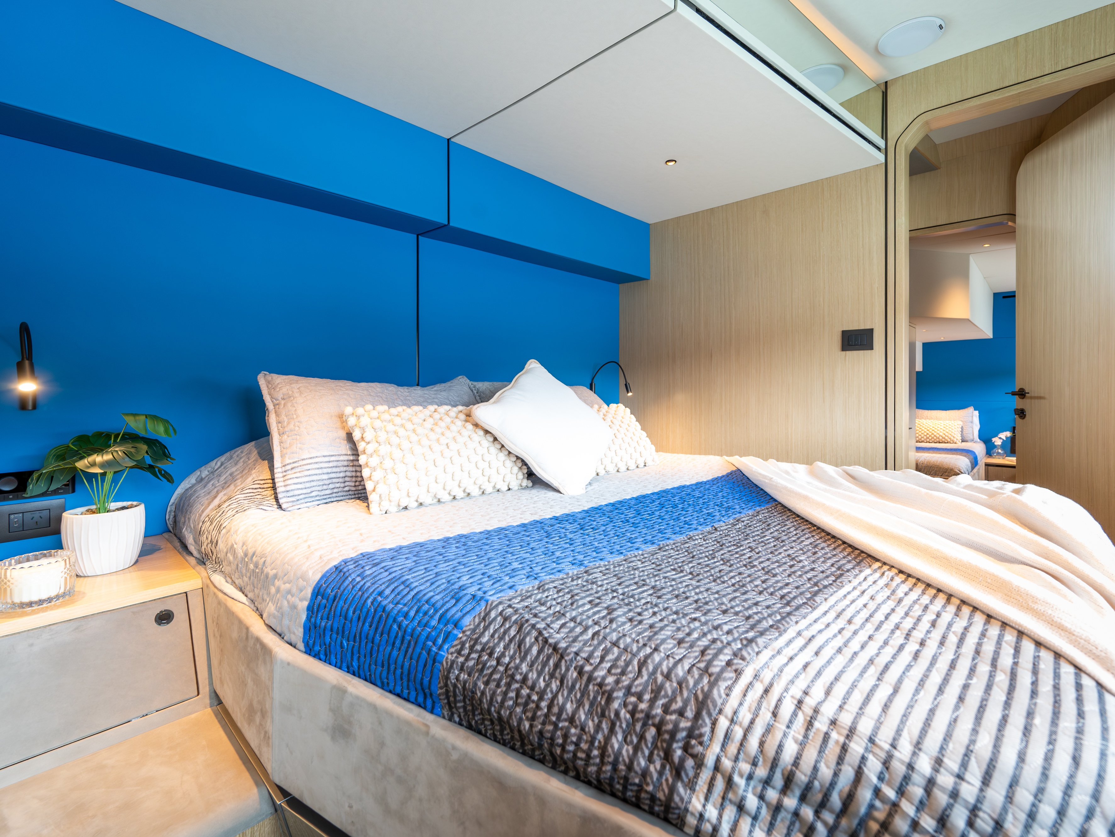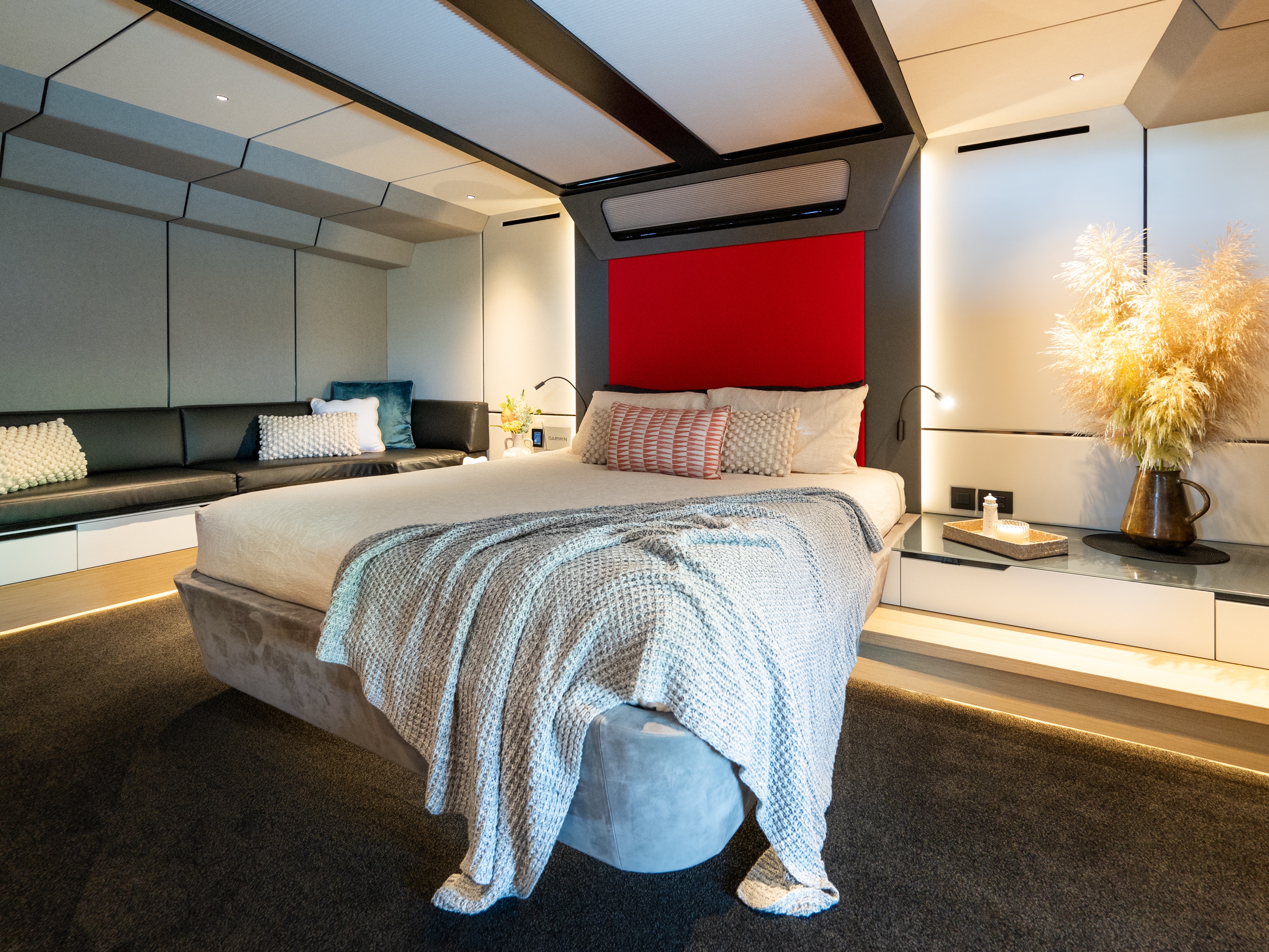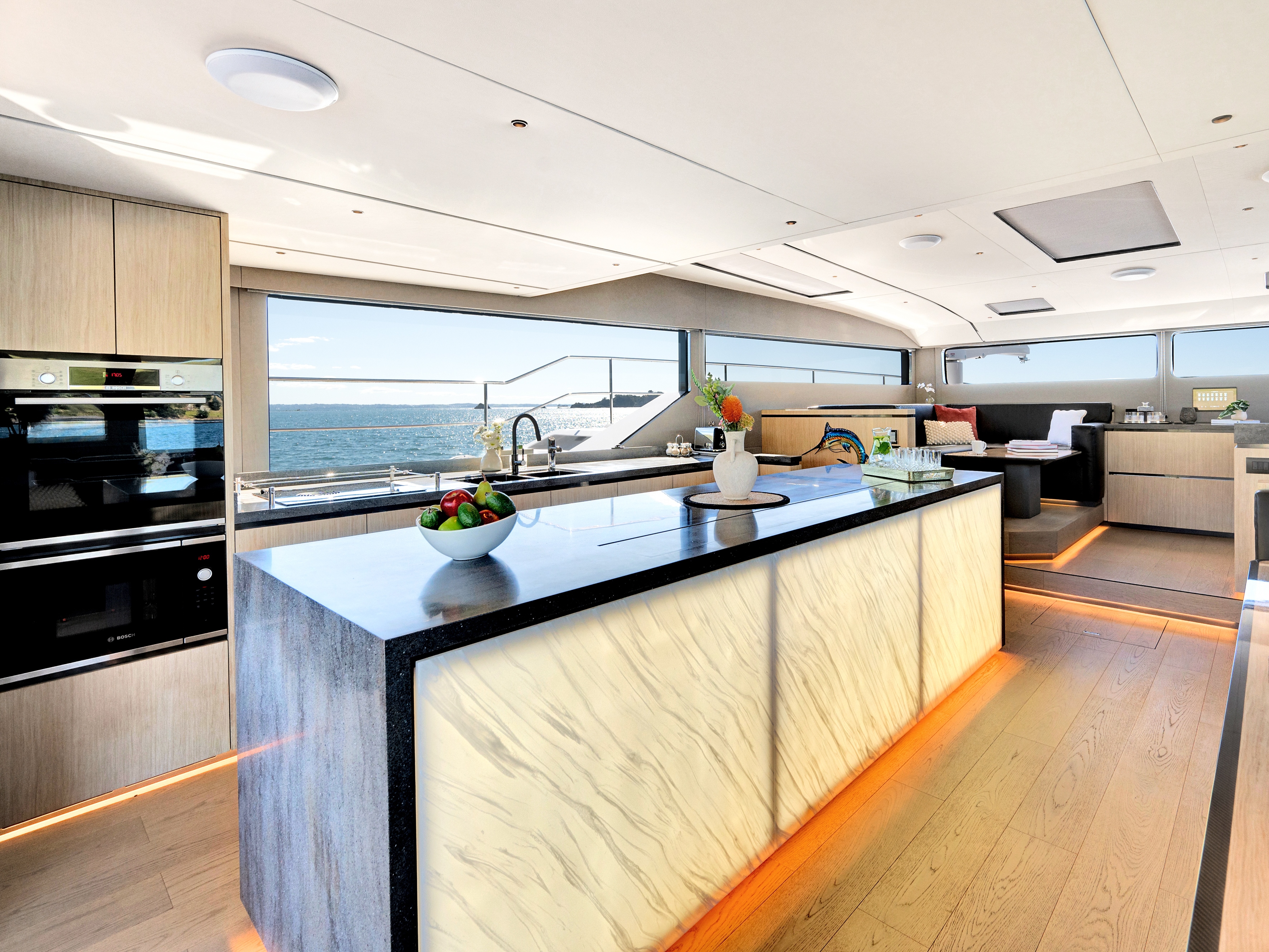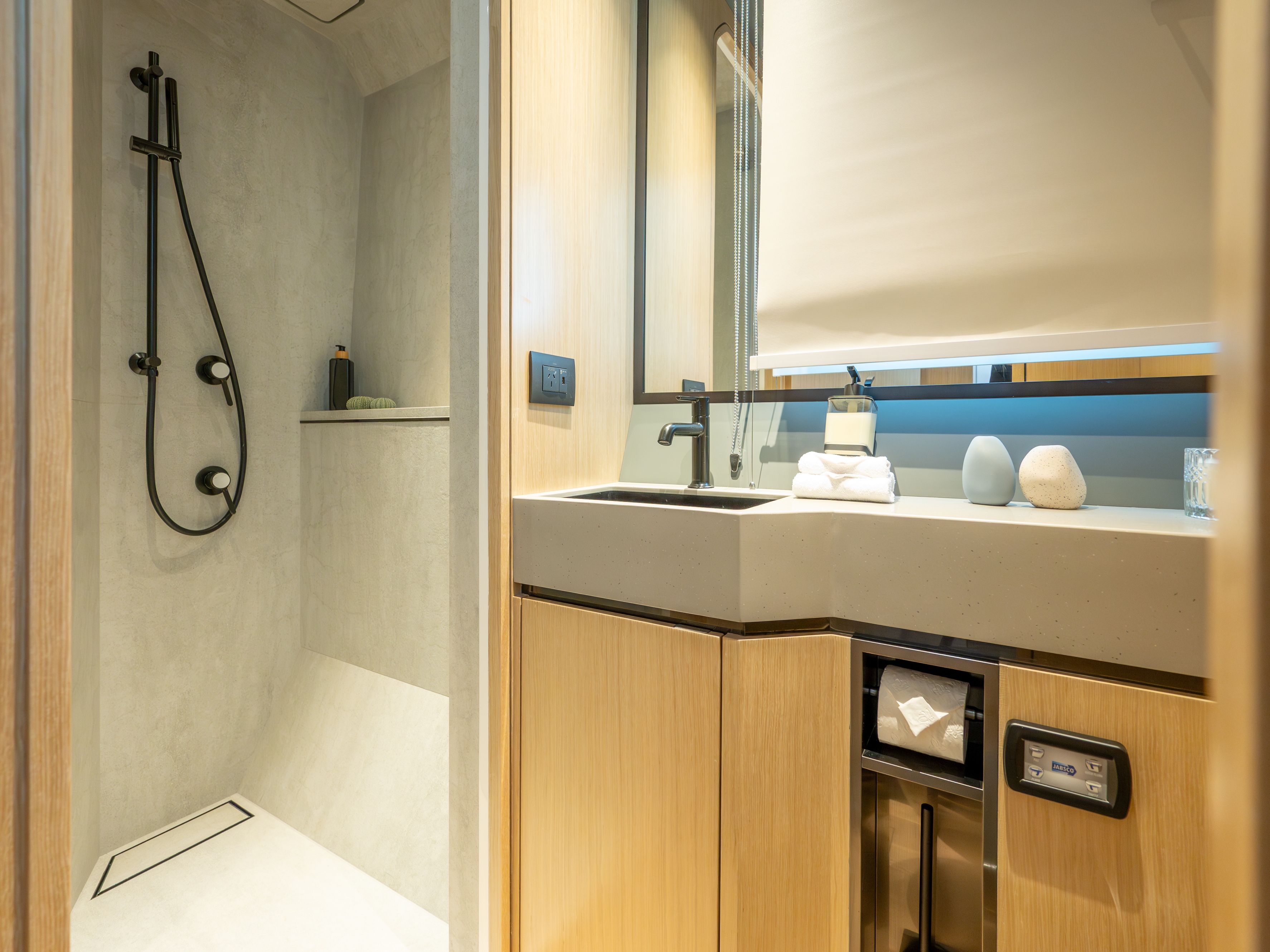 McConaghy’s carefully considered use of carbon and precise hull forms make for a particularly fuel-efficient vessel at low speeds but have extremely capable of tops speeds for fast passage making. The 'Offshore' version adds fixed foils and twin Scania 875hp or Volvo Penta IPS engines giving not just fuel efficient cruising at 20knts but the ability to achieve a top speed of 36kts and offers a range of 1,500 nautical miles making this a truly special expedition vessel. The foils can be customised depending on your cruising preferences illustrating the level and detail of build quality offered by McConaghy. The exterior design and naval architecture comes from KER Design, and echoes the profile and progressive styling that’s seen across McConaghy’s multihull series..