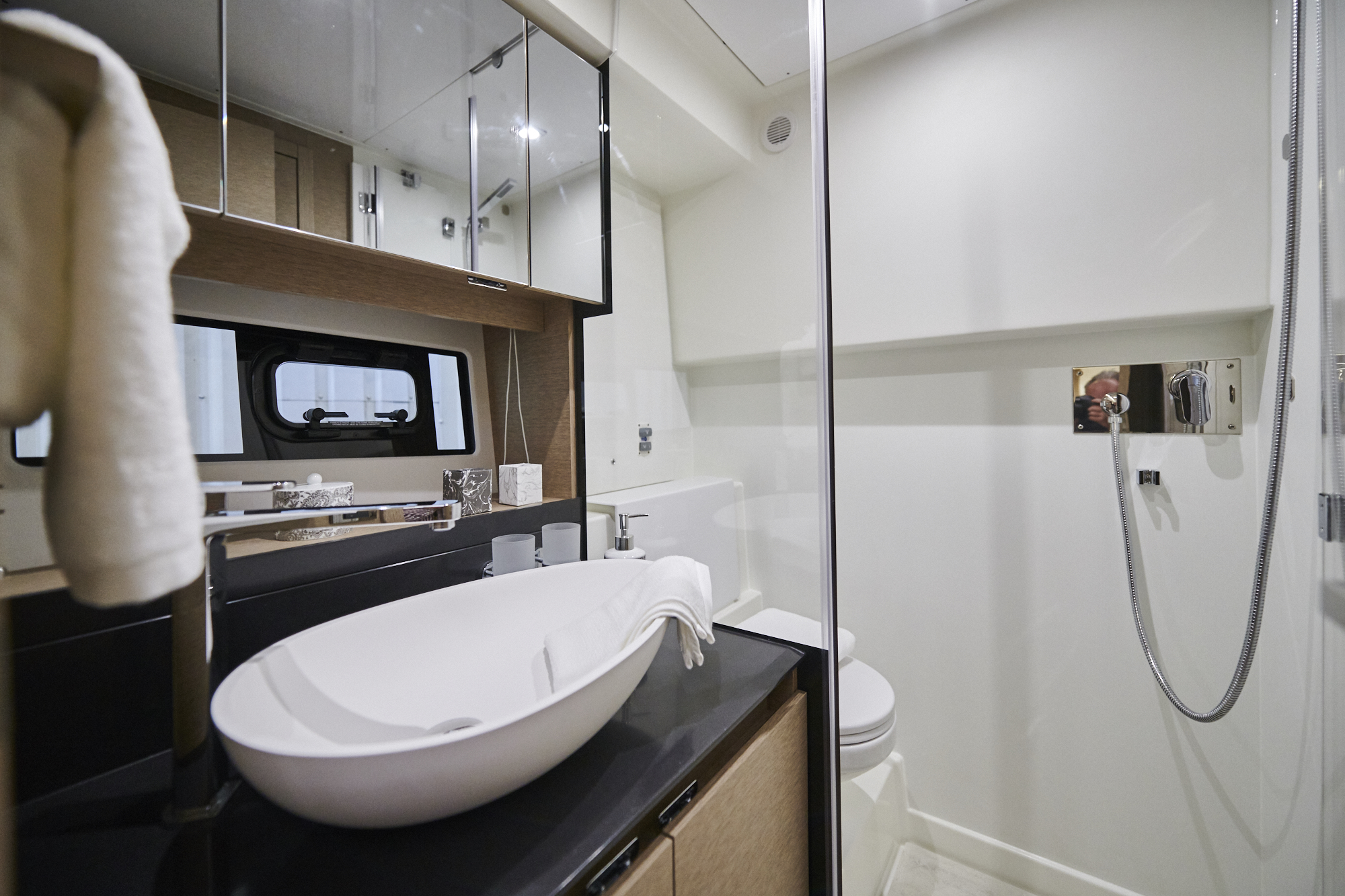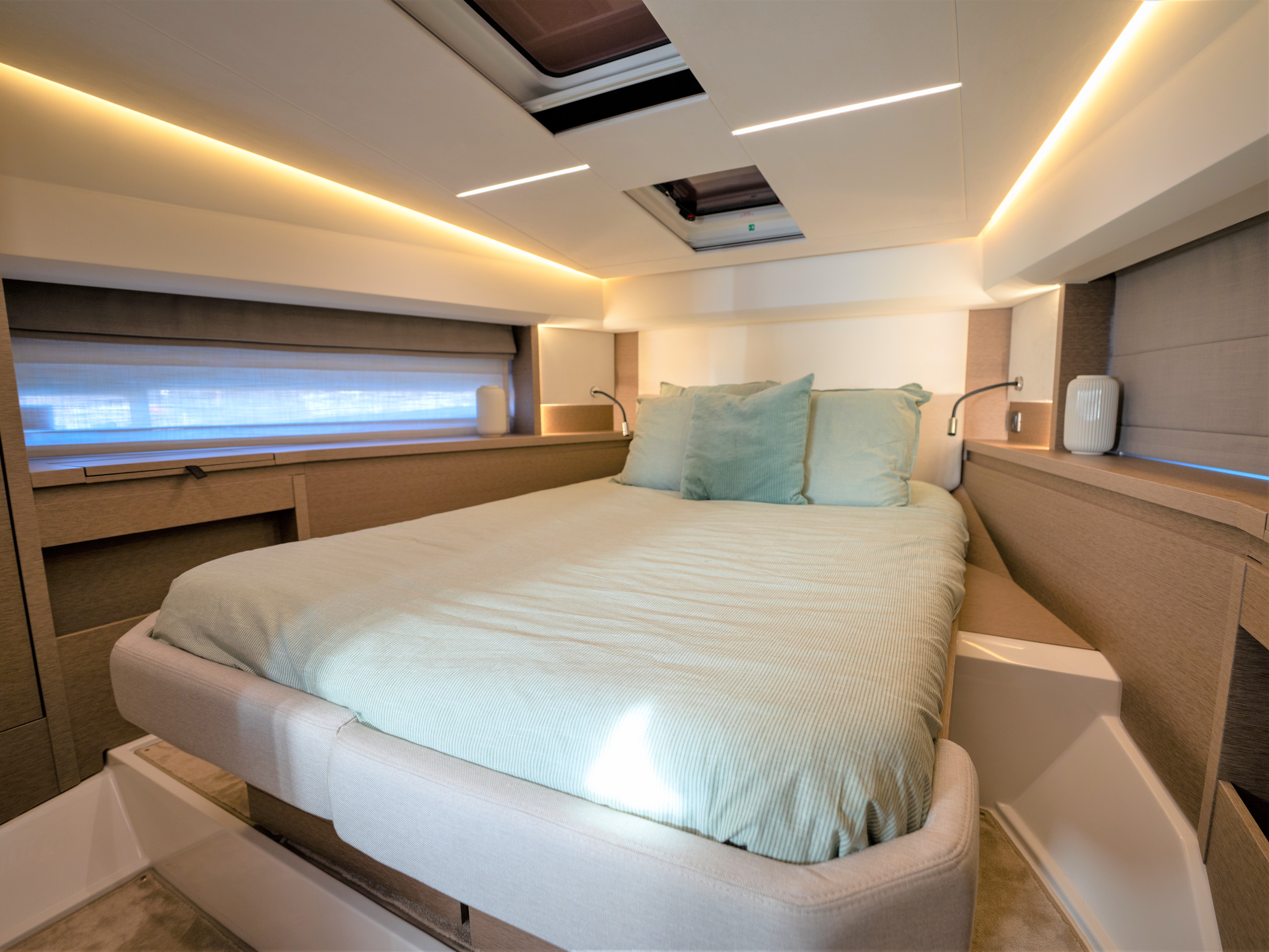 WHERE THE SEA FEELS LIKE HOME - This is the motto of Prestige and the principle belief is that the motor yachts they design and build offer elegant exteriors with beautiful interior volumes. The 460 Flybridge truly shows off both these key characteristics, effortlessly providing comfortable outdoor spaces whilst maintaining a commodious interior. The saloon offers panoramic views throughout and the aft galley makes entertaining to the cockpit or the forward seating unenviably simple. The full width master cabin and forward guest cabin provide wonderful spaces for a relaxed sleep for yourself and guests.