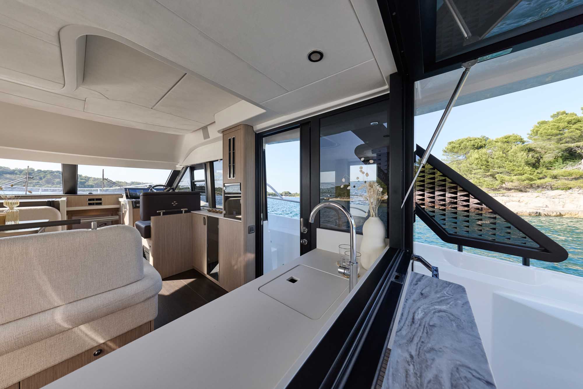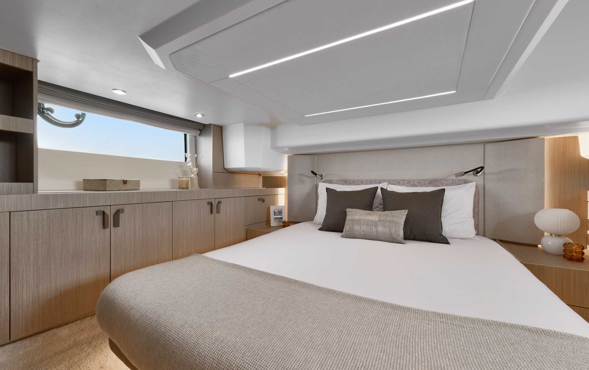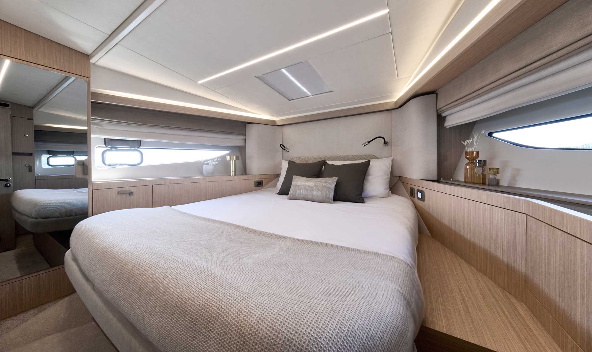 Why do I like the Prestige F4.3? The layout is thoughtfully designed for spending time with friends and family. The galley’s serving hatch to the cockpit and easy side deck access are smart, practical touches — and I would love to entertain family and friends next to the BBQ on the swim platform. The full-beam midship owner’s cabin is a real highlight, offering excellent space and comfort, while the joystick control takes the stress out of docking. Take a look at the flybridge design — it’s well executed and adds another great space to enjoy on board. And finally, don’t overlook the Prestige warranties — they’re among the best you’ll find.
