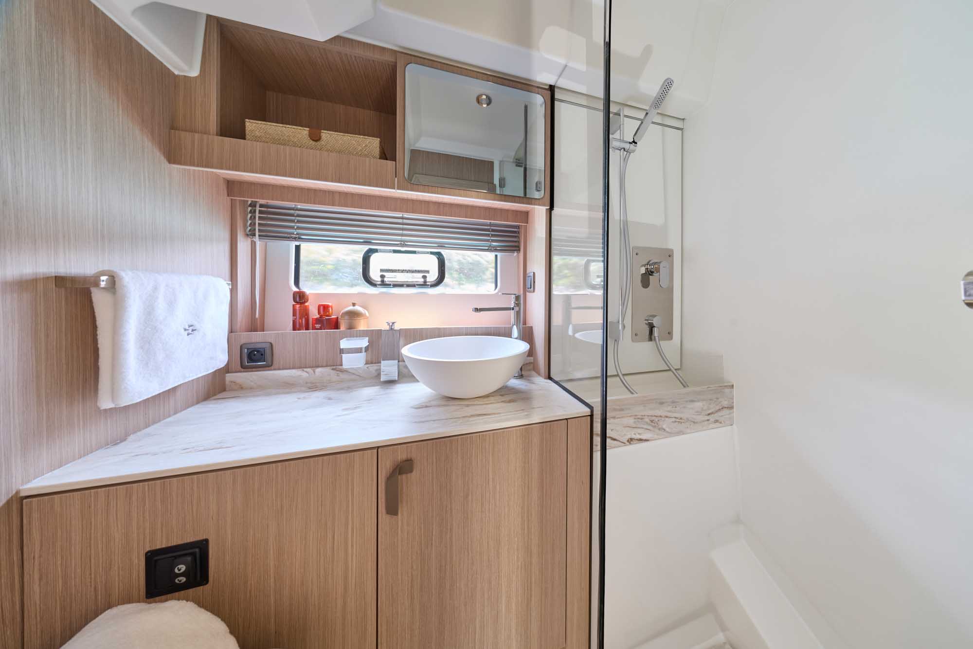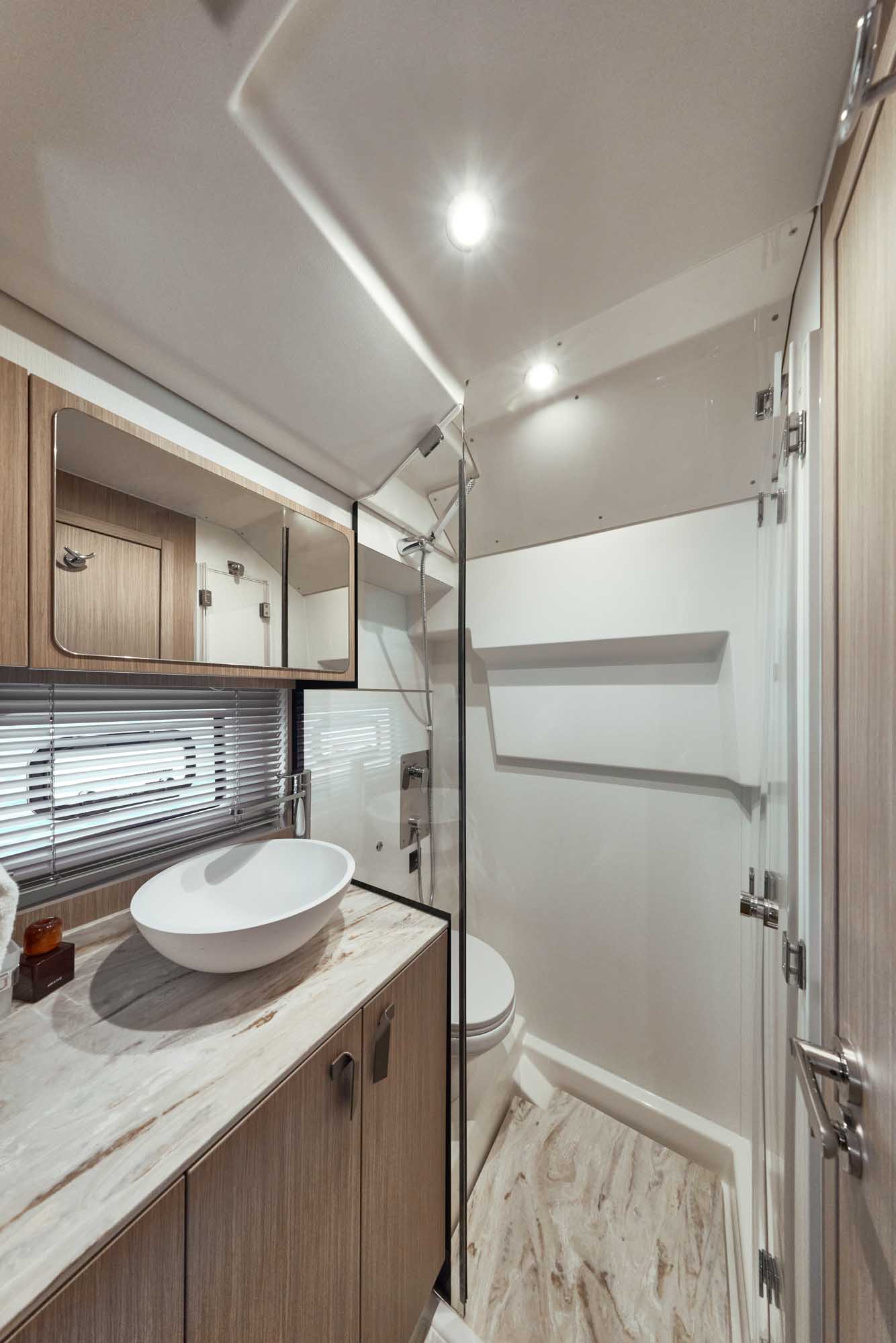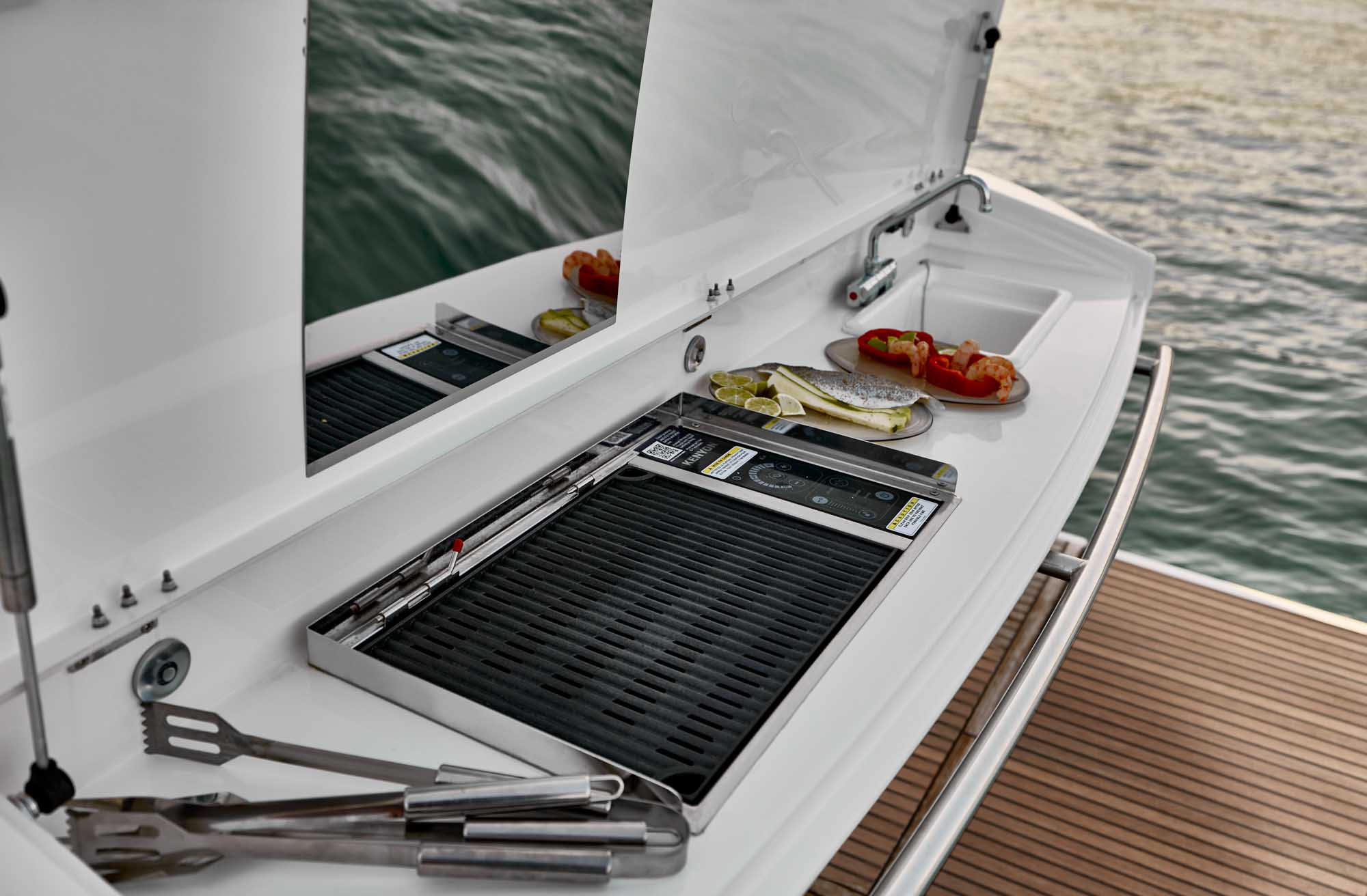 Why do I like the Prestige F4.3? The layout is thoughtfully designed for spending time with friends and family. The galley’s serving hatch to the cockpit and easy side deck access are smart, practical touches — and I would love to entertain family and friends next to the BBQ on the swim platform. The full-beam midship owner’s cabin is a real highlight, offering excellent space and comfort, while the joystick control takes the stress out of docking. Take a look at the flybridge design — it’s well executed and adds another great space to enjoy on board. And finally, don’t overlook the Prestige warranties — they’re among the best you’ll find.