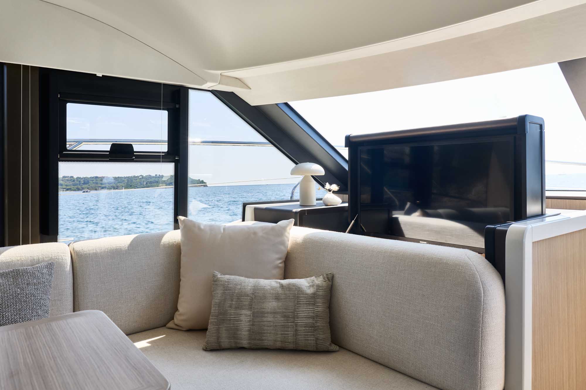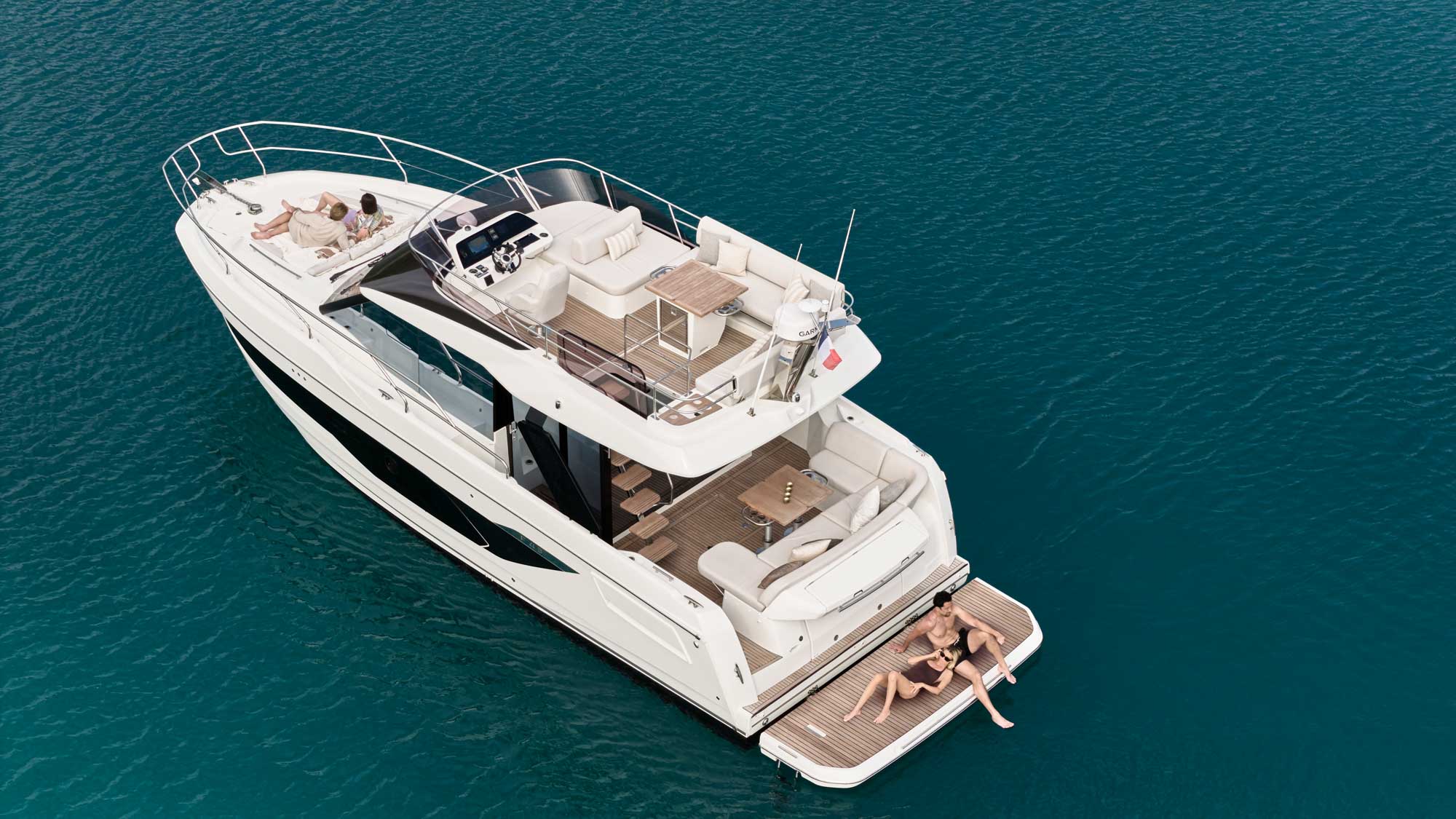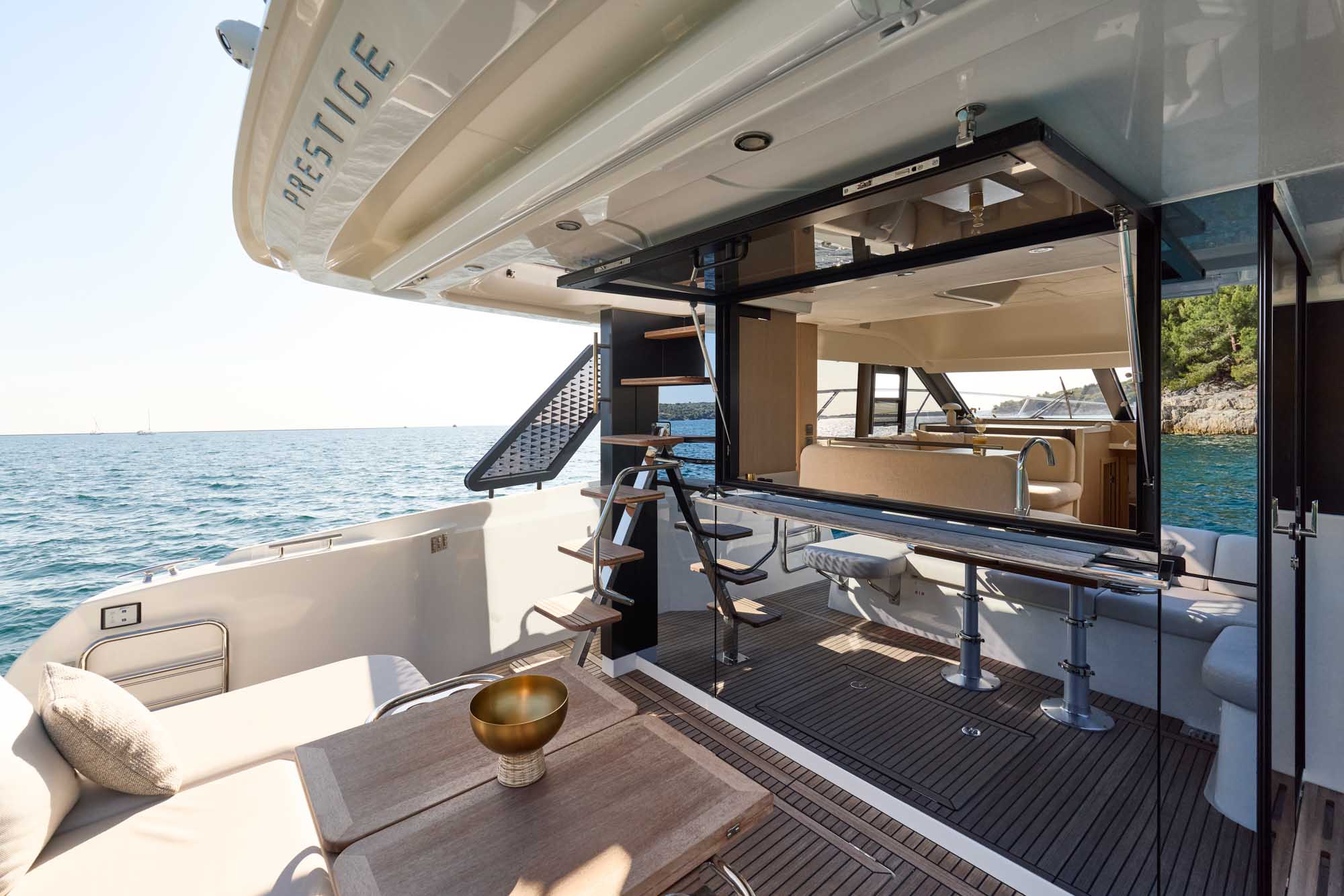 A fresh arrival in the realm of high-end yachting, the PRESTIGE F4.3 reveals expansive living spaces and elevates every shared moment with a distinctive touch of elegance.