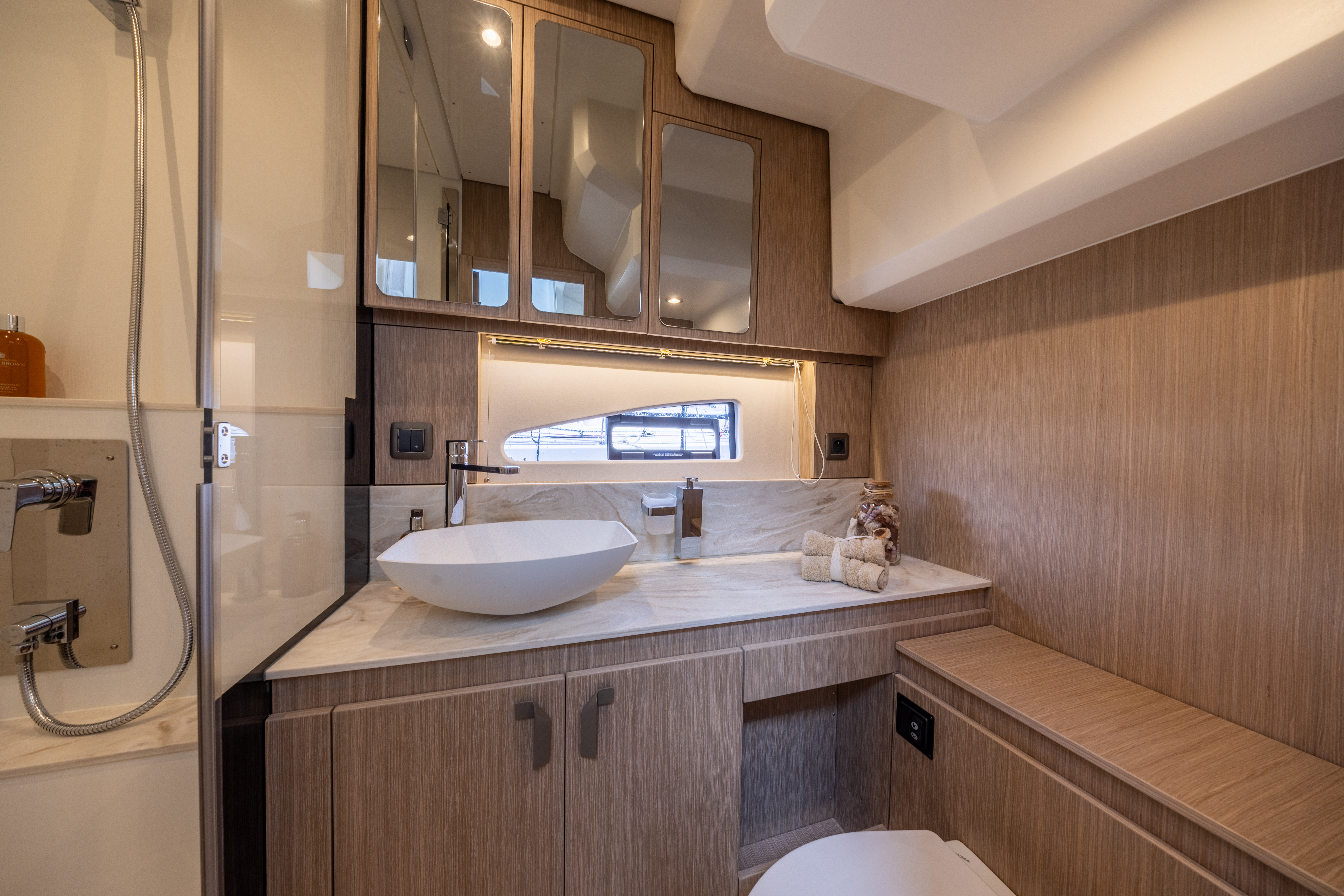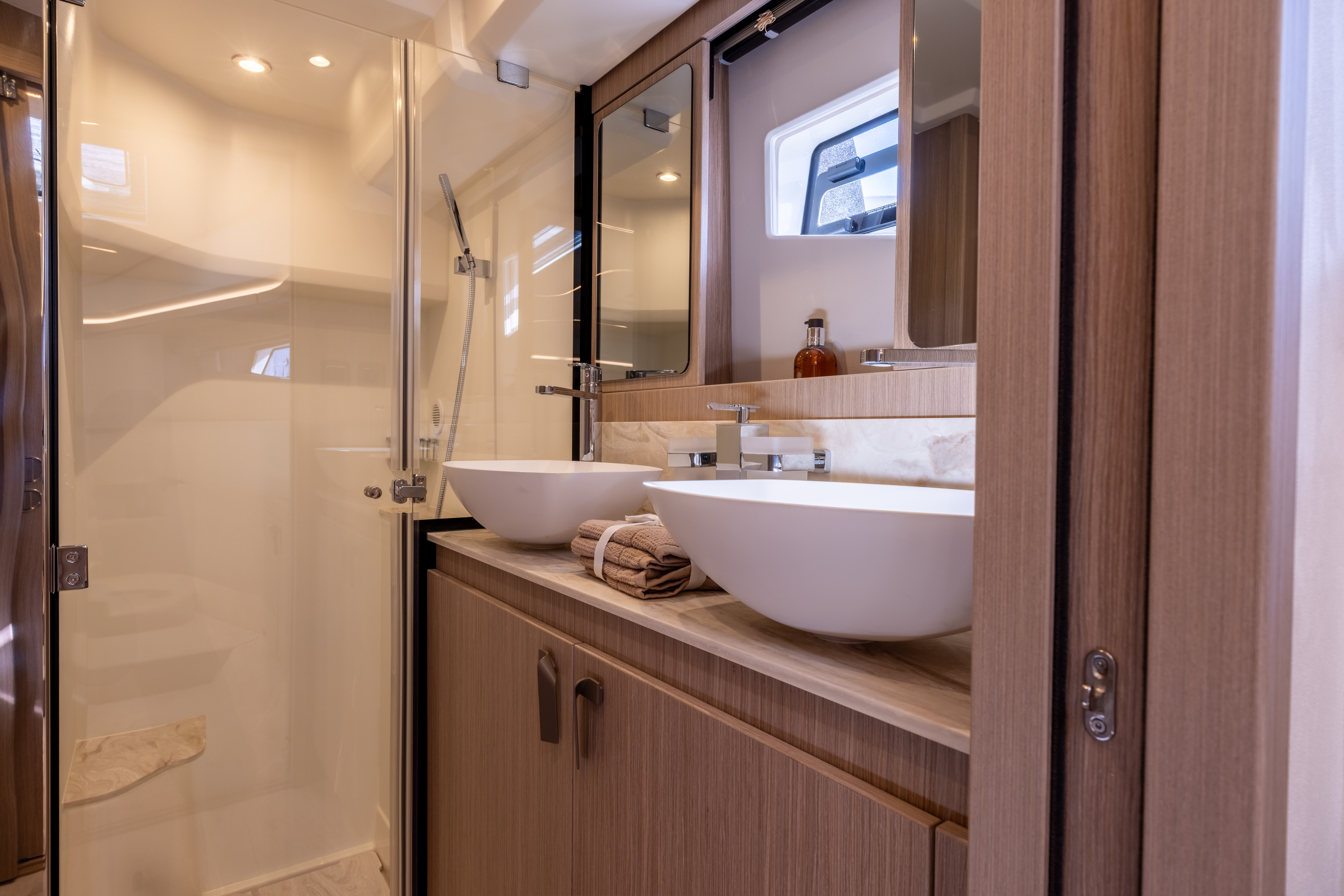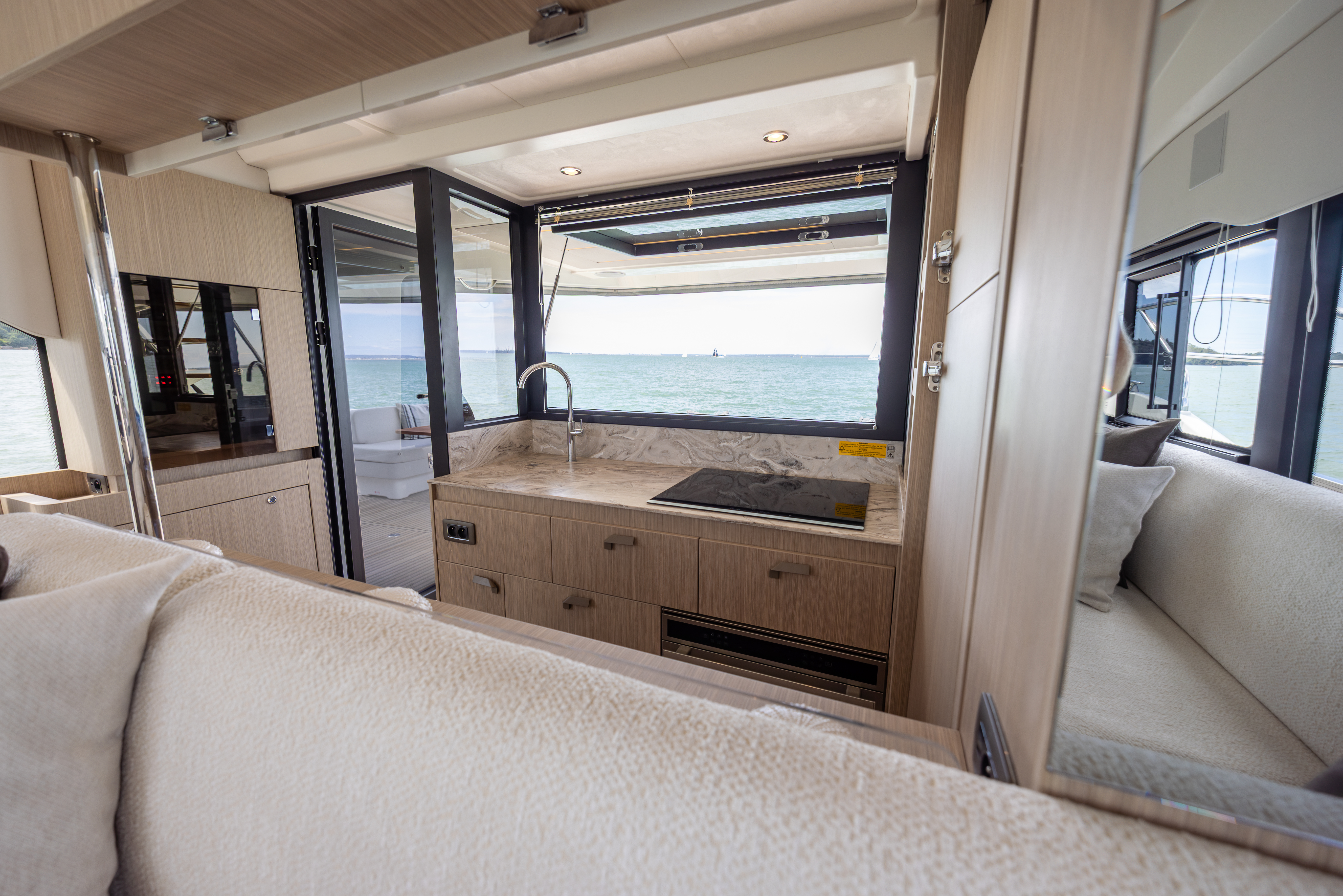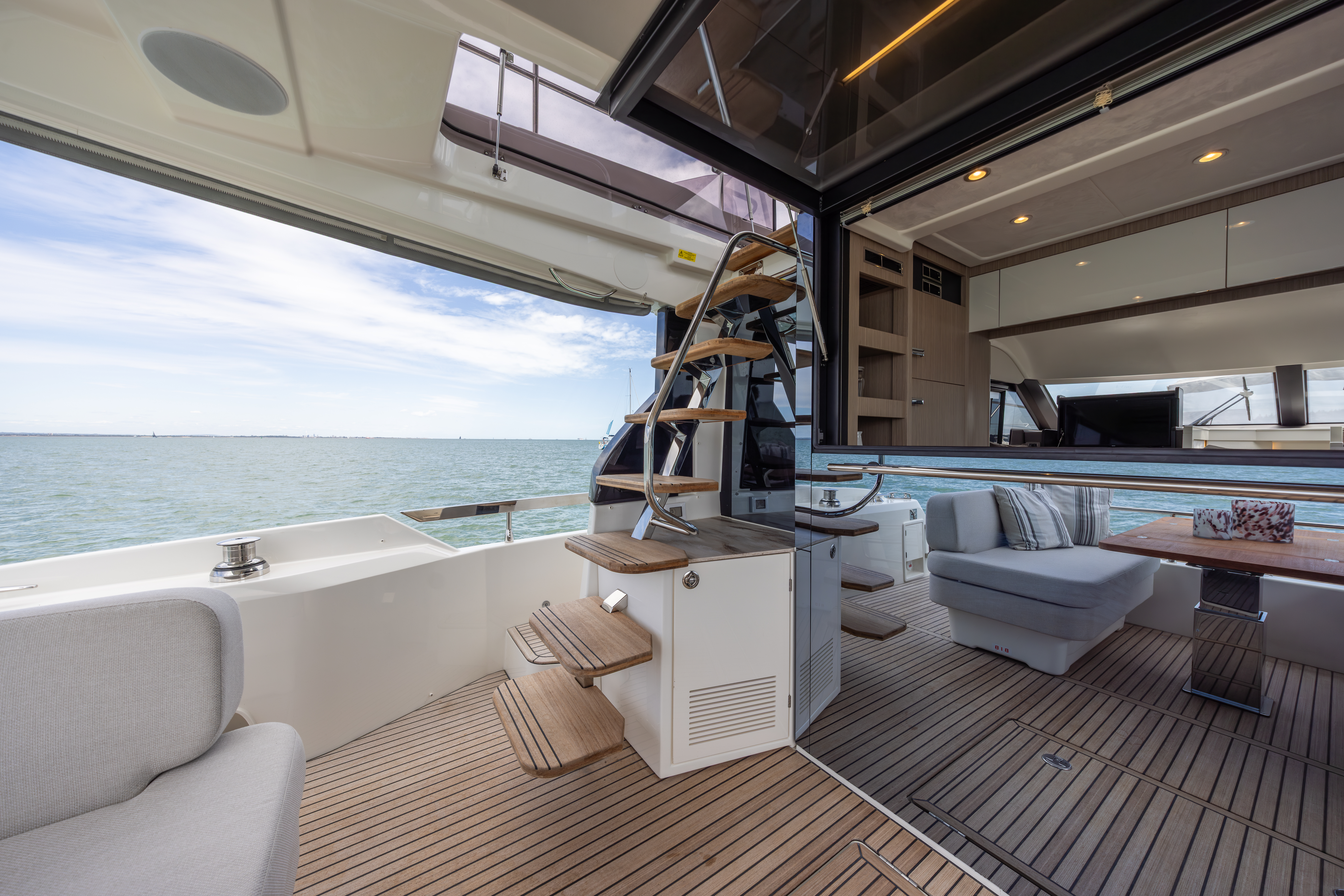 Aft sliding glass door opening to the aft cockpit
