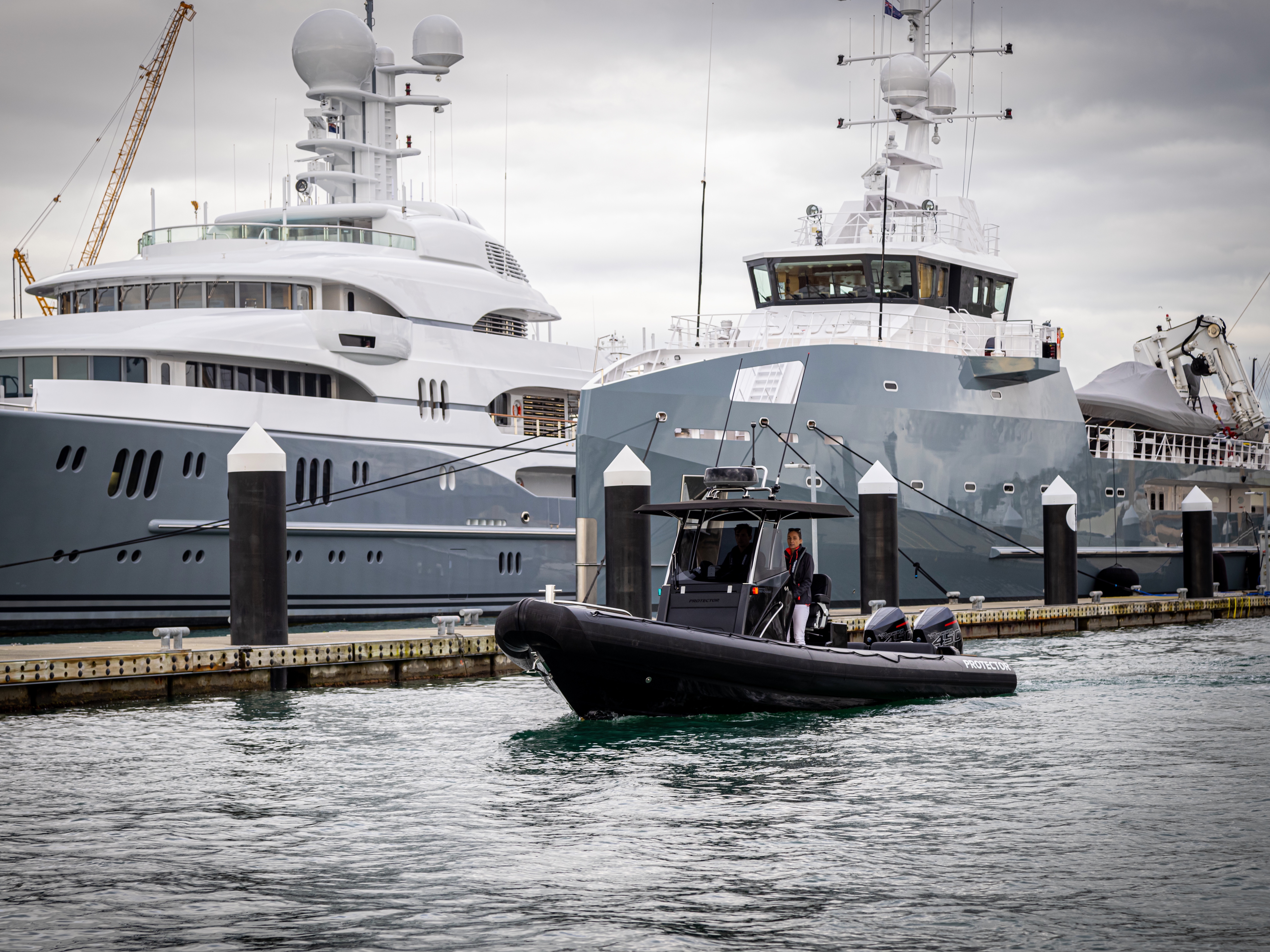The 330 Chase's extended hull and advanced Protector design means the boat rides smoothly at high speeds, even in rough seas. This makes the 330 Chase hugely popular as a support boat for events like the Sail GP and the events alike who need room for spare sails, race and support crew. The Protector 330 Chase is also the largest boat worldwide that can fit inside a 40 ft container, making it easy to transport around the world wherever you need it.