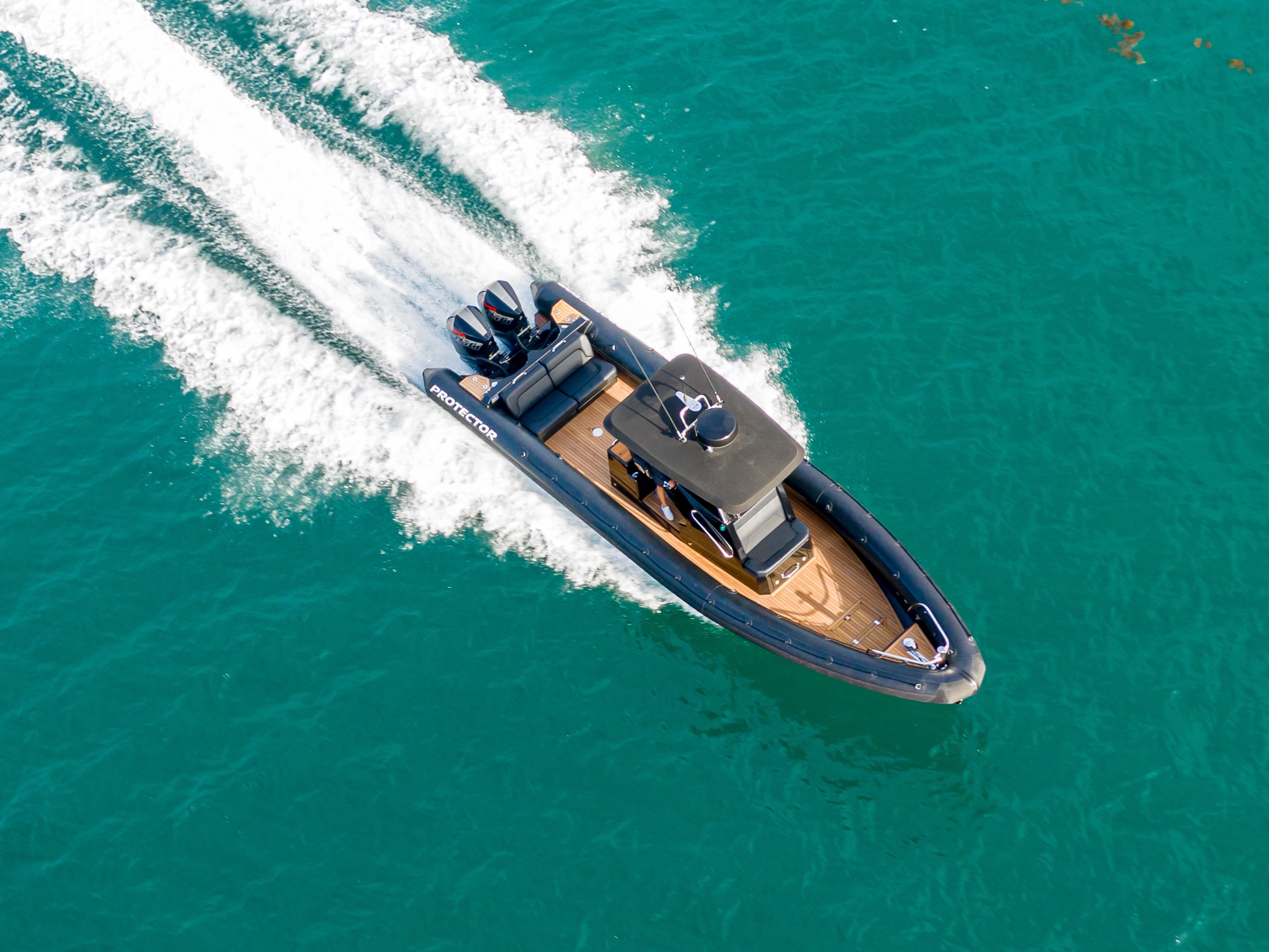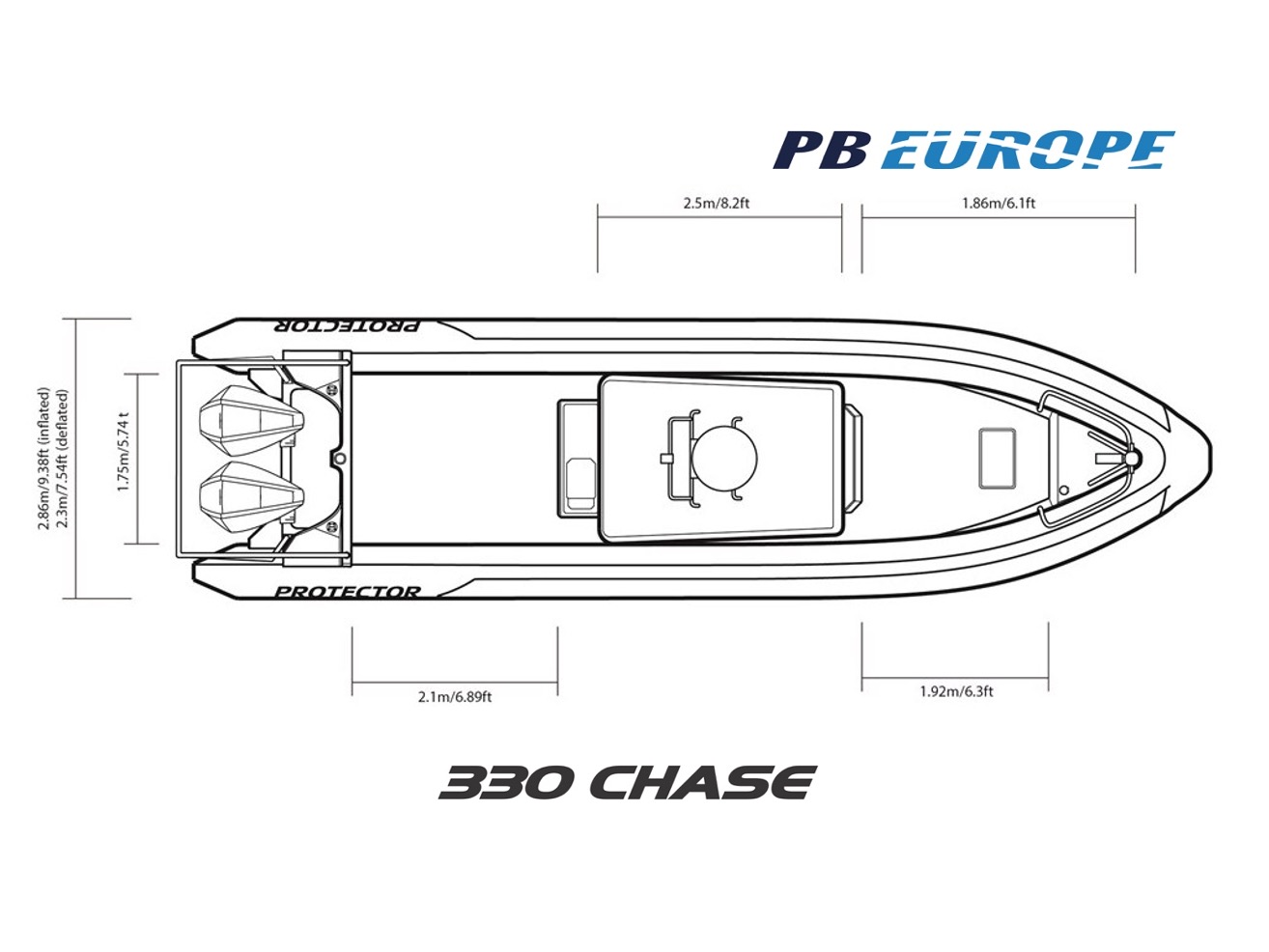 PB Europe has fitted out this boat for multi-purpose roles; amenities to keep you on the water or beach all day but with removable transom seating the huge aft deck lends itself to carrying crew, sails and kit around the racecourse. Twin Mercury Verado 250HP V8 outboards power the Protector 330 Chase safely and comfortably to where you want to be.