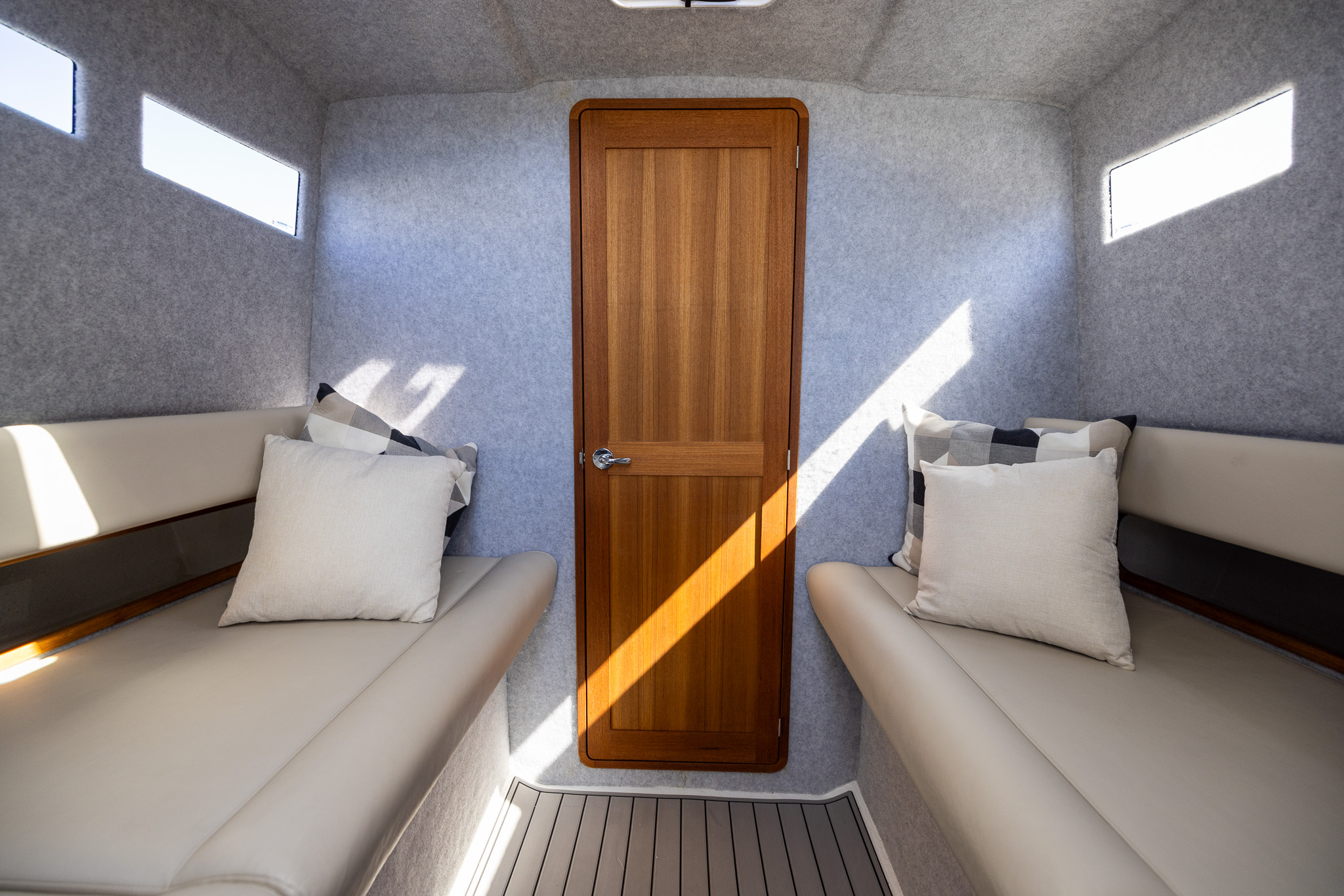 Port and starboard port holes providing ample natural light to cabin.