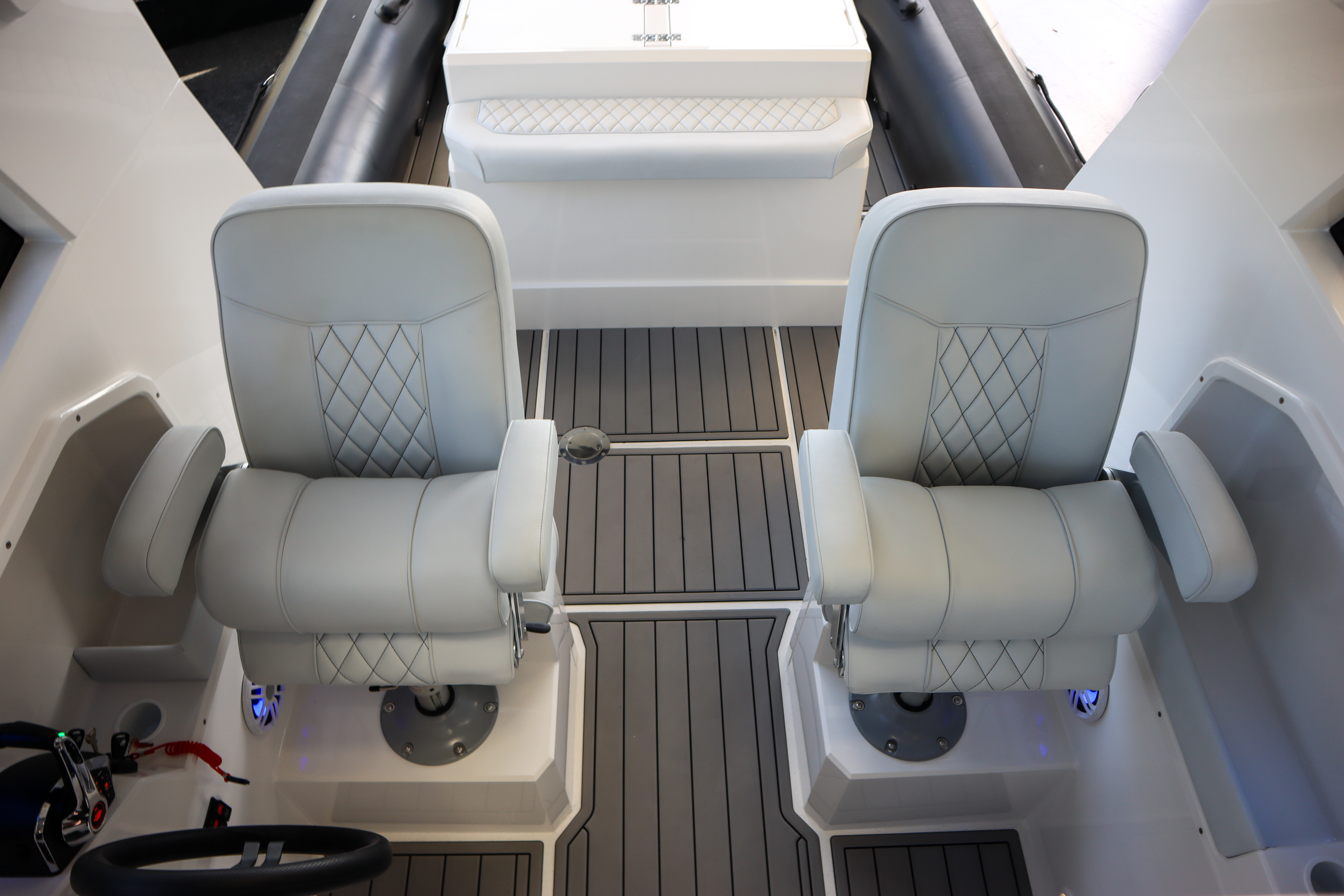 Experience the ultimate performance package with this Brand New Protector 330 Targa R edition, this high performance RIB is powered by Twin Mercury Verado 400R V10 Outboard engines. The Protectors advanced hull is designed for top tier performance and proven extremely capable in any conditions. This 10m power horse is second to none, set up for reaching top speeds of 63kts at WOT, delivering impressive performance and handling.